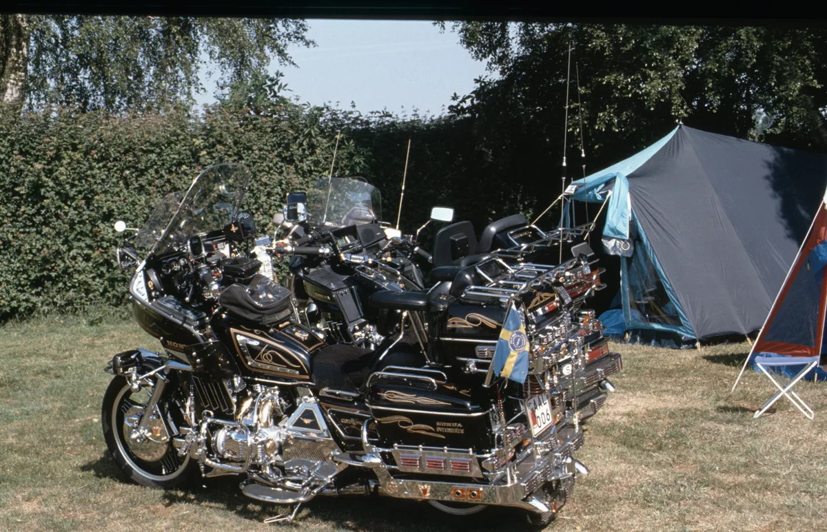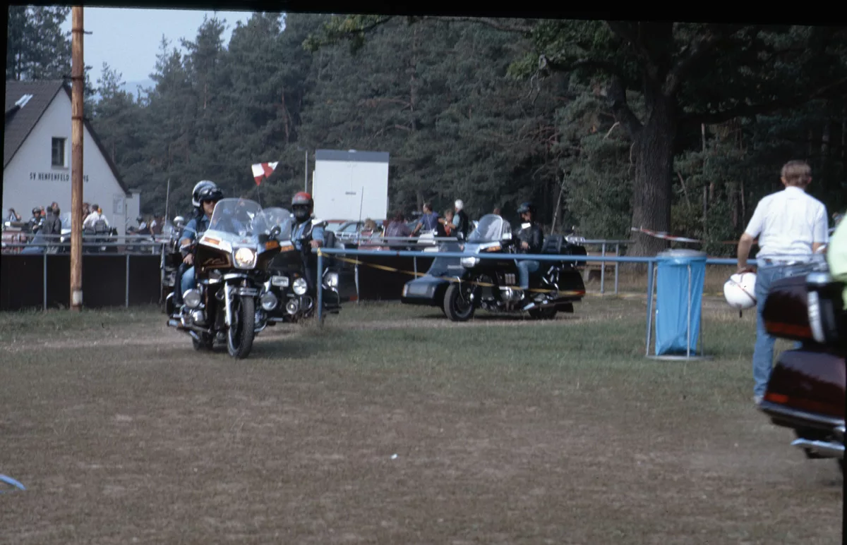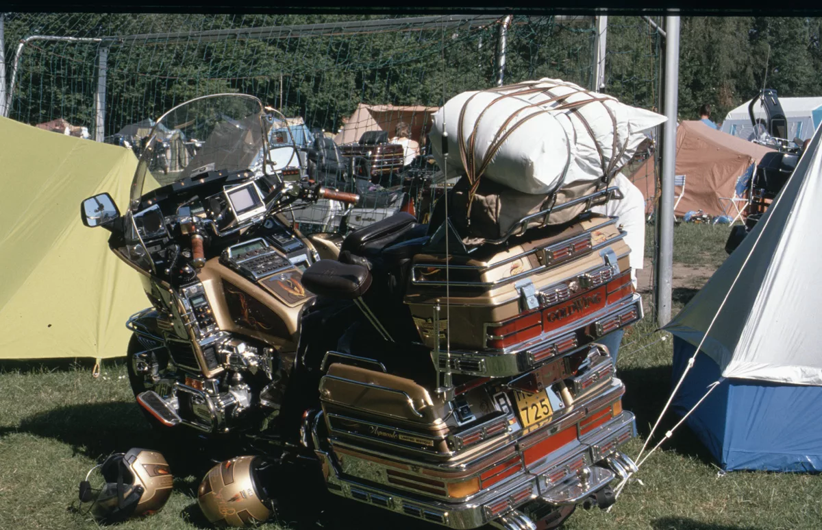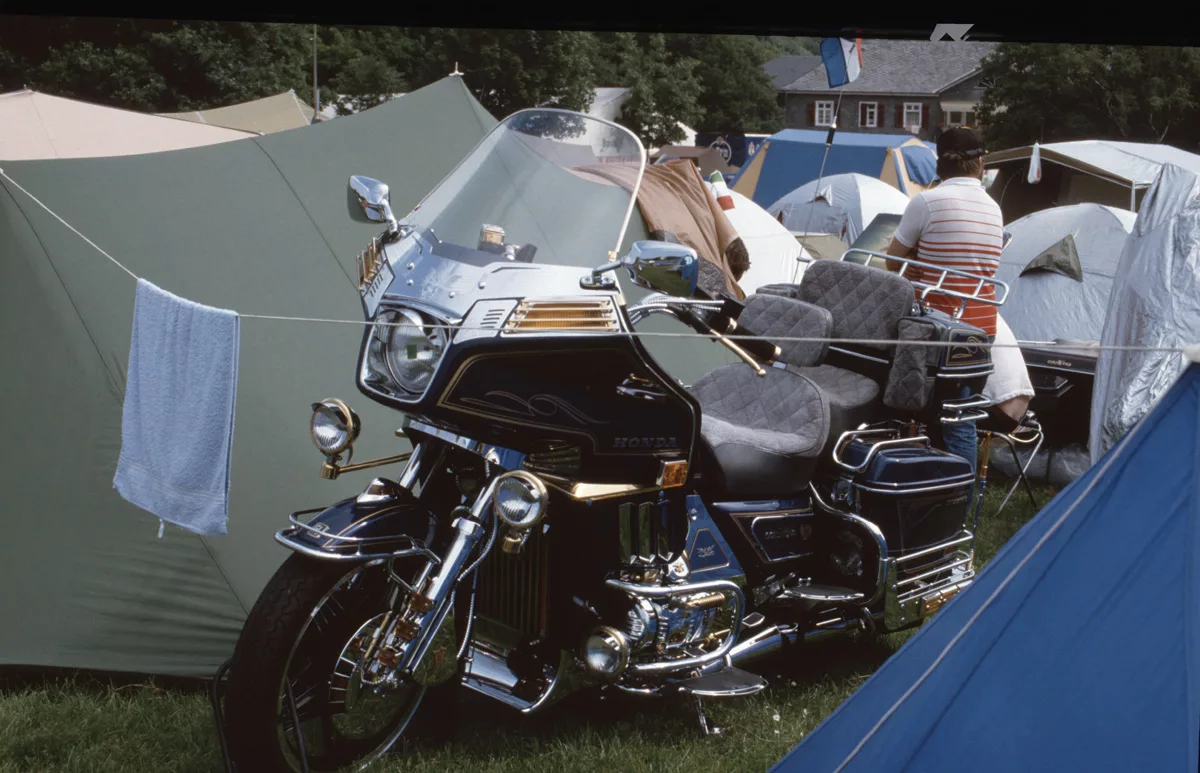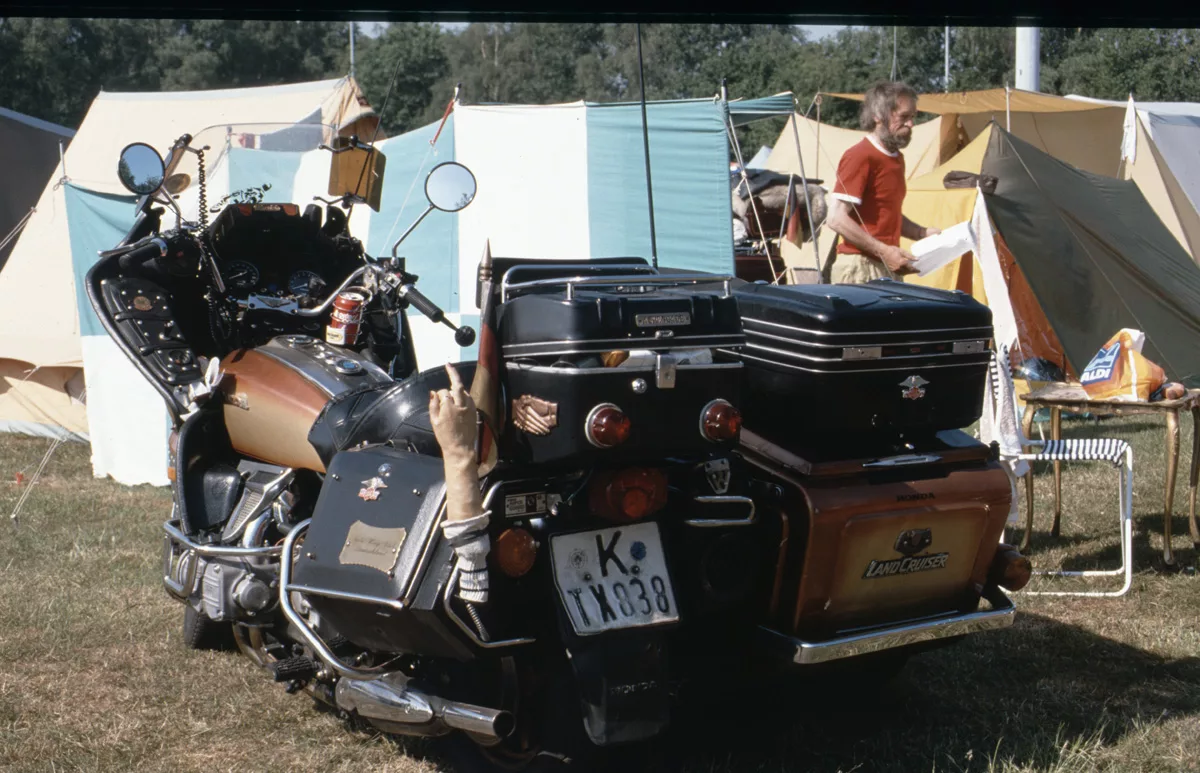1978 entdeckten wir eine Anzeige im Syburger und in einer Motorradzeitung über ein Goldwing-Treffen, organisiert vom Freundeskreis der Goldwingfahrer. Unsere Neugier war geweckt – also packten wir unser Zelt aufs Motorrad und fuhren nach Heringen zum Café Mondschein zu unserem ersten Goldwing-Treffen. Dort trafen wir auf rund 100 weitere Goldwing-Fahrer und es entstanden die ersten Freundschaften.