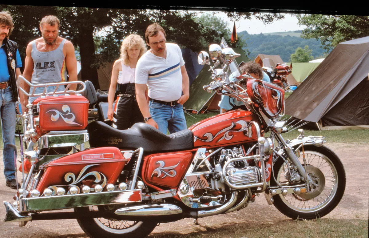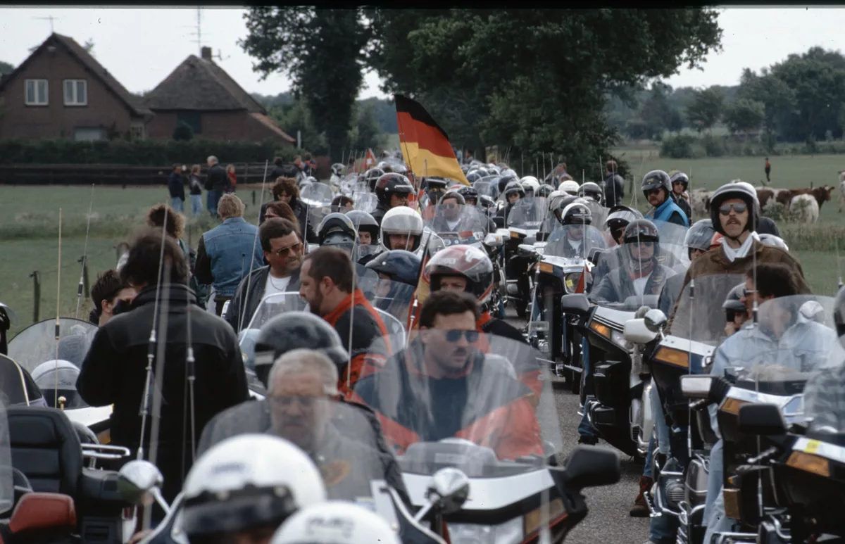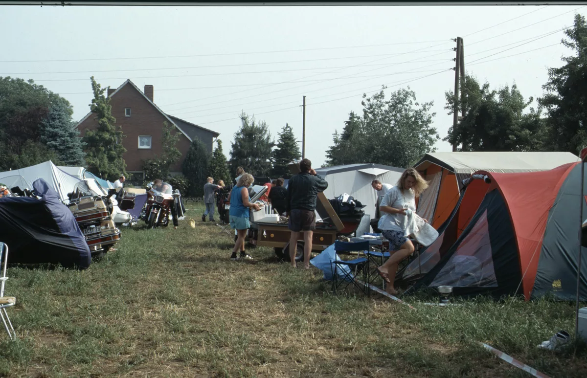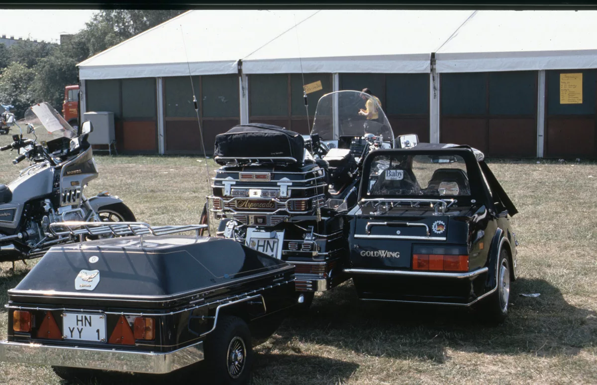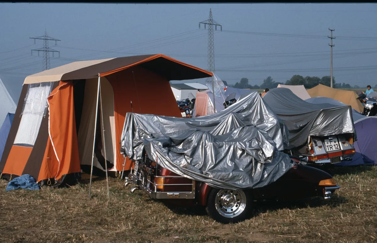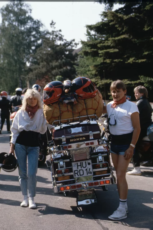 1978 entdeckten wir eine Anzeige im Syburger und in einer Motorradzeitung über ein Goldwing-Treffen, organisiert vom Freundeskreis der Goldwingfahrer. Unsere Neugier war geweckt – also packten wir unser Zelt aufs Motorrad und fuhren nach Heringen zum Café Mondschein zu unserem ersten Goldwing-Treffen. Dort trafen wir auf rund 100 weitere Goldwing-Fahrer und es entstanden die ersten Freundschaften.