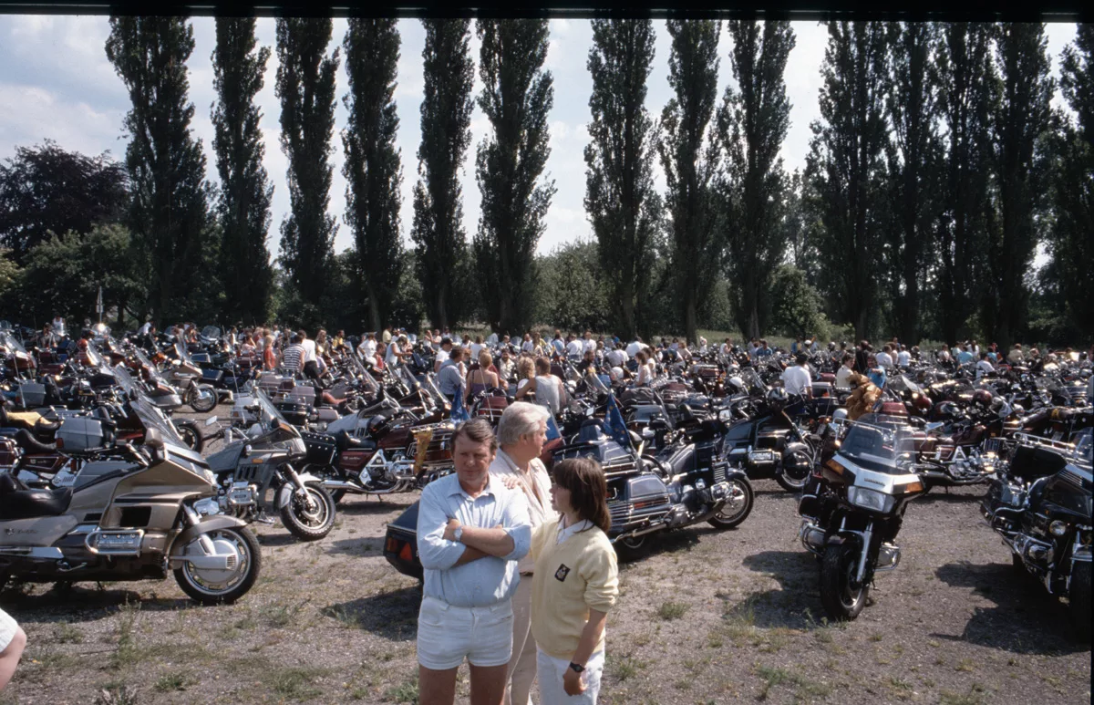Bis 1978 nahmen wir unter dem Namen „Freundeskreis der Goldwingfahrer“ an Treffen im In- und Ausland teil. Doch während internationale Clubs gerne auch nach Deutschland kommen wollten, lehnte unser damaliger Präsident strikt ab, ein internationales Treffen zu organisieren. Wir trafen uns daraufhin in Solingen mit ihm und machten ihm klar, dass ein solches Treffen in Deutschland stattfinden müsse. Schließlich gab er nach und erlaubte uns, unter dem Namen Freundeskreis der Goldwingfahrer ein internationales Treffen zu veranstalten.