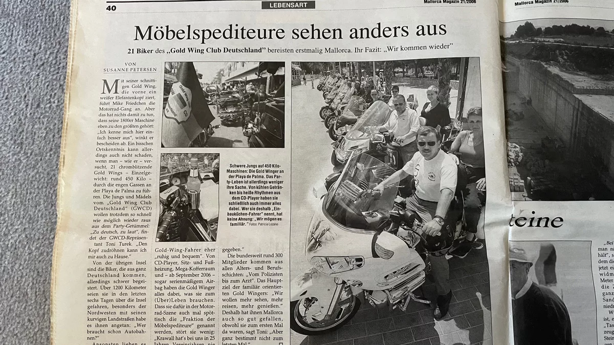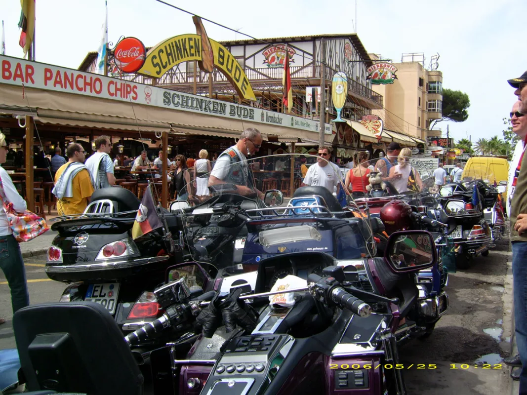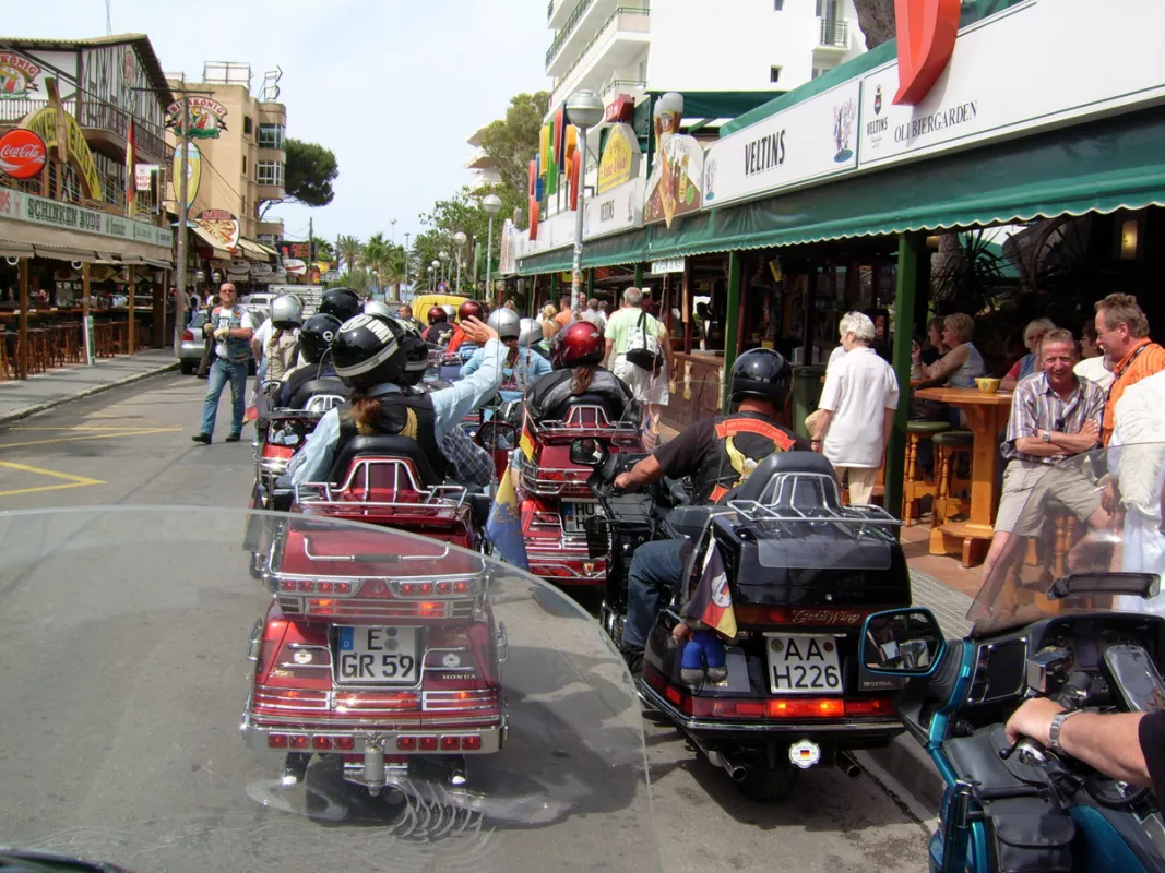 Kurz darauf meldeten sich 38 Teilnehmer mit 21 GoldWings für die Tour an. Die Anreise erfolgte mit dem Auto-Reisezug von Düsseldorf und Neu-Isenburg nach Narbonne. Von dort ging es weiter auf eigener Achse nach Barcelona, bevor die Gruppe mit der Nachtfähre nach Mallorca übersetzte.