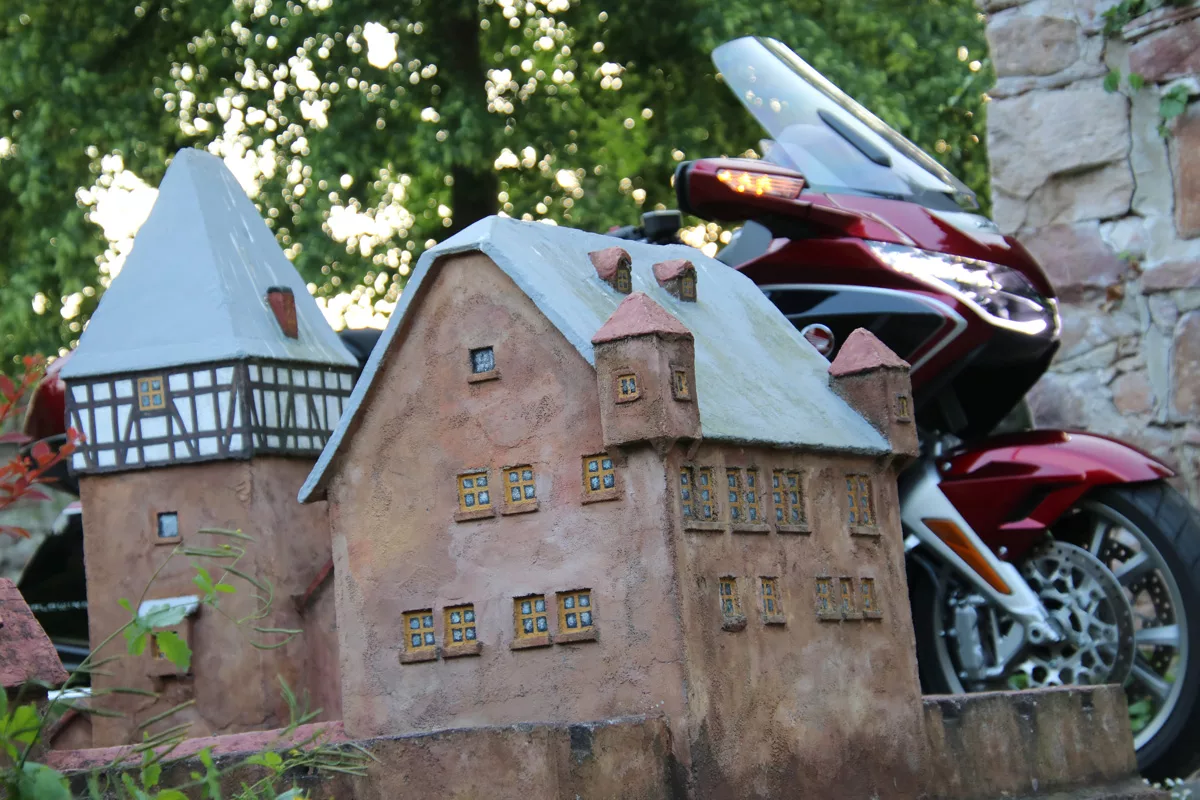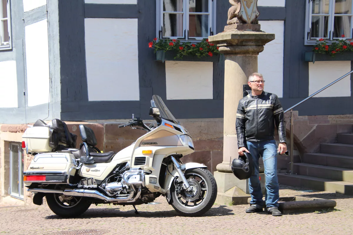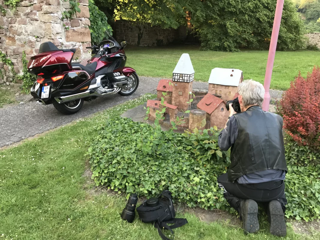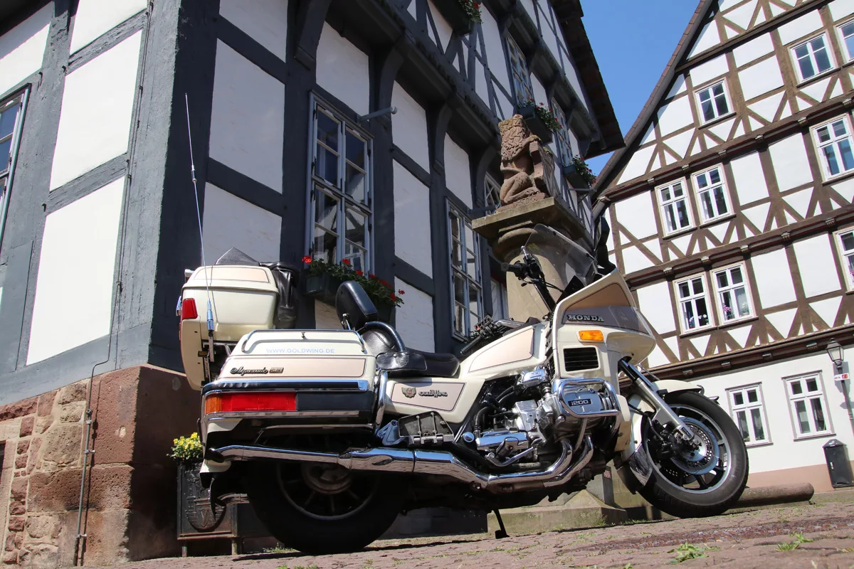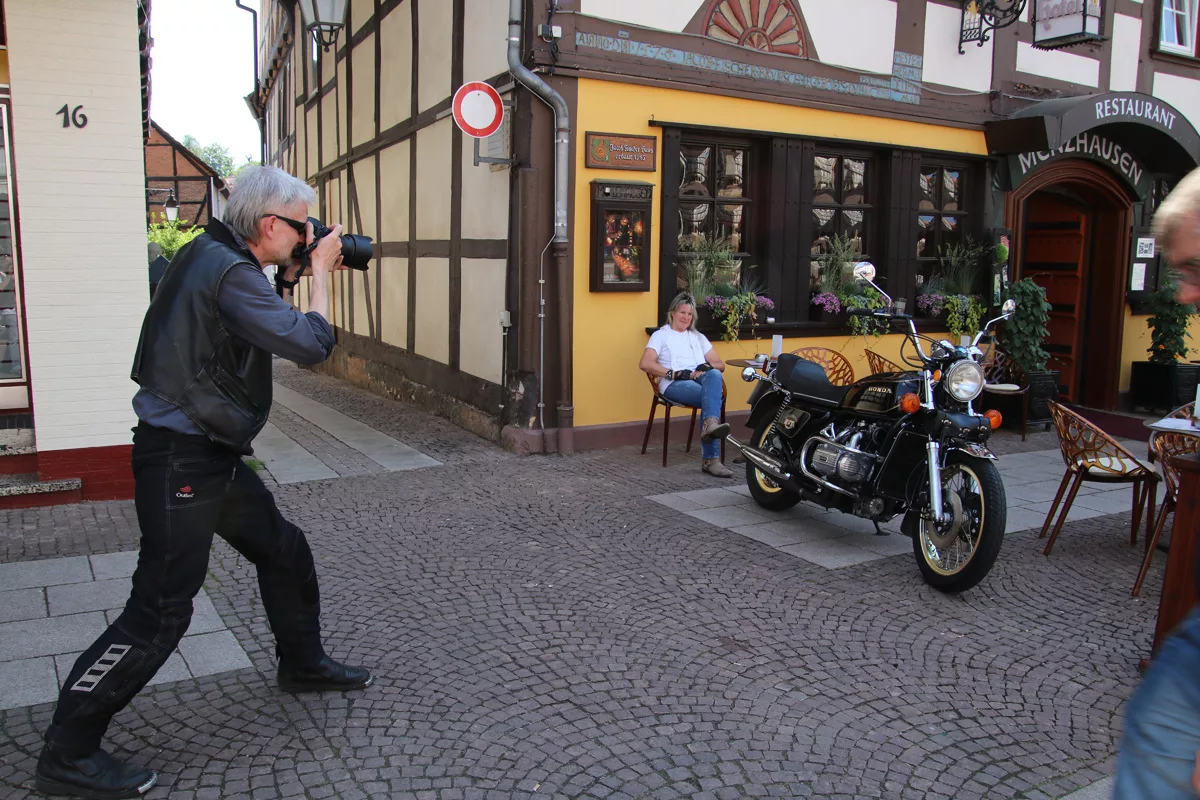 Am Samstagmorgen folgten Einzelfotos an der Köhlerhütte und in der Altstadt von Uslar, bevor die letzten Bilder auf dem Gelände des Gold Wing Haus Fuchs entstanden. Das finale Foto fiel um 21:30 Uhr, dann ging es auf die Heimreise – meine Ankunftszeit bleibt geheim. 😉