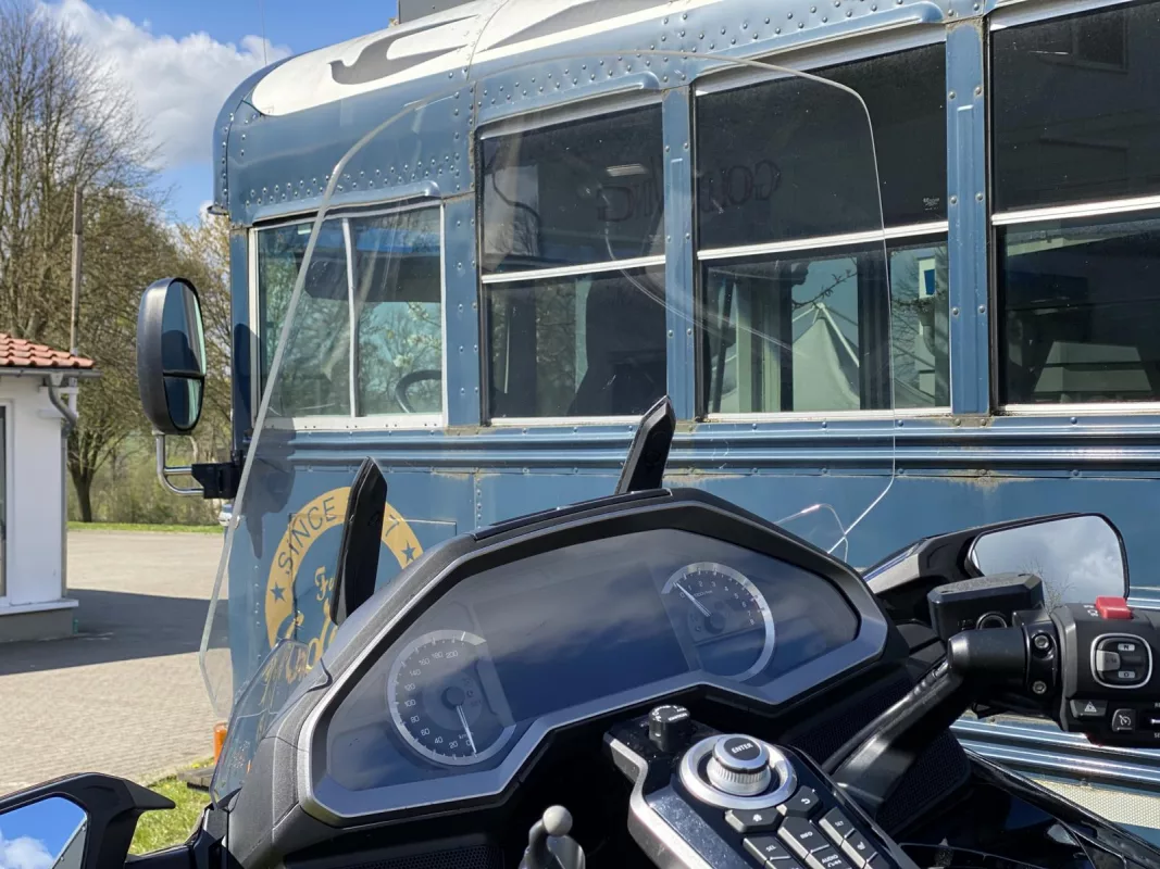 Ihr reist mit Eurem jetzigen Motorrad oder mit dem Auto an, checkt in einem der fünf Zimmer unseres hauseigenen Motels ein (wir legen auch gern den Schlüssel für eine Anreise nach Ladenschluss für Euch bereit), geht am nächsten Morgen beim 200 Meter entfernten Bäcker frühstücken, dann übergeben wir euch Eure gewünschte Goldwing und Ihr habt den halben Tag Zeit das Fahrerlebnis rund um den größten Luxustourer der Welt zu genießen und wenn Ihr wieder kommt lasst Ihr das erlebte bei einer Currywurst oder Double Fox Burger im legendären Eddy's Biker Grill auf unserem Hof sacken.