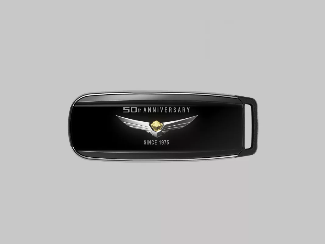 50th Anniversary Embleme am Smartkey und Cockpit-Display.