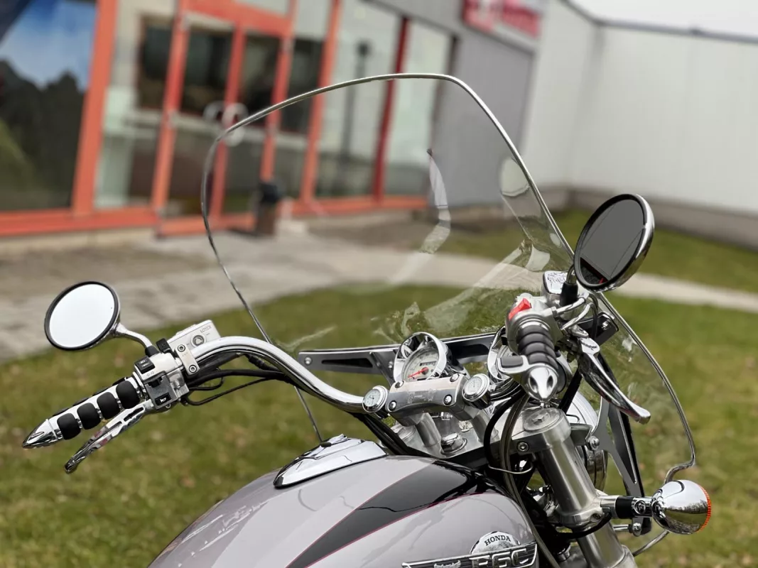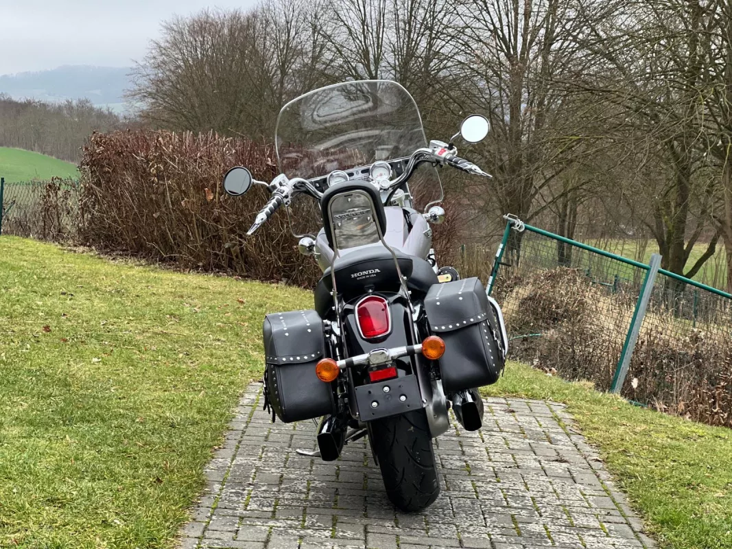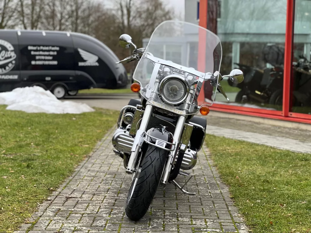 Ausgestattet mit originaler Scheibe, originalen Ledertaschen, Sturzbügeln, Sissybar und vielem mehr.