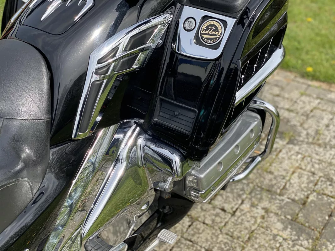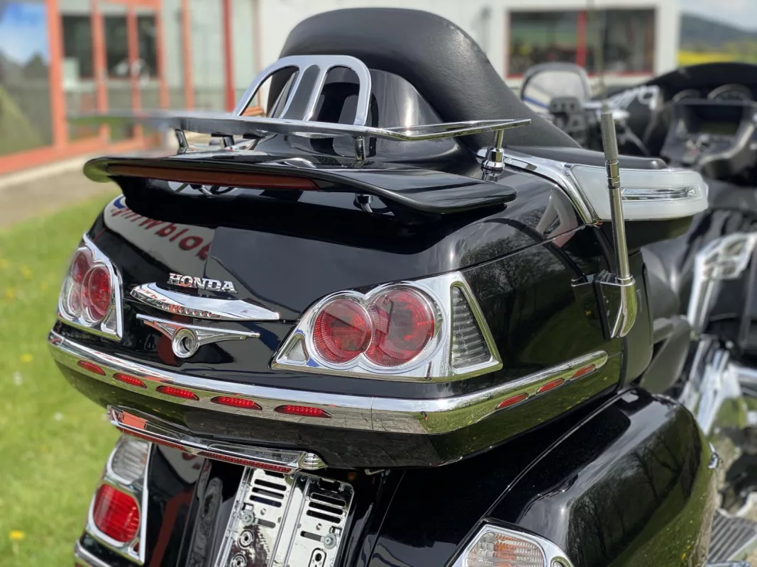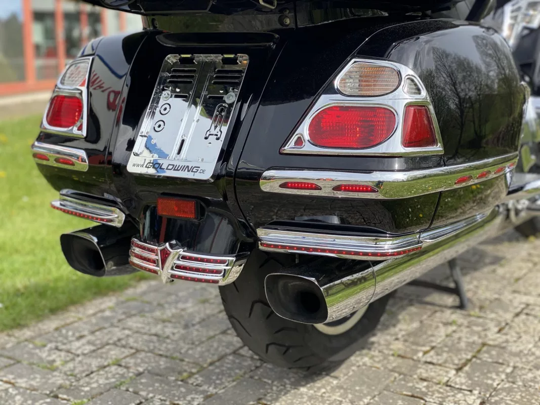 GL1800 in "Gloss Black" als Küryakyn Fulldresser in NH1Z black. Mit Rings of Fire, Unterzüge und Bugspoiler in Fahrzeugfarbe, LED Blinker mit Tagfahrlicht und Chromrahmen, Pig Nose Covers, Shark Grills, Motor und Rahmenchrom Paket, Tank Pads, TC und Kofferchromstreifen mit Licht, TC Spoiler und Gepäckträger, Koffer Ecken, Beifahrertrittschutz and many more...