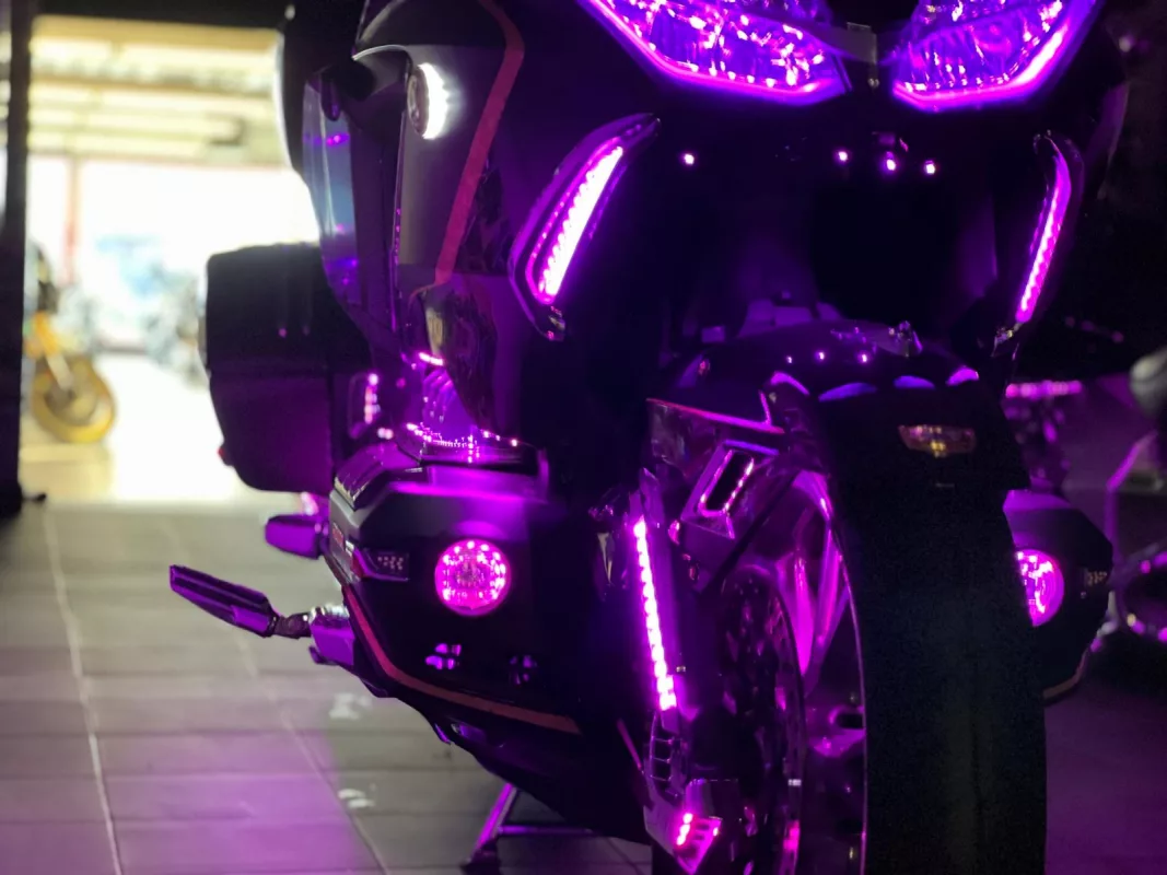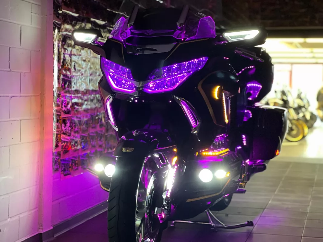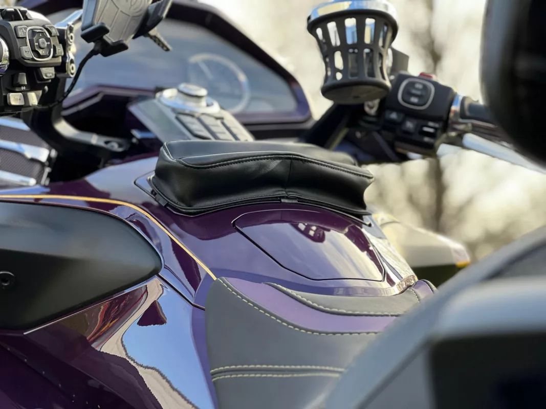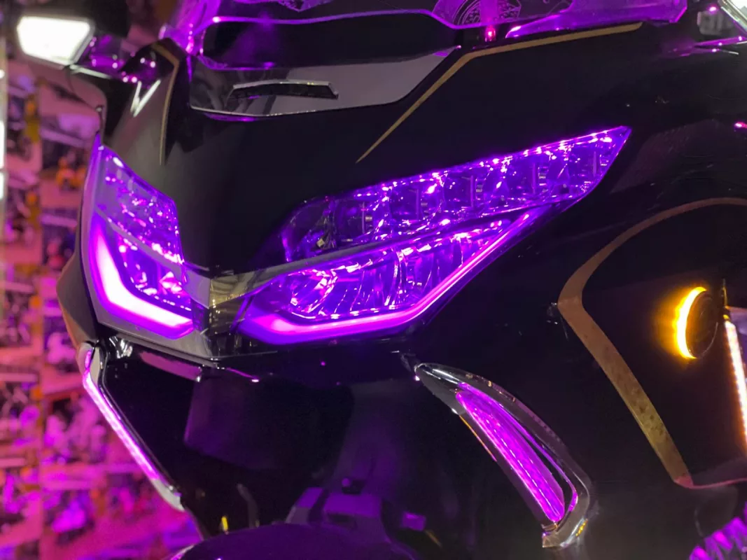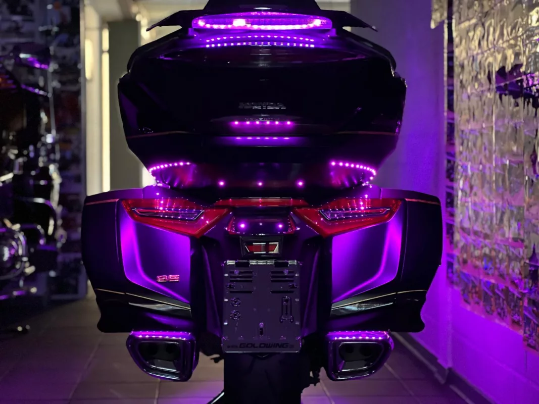 Die besondere Lackierung in Magenta (historische Farbe aus der GL1500 Baureihe), abgesetzt mit matten Feldern und Blattgoldverzierungen machen diese Wing zum absoluten Unikat.