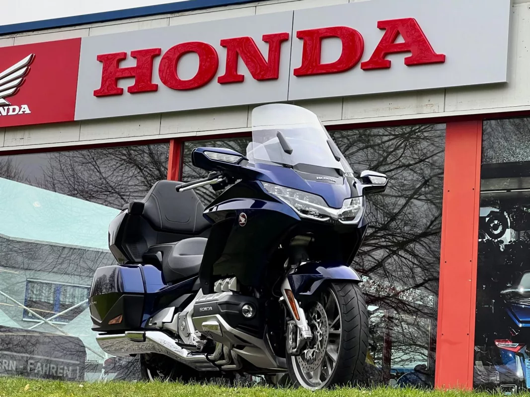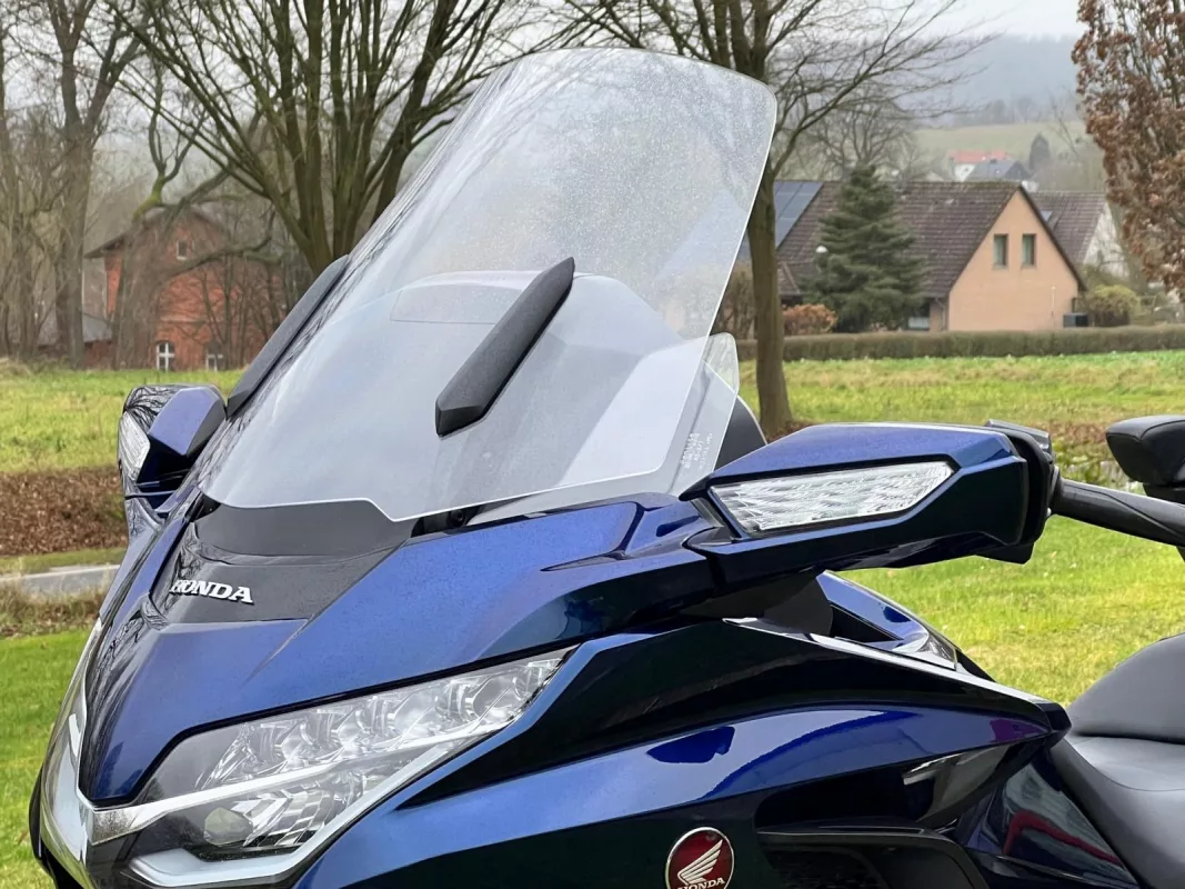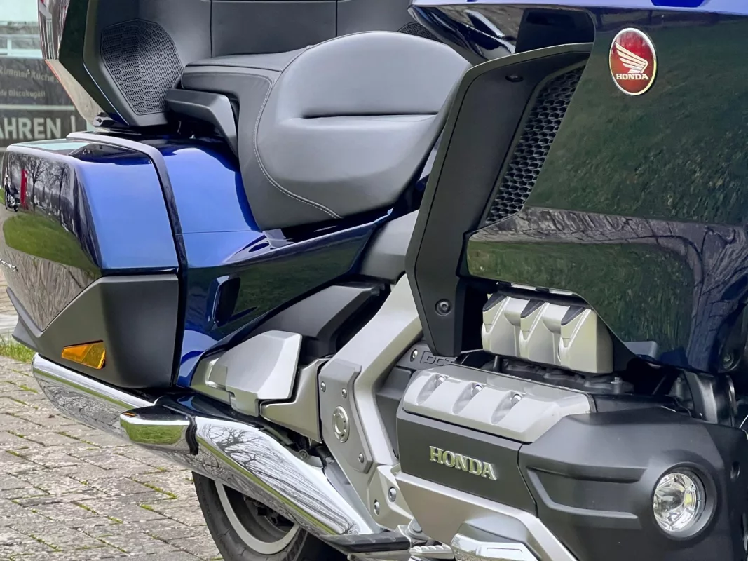 GL1800 DCT in seltenem "Pearl Hawkseye Blue Metallic"... Nebelscheinwerfer & Chromecover über den Sturzbügel... Ready für die Saison 2025 oder als ideale Basis um eine Wing nach eigenem Geschmack zu veredeln...