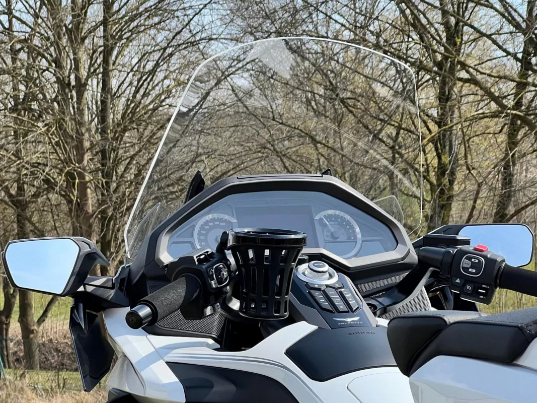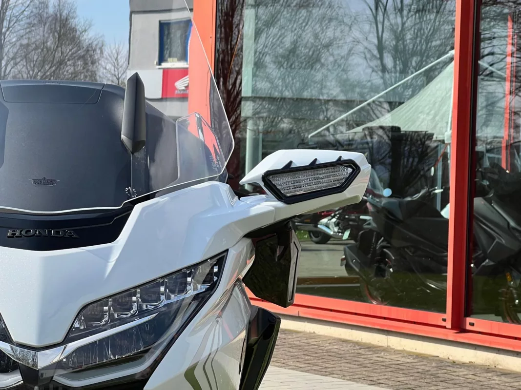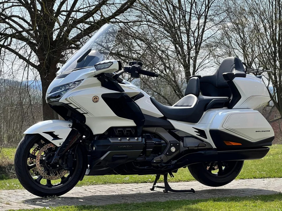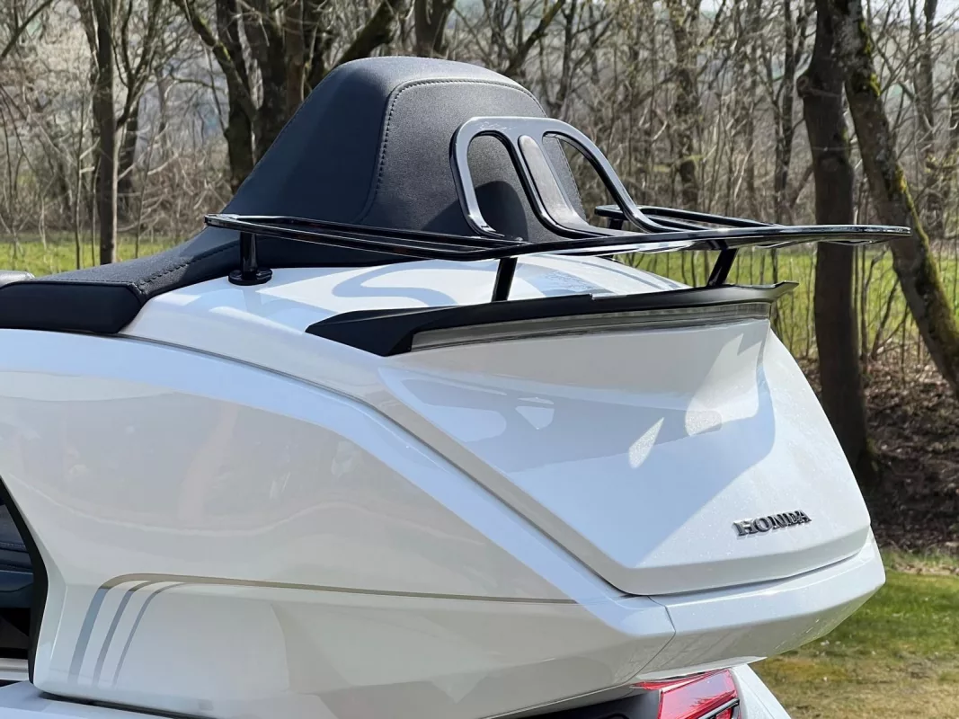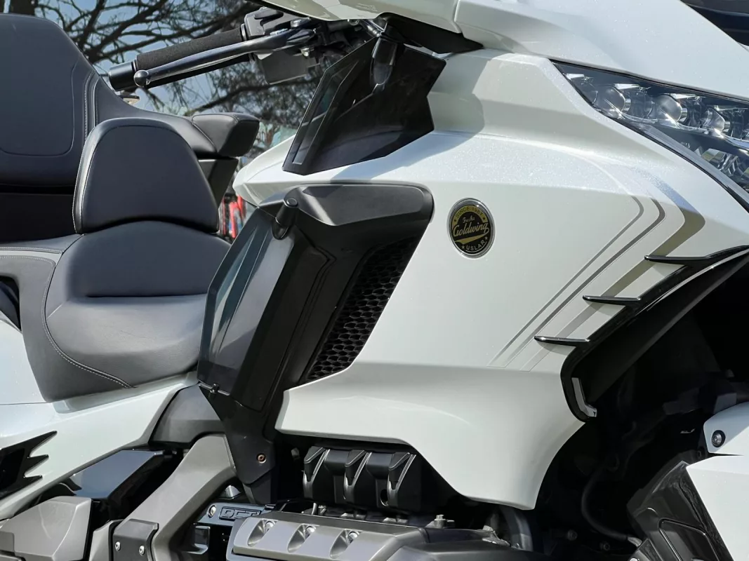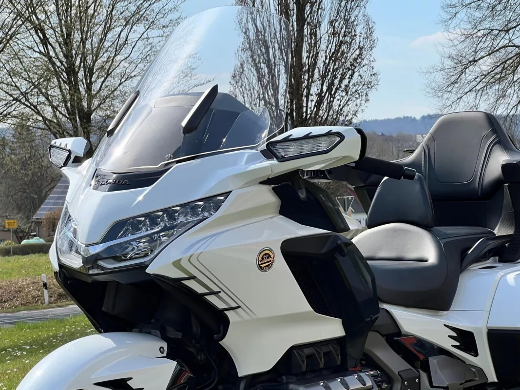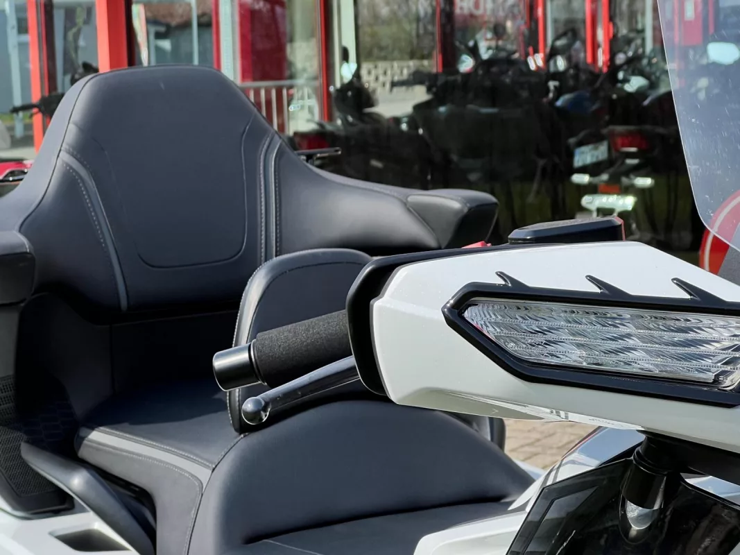 GL1800 DCT in Pearl White mit toller Ausstattung, ein super Mix aus praktischen Teilen & schicker Veredelung. Für besten Komfort sorgen die Rückenlehne in Verbindung mit Lenkerumbau.