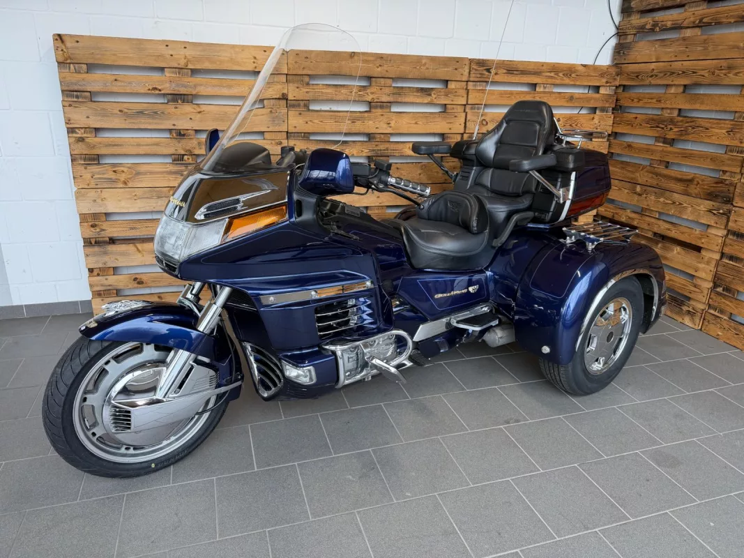 GL 1500 CSC Trike in Pearl Coronado Blue. Hammer geile Farbe und viel Zubehör. Cornering Lights, Verkleidungsseitenlichtabdeckungen, Adler auf dem Kotflügel, Iso Grips, Luftauslassgitter, Armlehnen, alle drei Gepäckträger and some more...