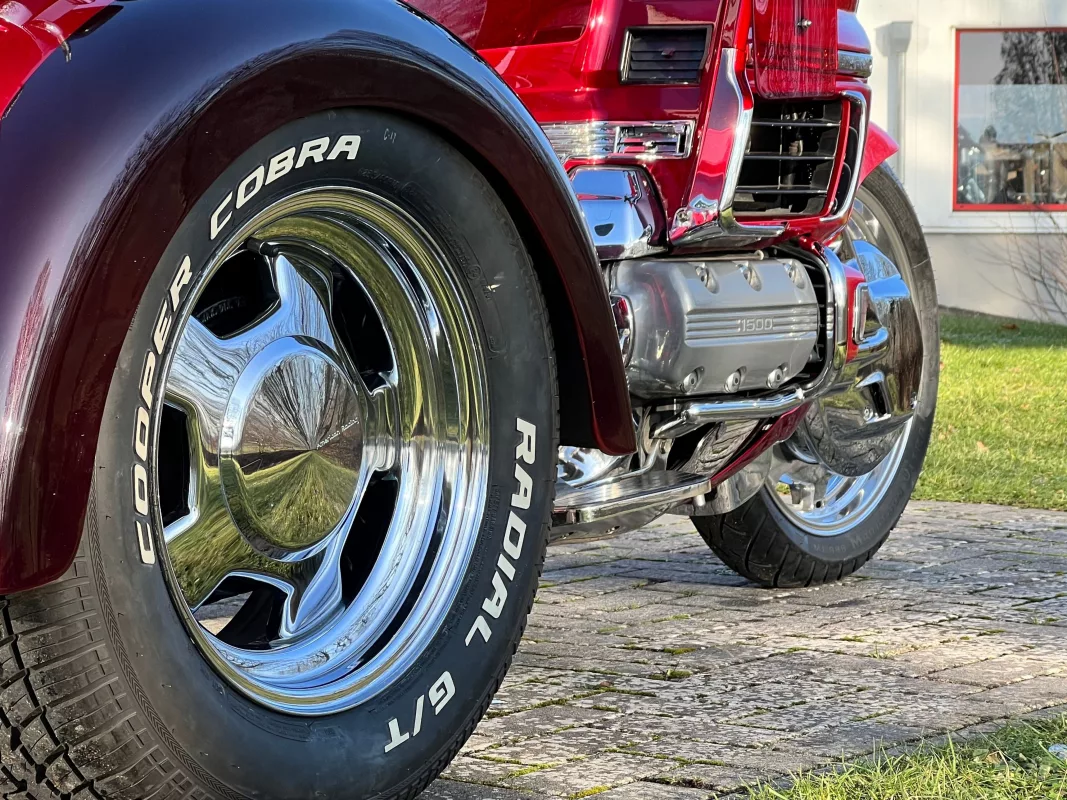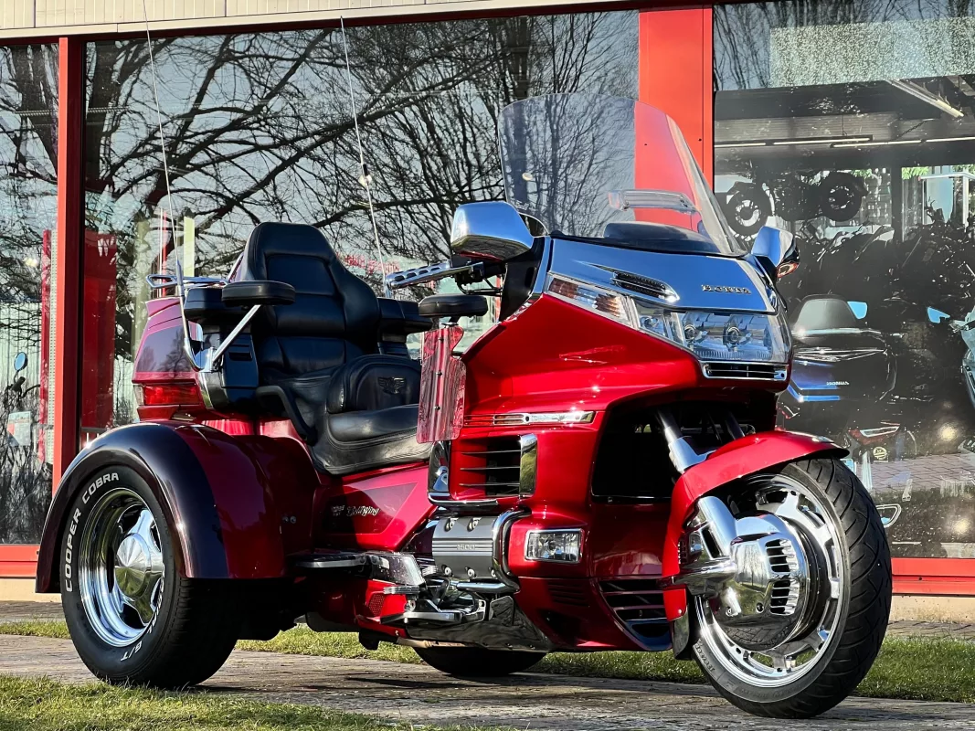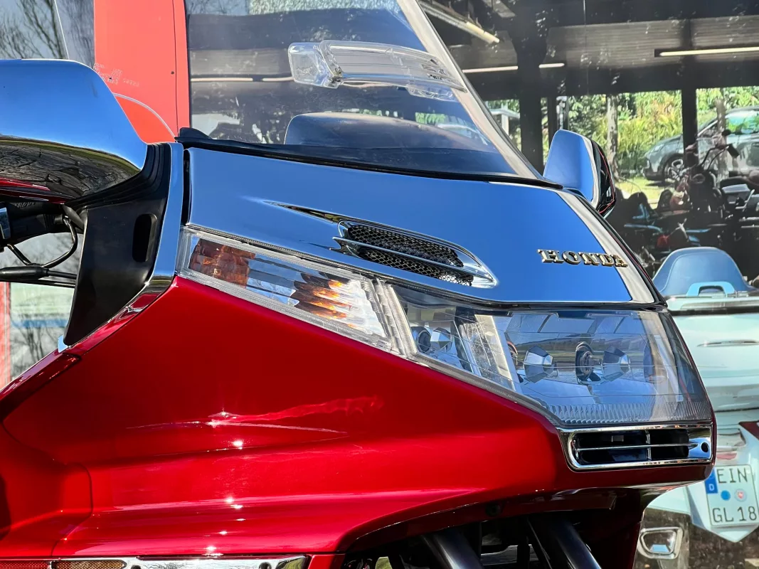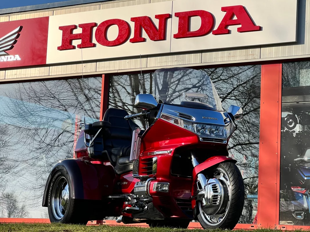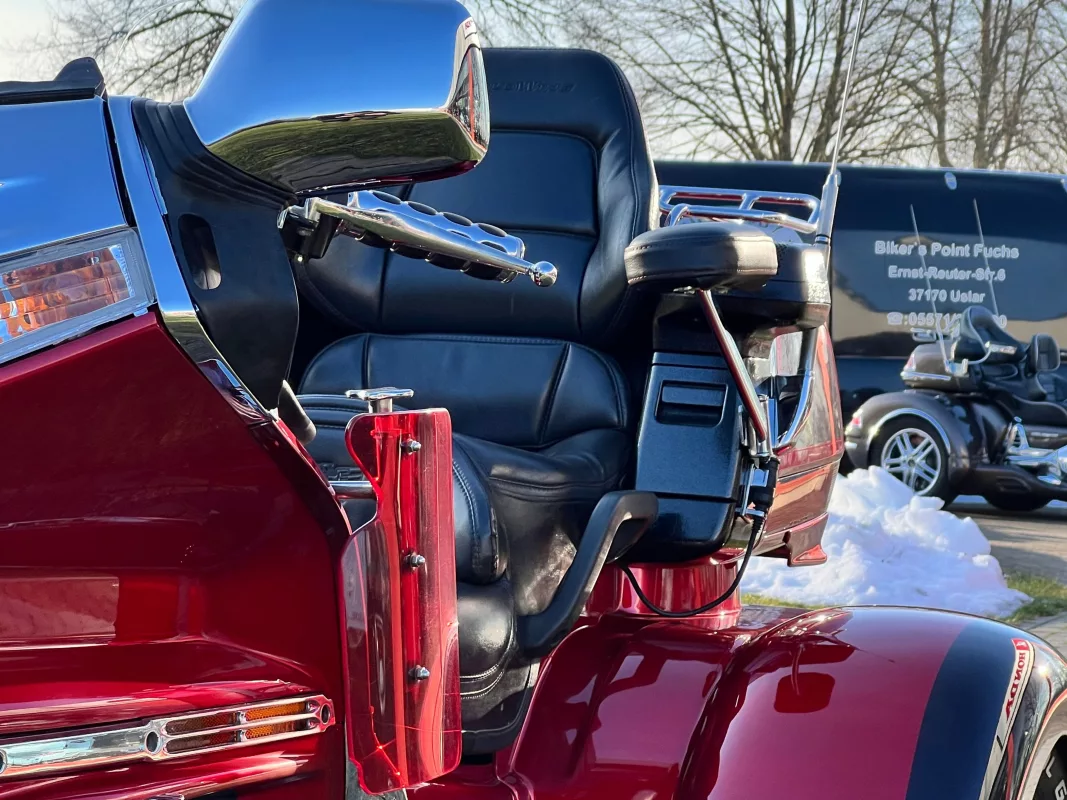 Sehr schönes GL 1500 Motor Trike in Candy Red. Tolle Farbe. Dezent Zubehör. Haupt und Kurvenscheinwerfer US Klarglas Optik, Air Wings, Kotflügelverlängerung, Luftauslassgitter mit Vent Trims, Trittbrettanlage, Chrome Wheels, beide TC Spoiler, Gepäckträger, CB Antenne, Chrompaket Innenverkleidung, Iso Grips and some more...