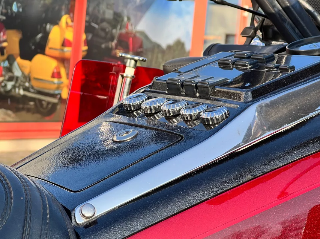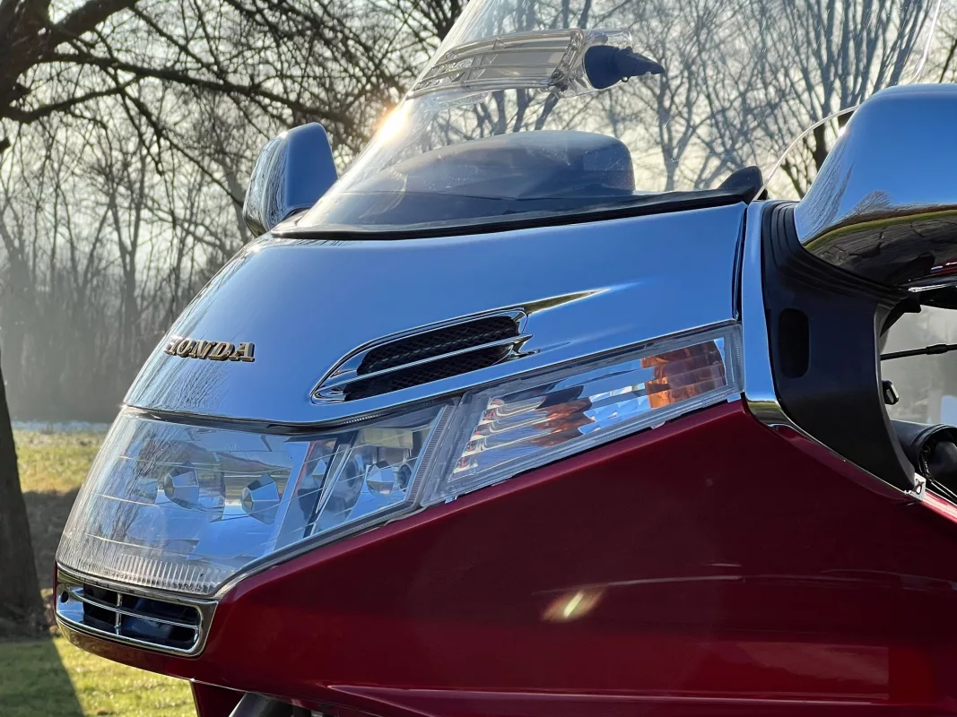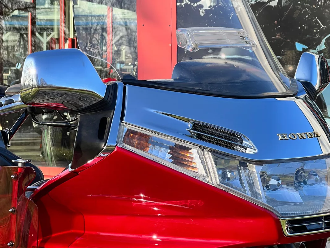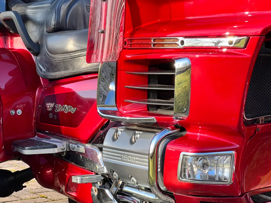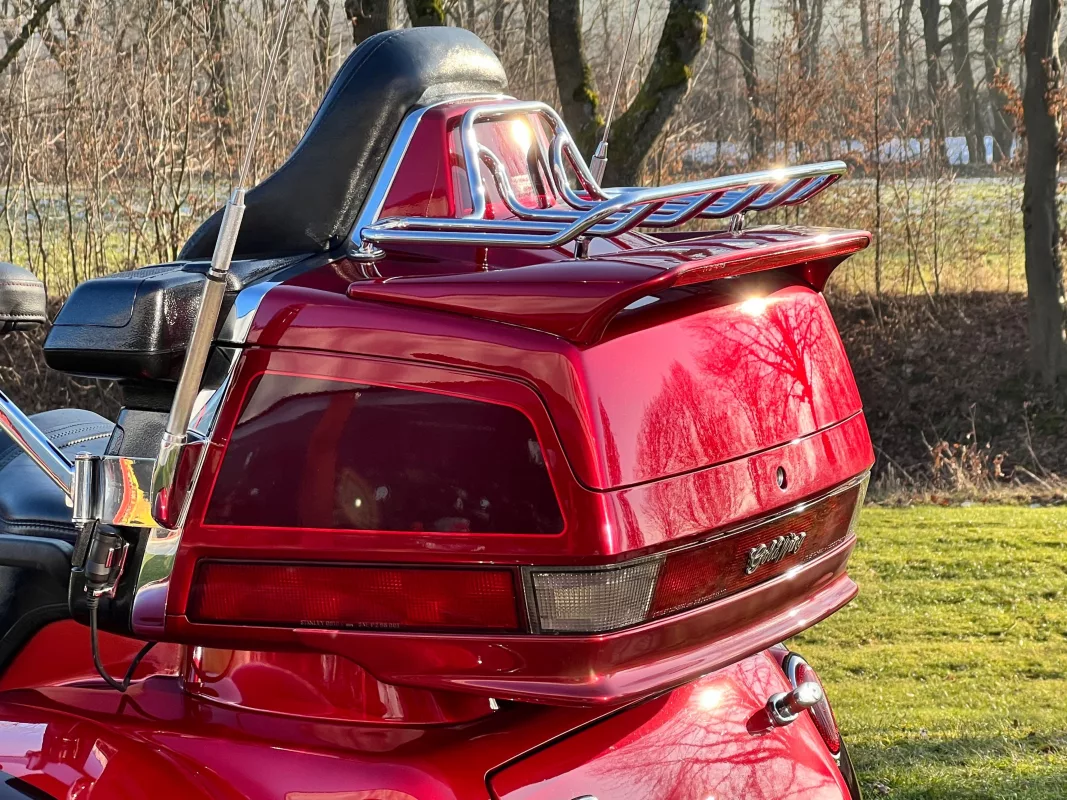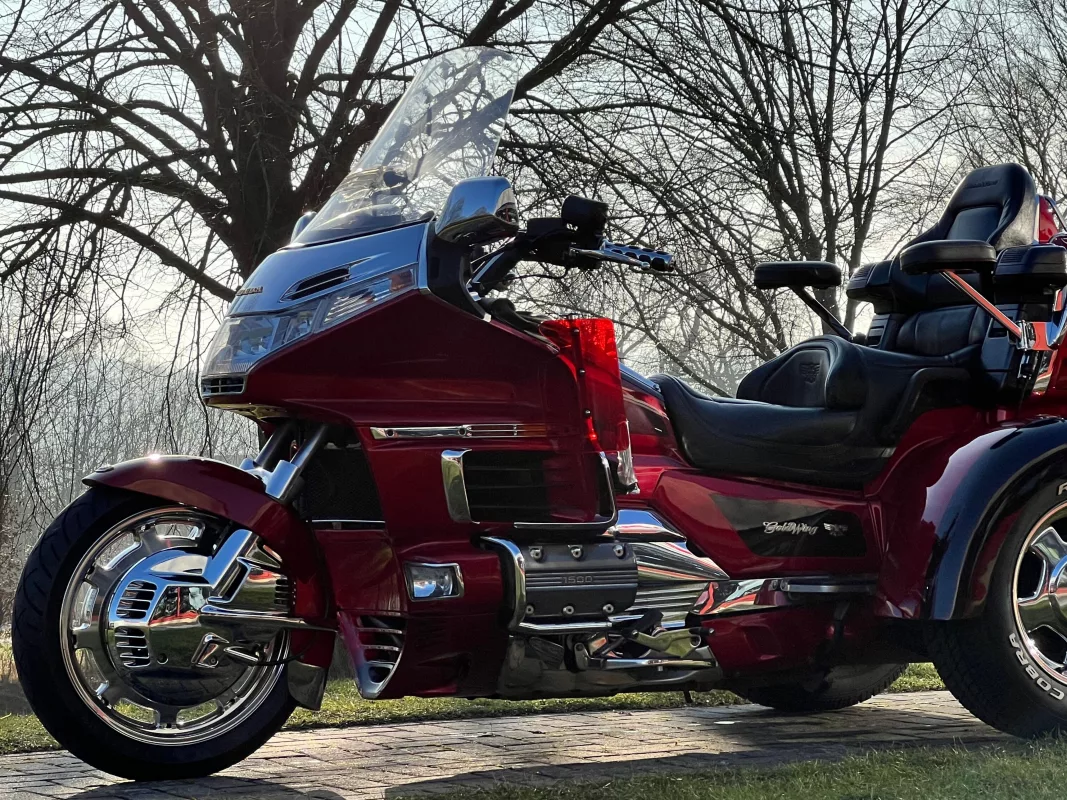 Sehr schönes GL 1500 Motor Trike in Candy Red. Tolle Farbe. Dezent Zubehör. Haupt und Kurvenscheinwerfer US Klarglas Optik, Air Wings, Kotflügelverlängerung, Luftauslassgitter mit Vent Trims, Trittbrettanlage, Chrome Wheels, beide TC Spoiler, Gepäckträger, CB Antenne, Chrompaket Innenverkleidung, Iso Grips and some more...