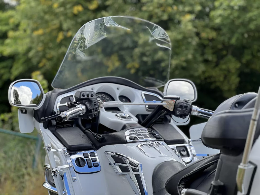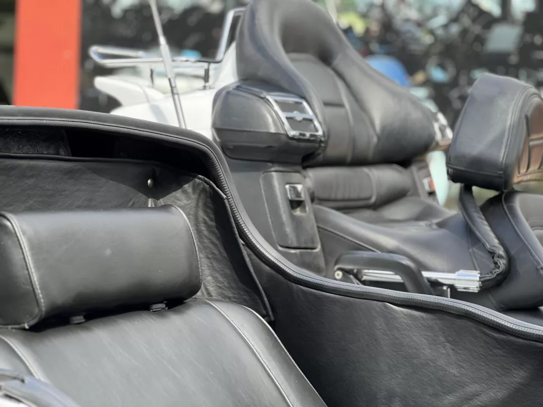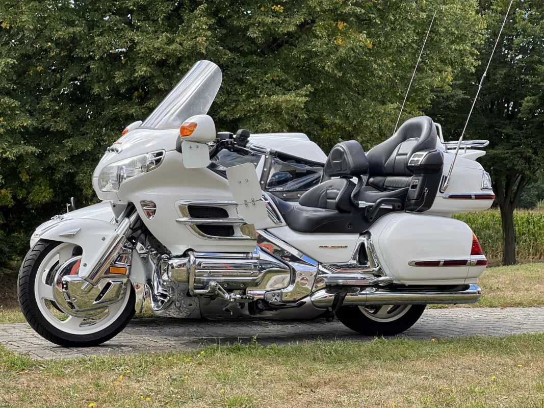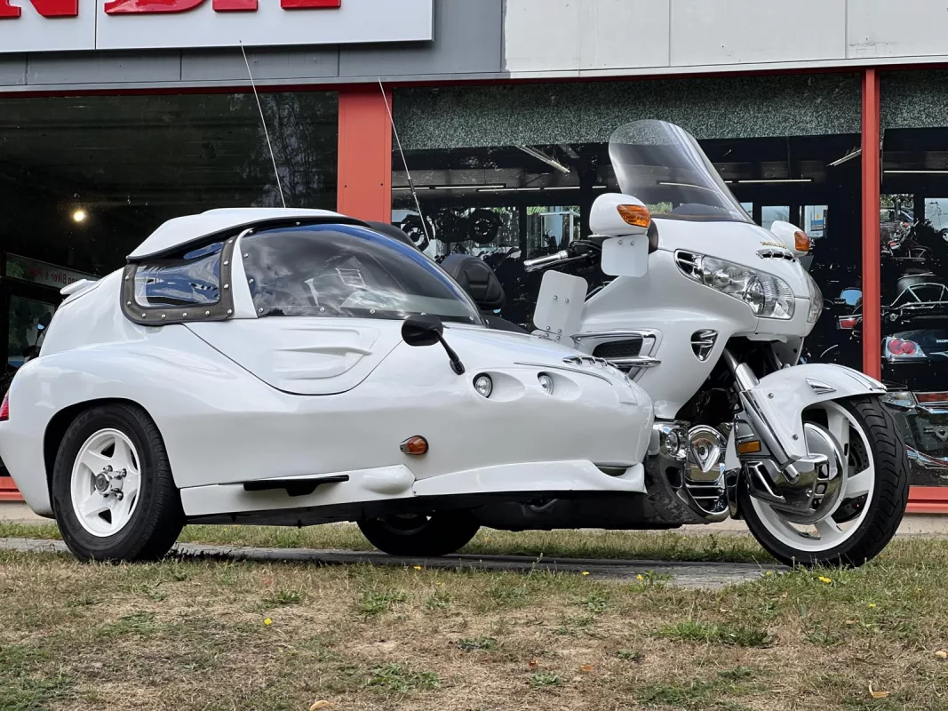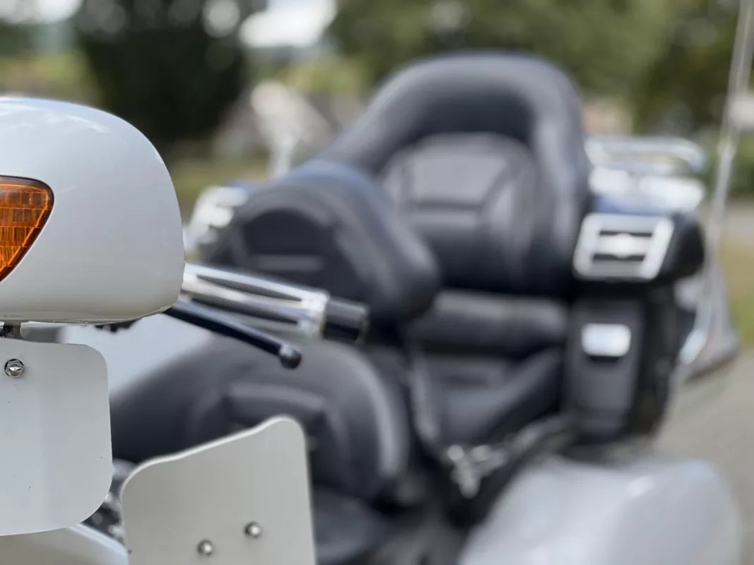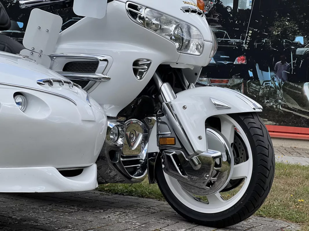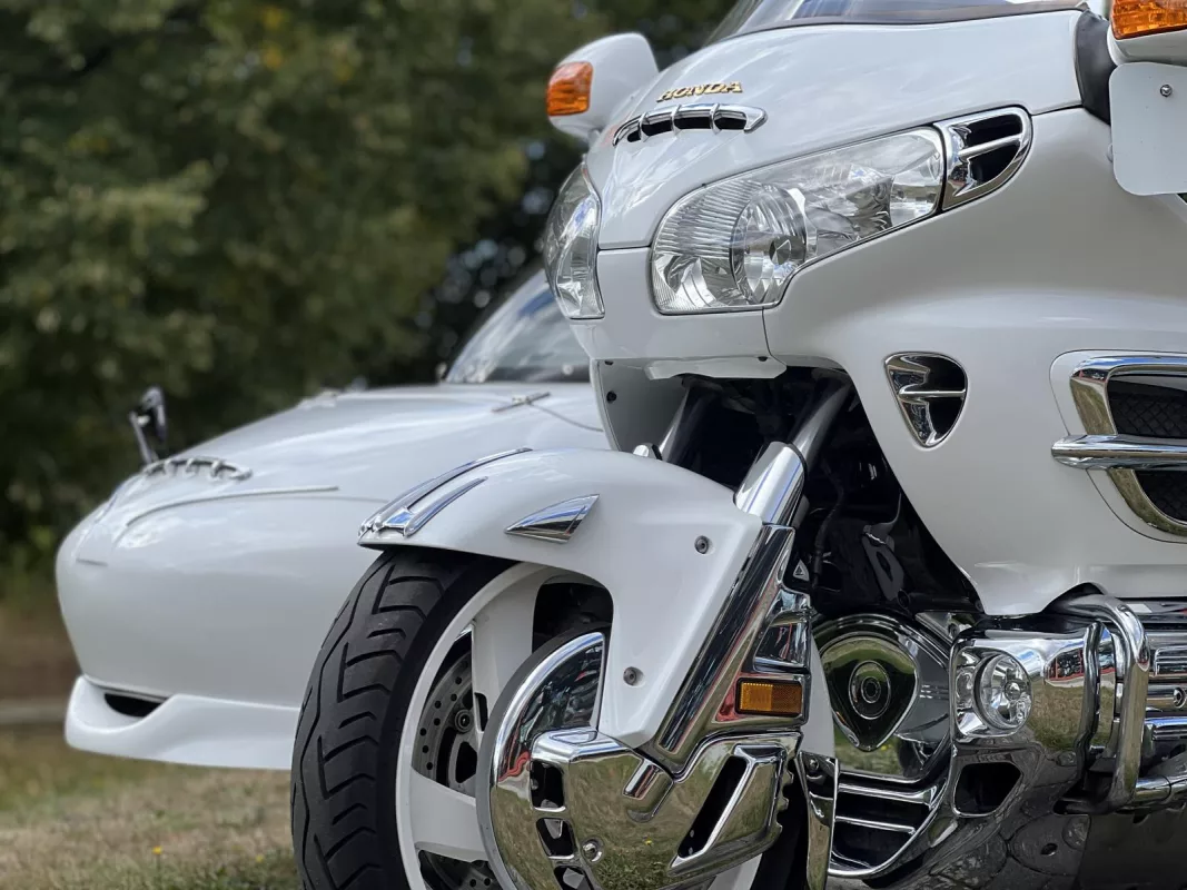 Tolles GL 1800 Hannigan Gespann in Arctic White. Mega Edel ! Super Fahrgefühl durch Easy-Steer Gabelumbau... Der Seitenwagen lässt sich während der Fahrt absenken bzw. anheben und garantiert dadurch immer optimalen Geradeauslauf.
