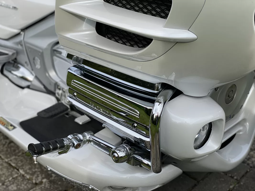 GL 1800 Cobra Trike in " Pearl Glacier White ".Mega Edel ! Dezent veredelt mit Fog Lights, Valve Covers, TC Spoiler oben, Bugspoiler, Dashtop und Beifahrertrittschutz in Fahrzeugfarbe, CB Antenne, HW Pegs and some more.Erst 13734 mls. !!