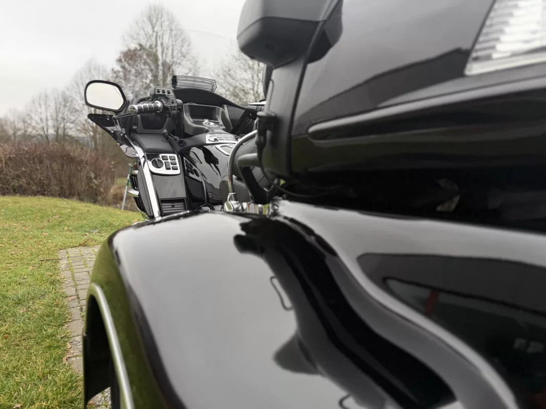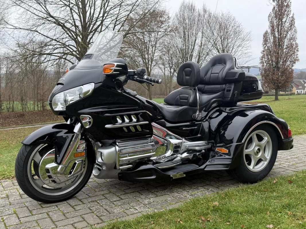 GL 1800 Trike in NH-1 black. Tolles Zubehör. Fog Lights, Rotor Covers, Motor und Rahmen Chrompaket, Fahrerlehne, Gepäckträger, Iso Grips and many more...