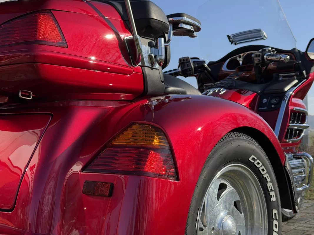 Wunderschönes GL 1800 Trike in Candy Red. Jede Menge Zubehör. Rotor Covers, Fog Lights, Shark Grills , Spiegel Chrom Rahmen, Valve Covers, Pig Nose Covers, Beifahrertrittschutz, Fahrerlehne, TC Spoiler, Armlehnen, Gepäckträger, CB Antenne, Iso Grips and some more...