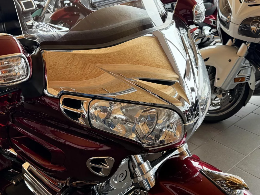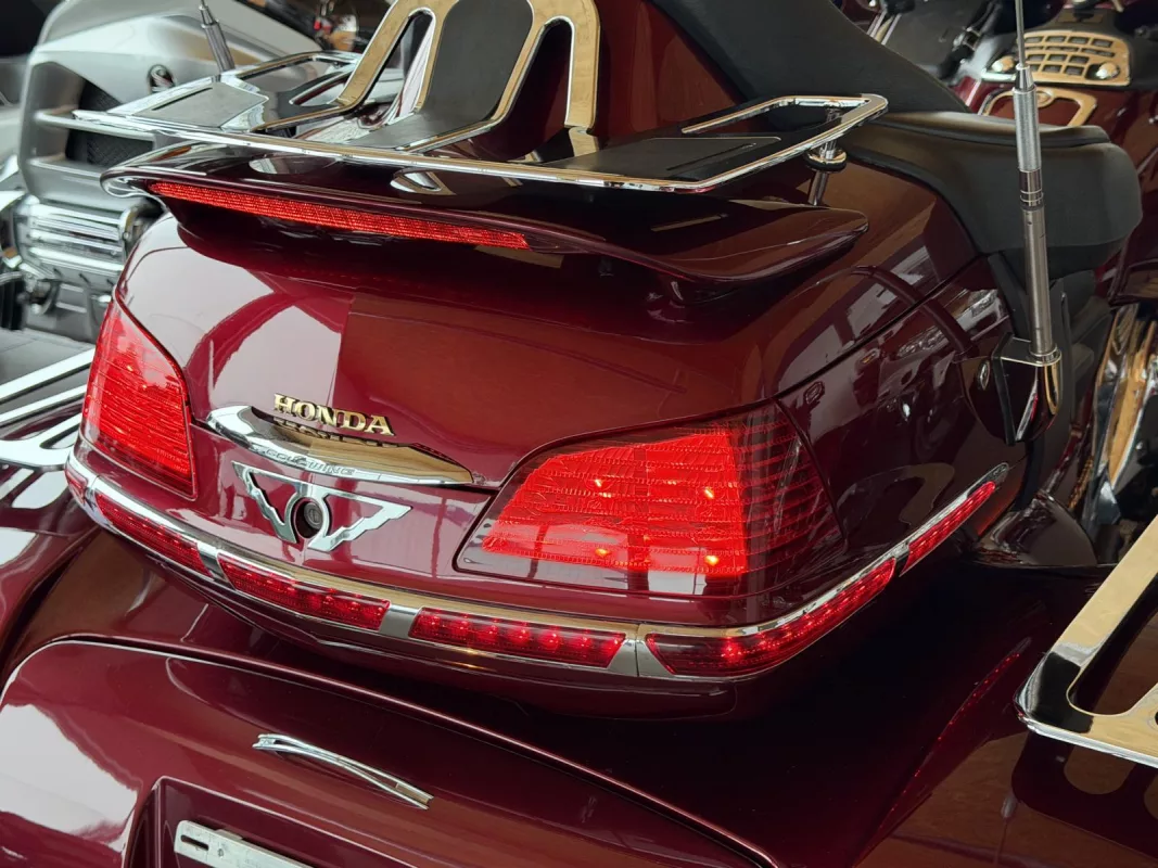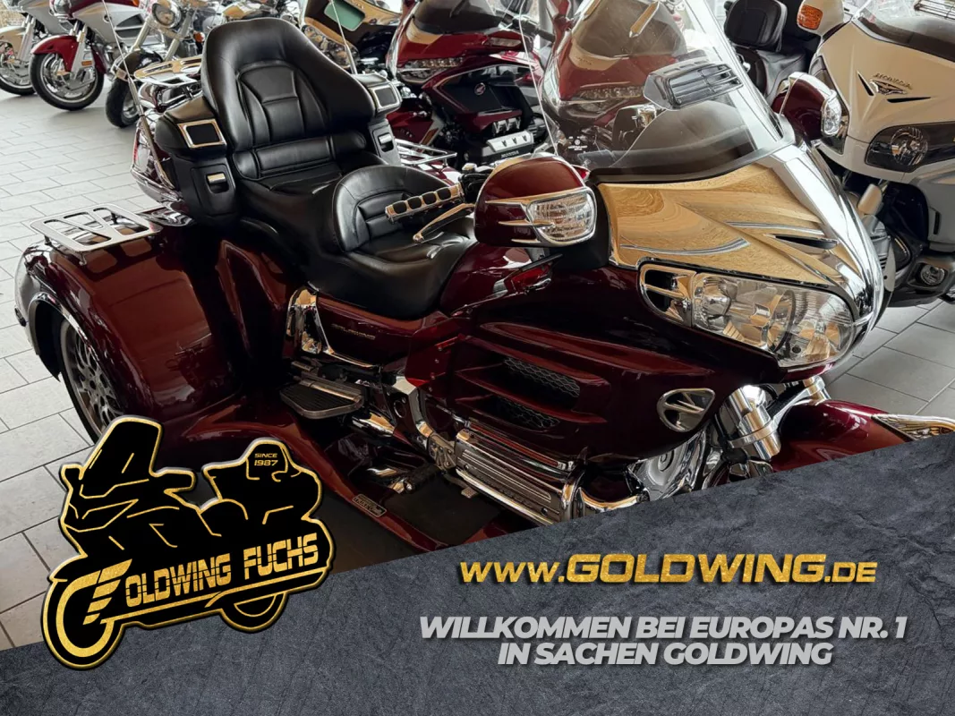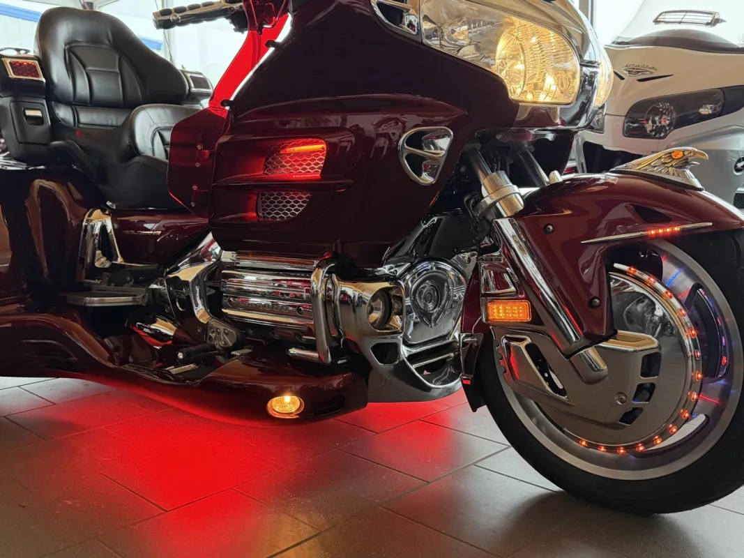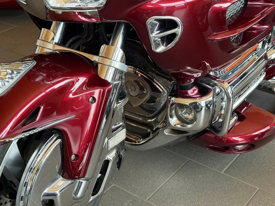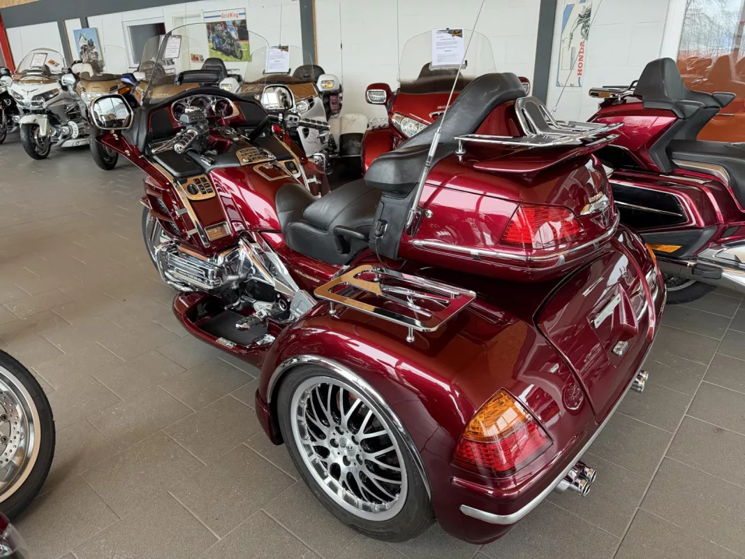 GL 1800 Cobra Trike in Durango Red. Chrom und Licht ohne Ende. Rotor Covers mit Rings of Fire, Fog Lights, komplettes Motor und Rahmen Chrom Paket, roter LED Light Kit, Pig Nose Covers, Fairing 2012 Style, weiße Blinker mit Chrom Rahmen, Iso Grips, alle drei Gepäckträger, TC Spoiler, Beifahrertrittschutz, CB Antenne and many, many more...