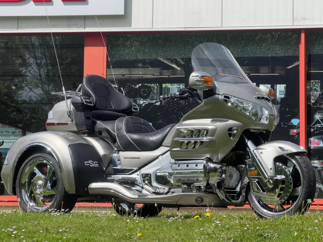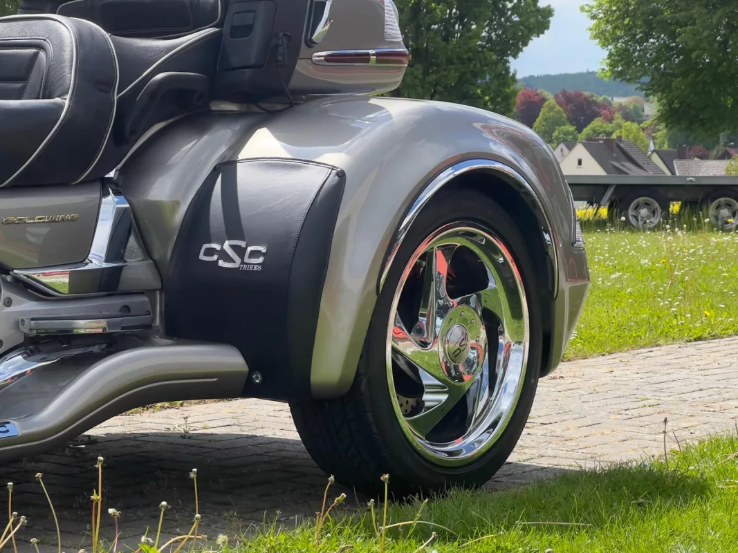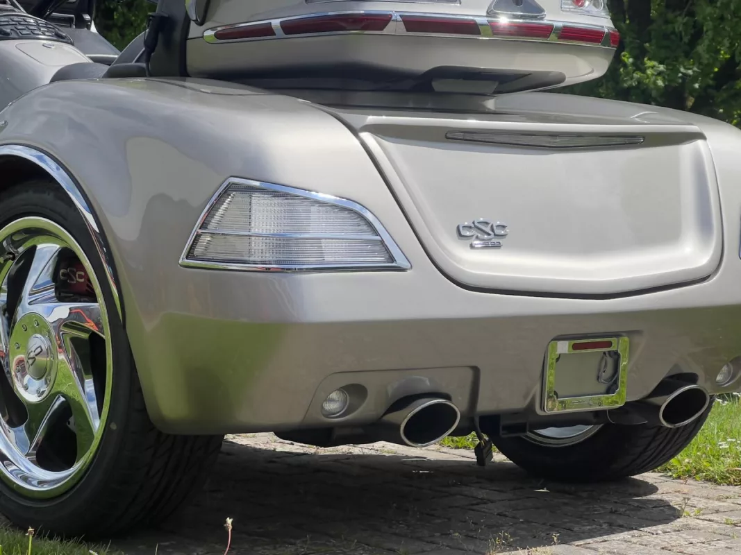 GL 1800 Viper Trike in Stream Silver Metallic. Trike Umbau neu ! Sehr schön veredelt mit Rotor Covers, Bug Spoiler, Fog Lights, Spiegelkrallen, Shark Grills, Pig Nose Covers, Shark Grill Fairing, Pivot Covers, 2 tone Sitzbank, TC Chromstreifen, Gepäckträger, CB Antenne and some more...