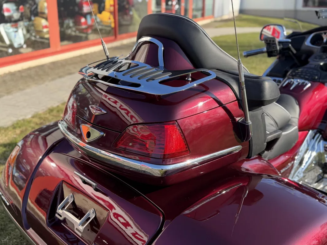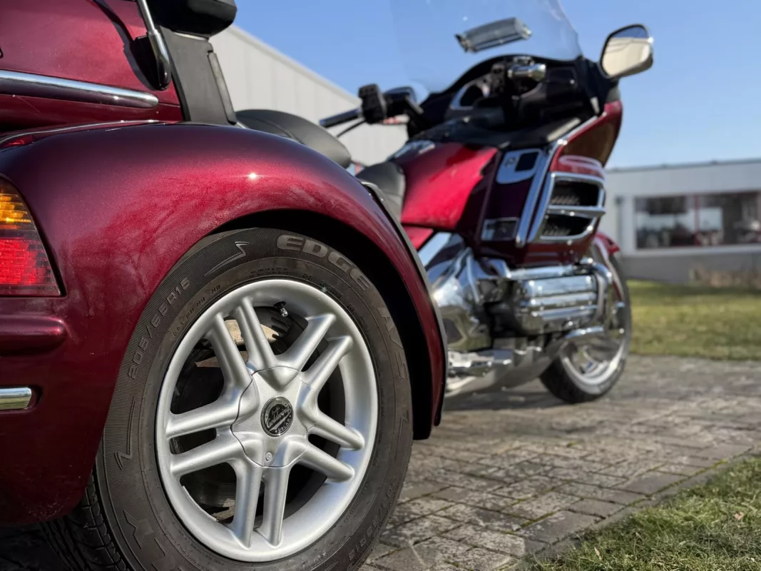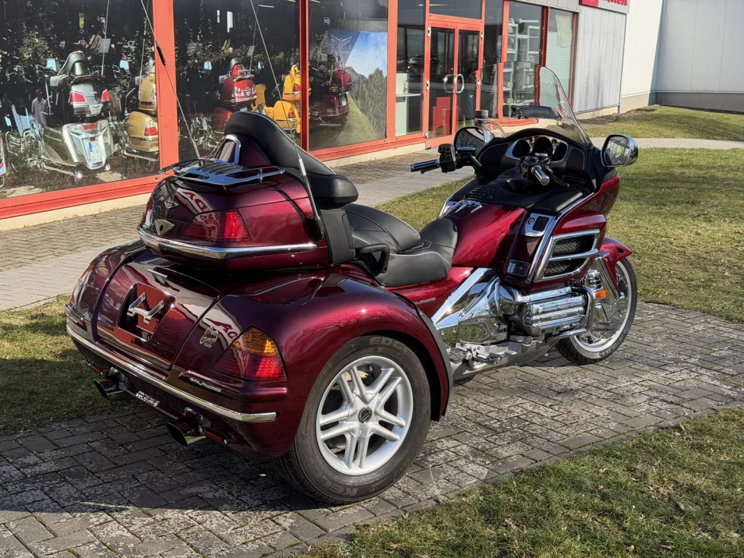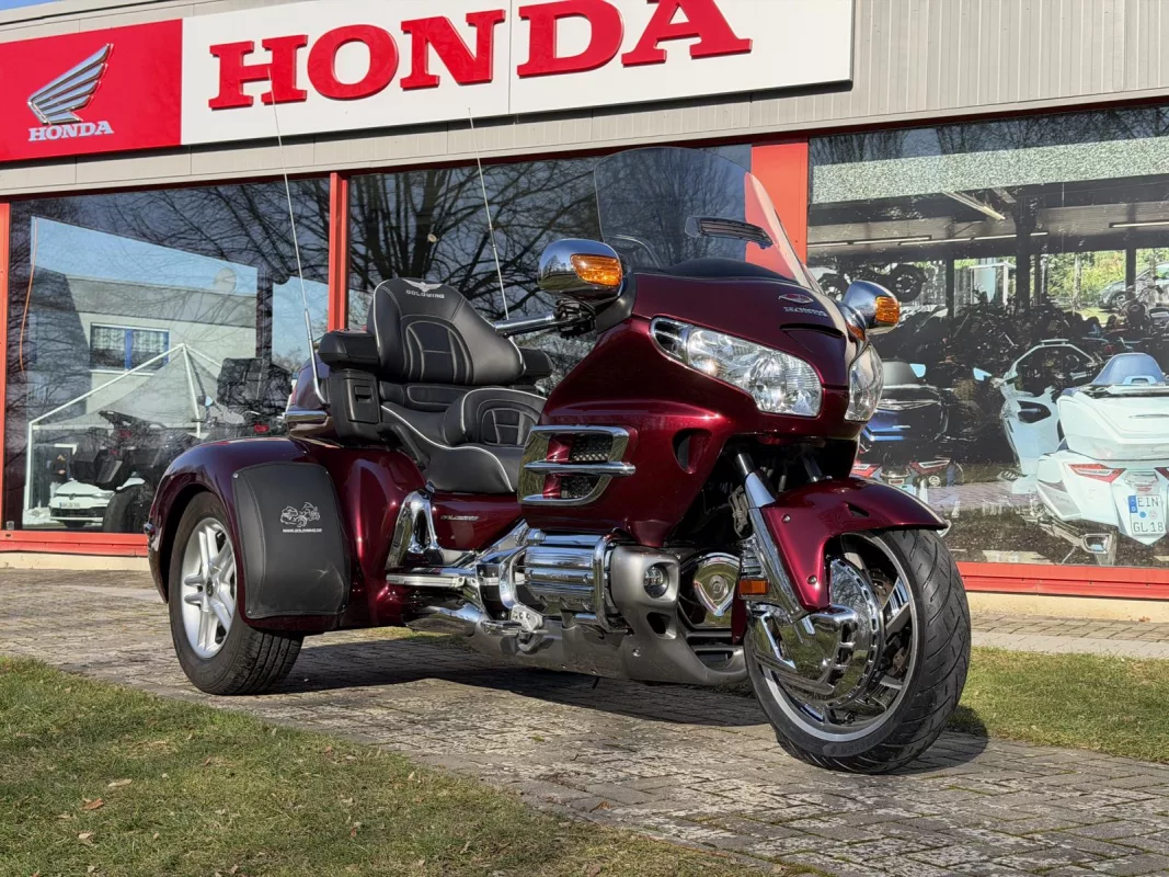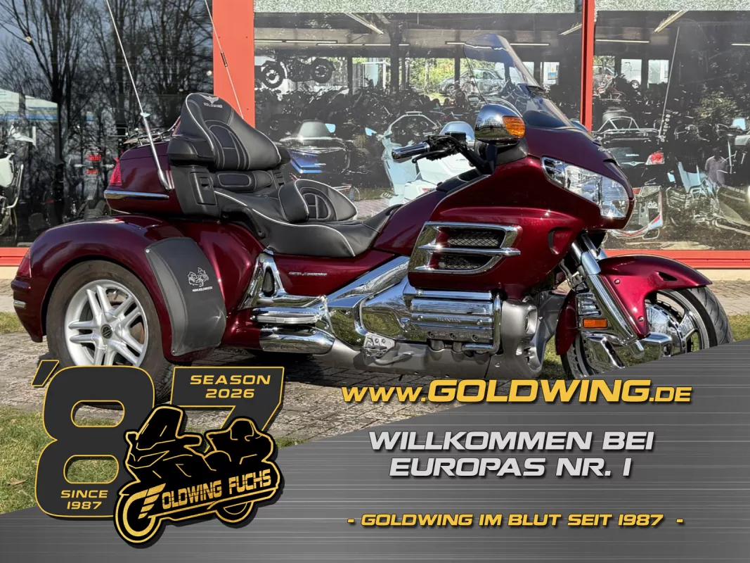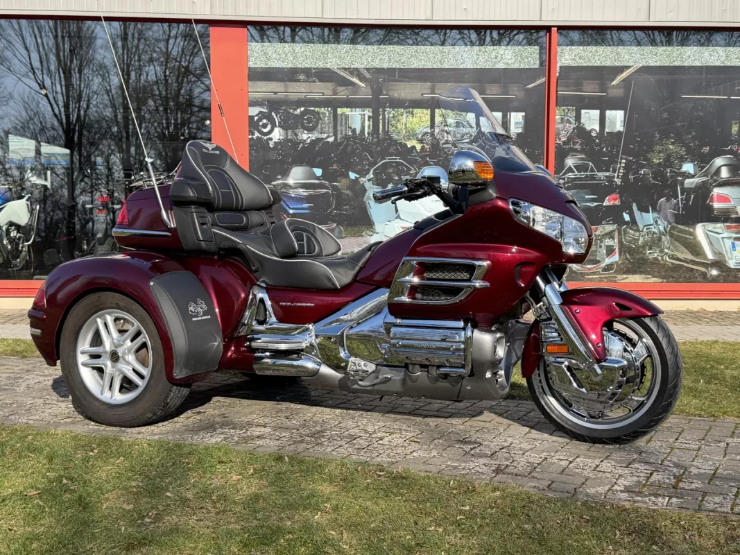 GL 1800 Cobra Trike in Durango Red. Sehr seltene Farbe. Klasse veredelt mit Rotor Covers, komplettes Motor und Rahmen Chrom Paket, Fog Lights, Kühler Chromrahmen, Chrom Spiegel, Beifahrertrittschutz, CB Antenne, Gepäckträger, 2 tone Sitzbank and some more...