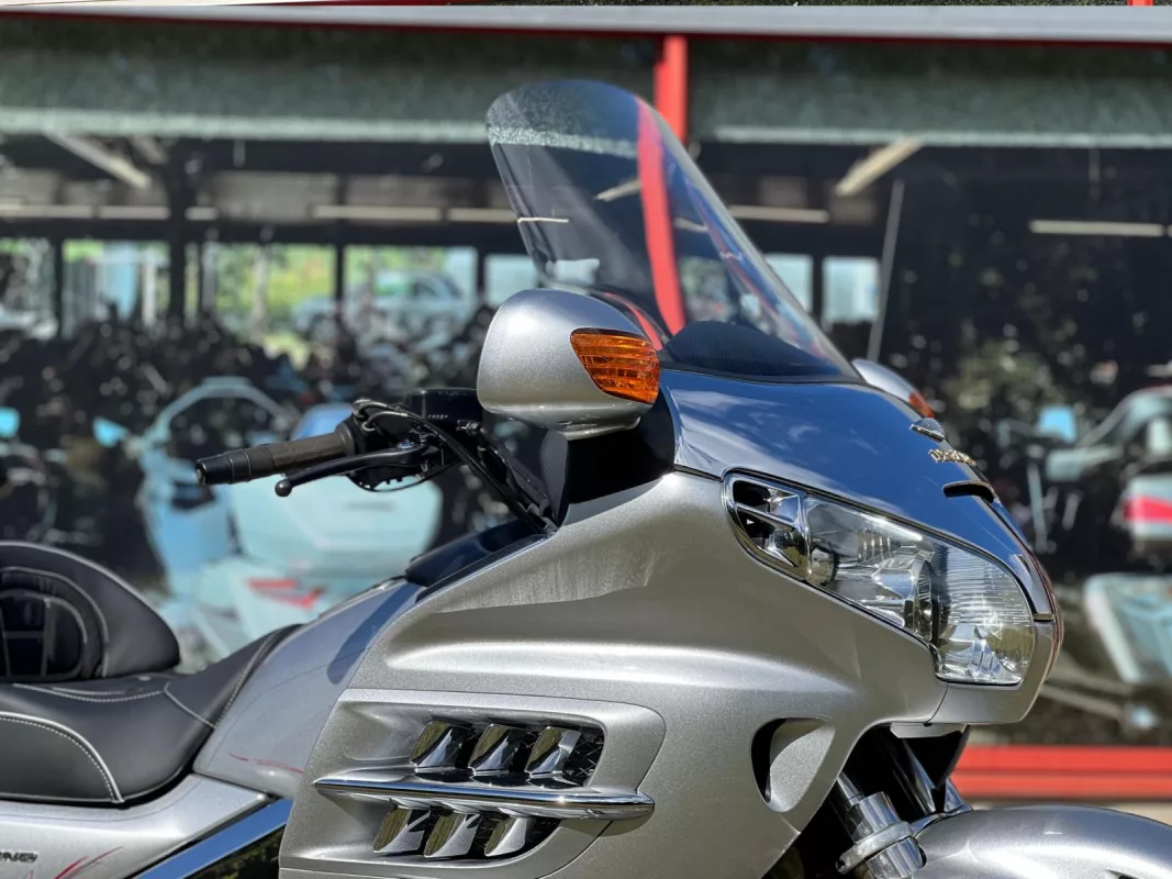 Das ist mal wieder ein Sahnestück. GL 1800 Hannigan Trike mit Einzelradaufhängung in Billet Silver. Sehr schön veredelt mit Chrome Fairing, Fog Lights, Zündungsdeckel, Frame Covers, Beifahrertrittschutz, TC Chromstreifen, 2 tone Sitzbank, CB Antenne, Shark Grills, TC Spoiler, Chrom Felgen hinten and some more...