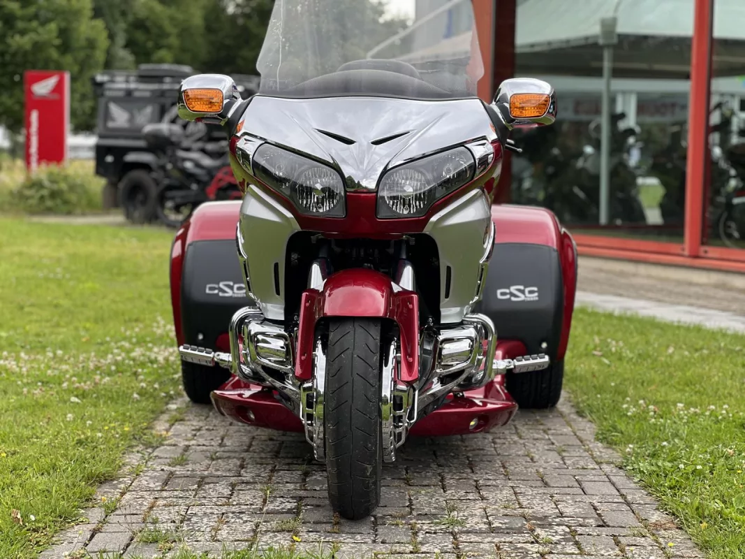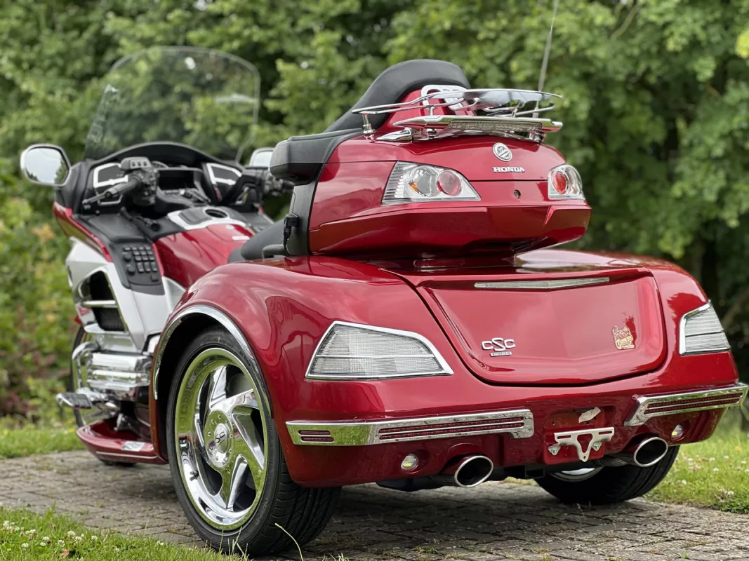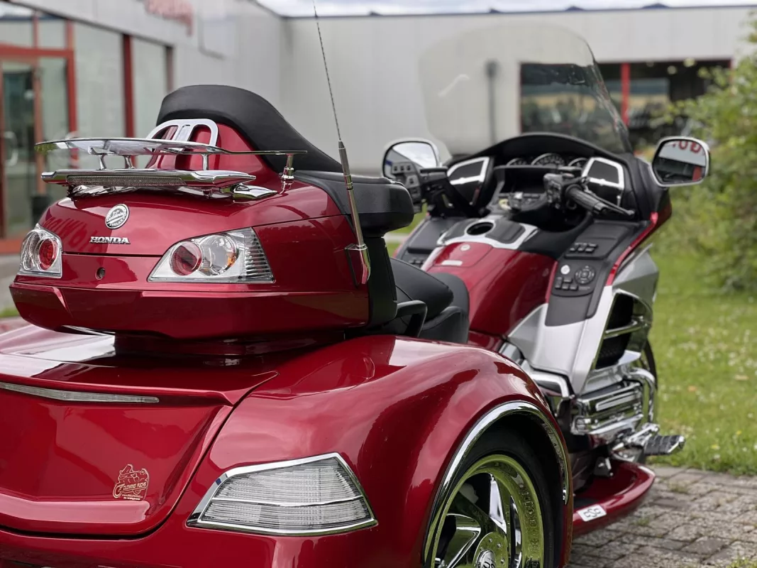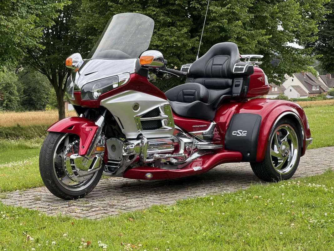 Der Hammer ! GL 1800 SC 68 Viper Trike in Candy Red mit einem neuen Trikeumbau und erst 9627 mls.! Schön veredelt mit komplettem Motor und Rahmen Chrom Paket, Kühlerchromrahmen, Rotor Covers, Chrome Fairing und Chrome Spiegel, HW Pegs, CSC Beifahrertrittschutz, TC Gepäckträger, TC Spoiler oben and some more...