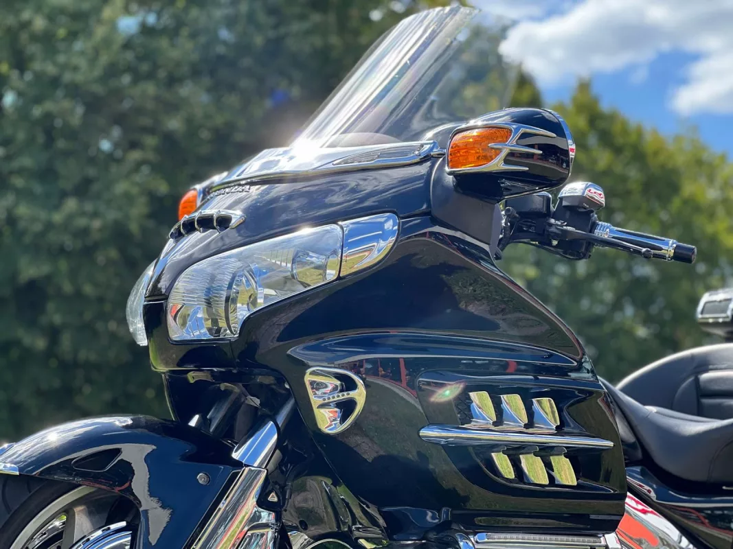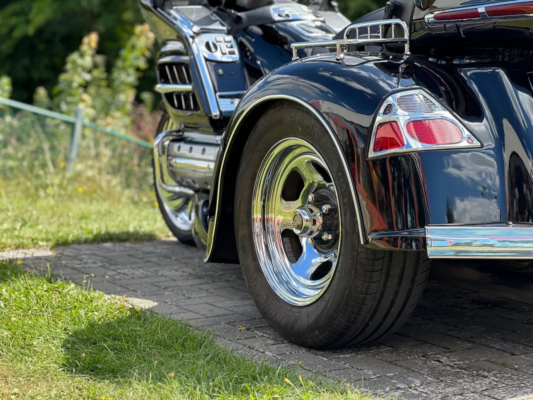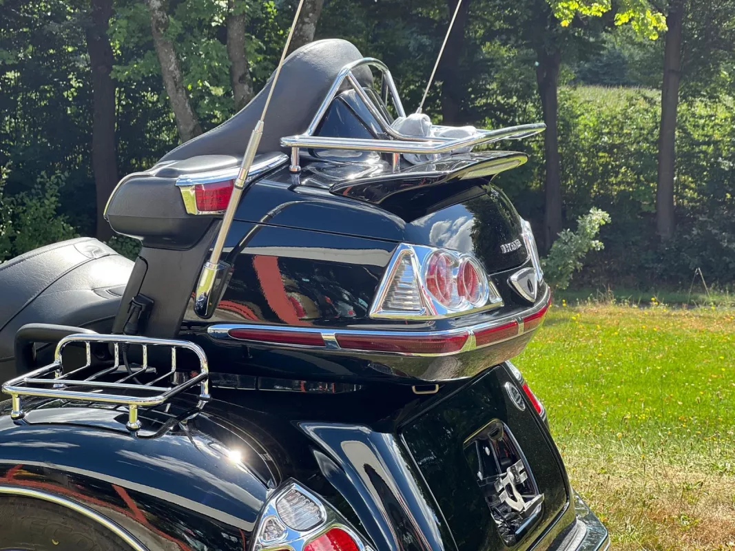 Das ist mal eine Perle ! Mega gepflegtes GL 1800 Trike mit erst 20406 mls. Wunderschön veredelt mit Rotor Covers, Rings of Fire, Küry Akyn Kotflügelverlängerung, Chrom Bugspoiler, Fog Lights, Pig Nose Covers, Shark Grills, Küry Akyn Wind Shield Trim mit Blinkern, Shark Grill Fairing Spiegelrahmen mit Blinkern, Frame Covers, Beifahrertrittschutz, Stealth Lights, Blinker Krallen, alle 3 Gepäckträger, TC Spoiler, TC Chromstreifen mit LED, CB Antenne, Stoßstange hinten, AHK, Heizgriffe and many, many more..