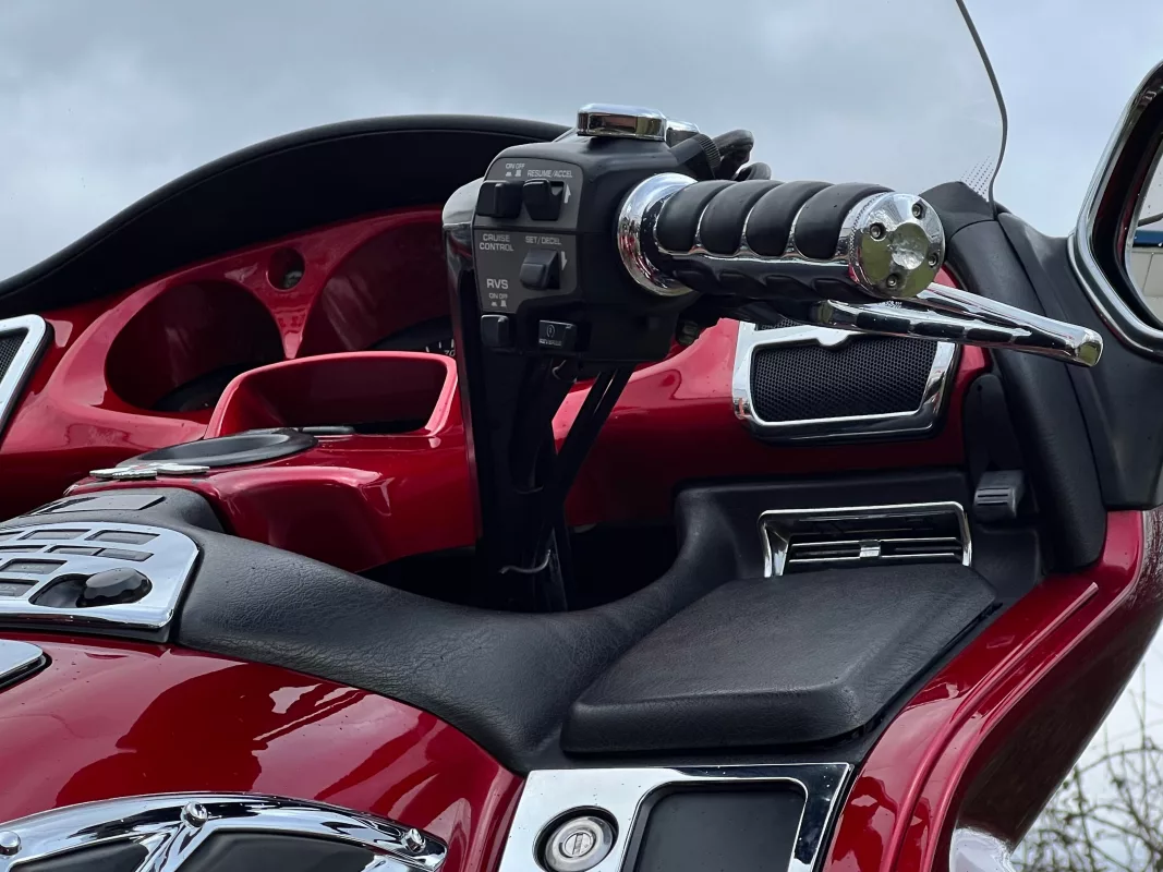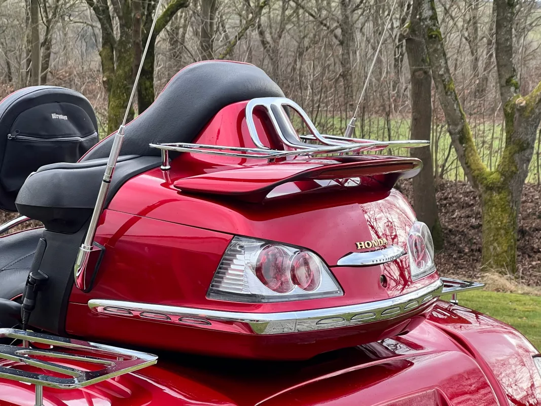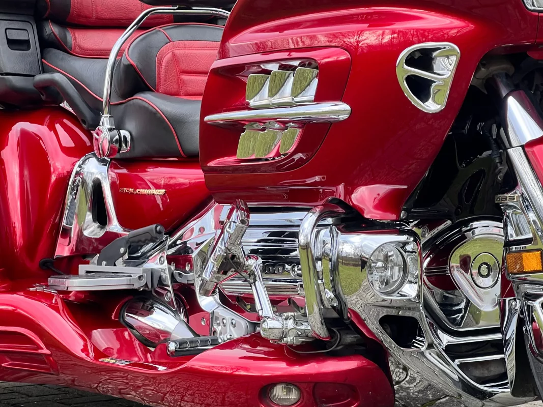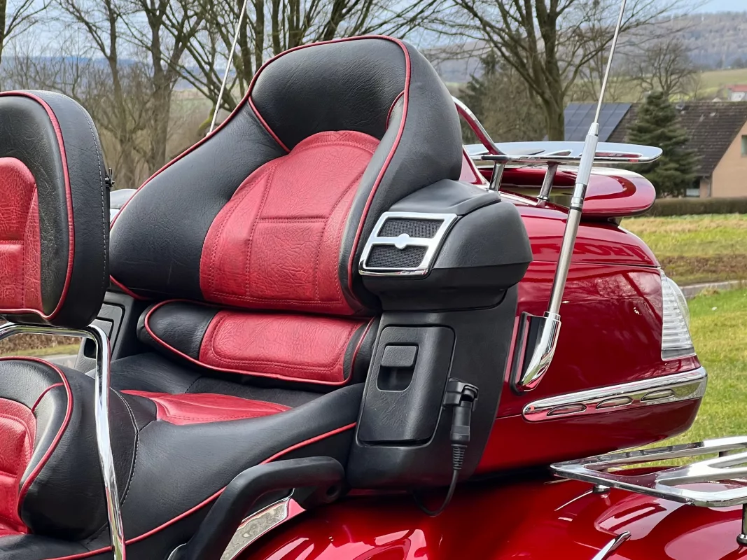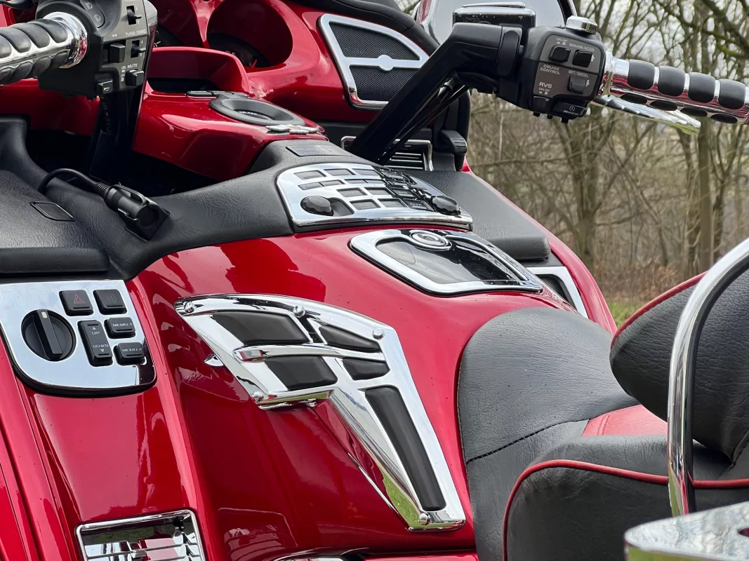 GL 1800 Cobra Trike in Candy Red. Fulldresser vom feinsten. Rotor Covers, verchromter Bugspoiler, Fog Lights, HW Boards, komplettes Motor und Rahmen Chrompaket, 2 tone Stzbank mit Fahrerlehne, Speere auf den Kotflügeln, alle 3 Gepäckträger, CB Antenne, TC Spoiler, Shark Grills, Eye Brows, Spiegel Chromrahmen, Tank Pads, Dashtop in Fahrzeugfarbe and many, many more...