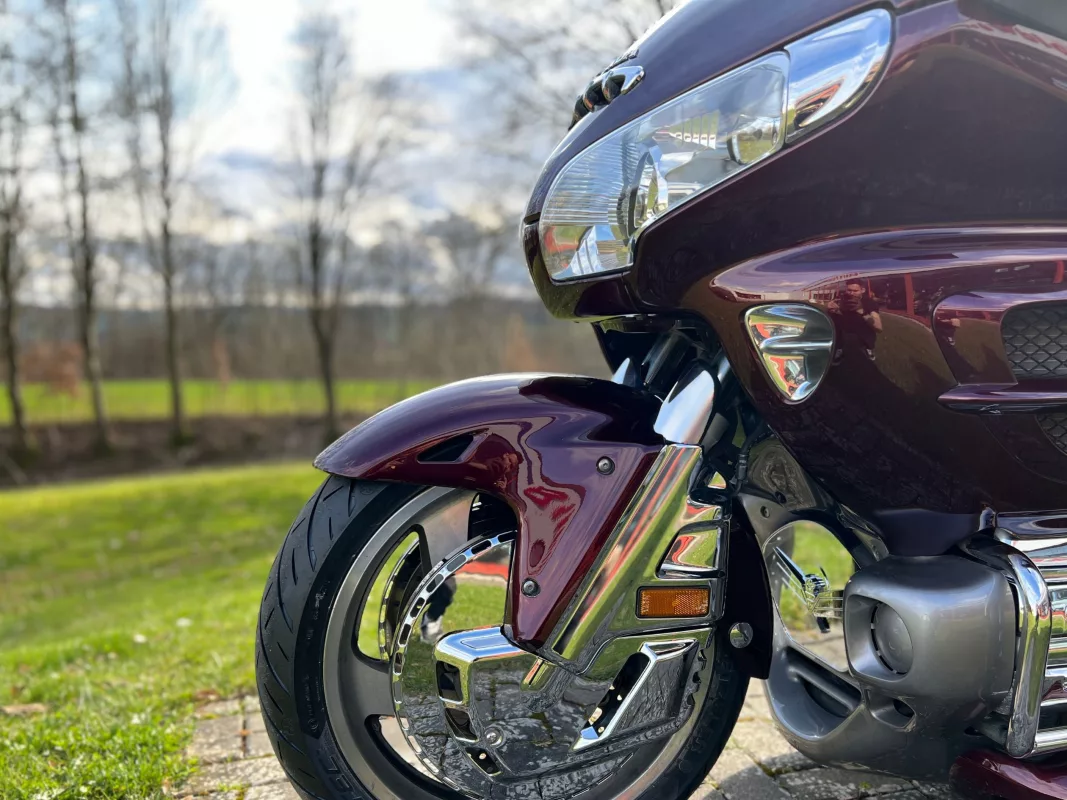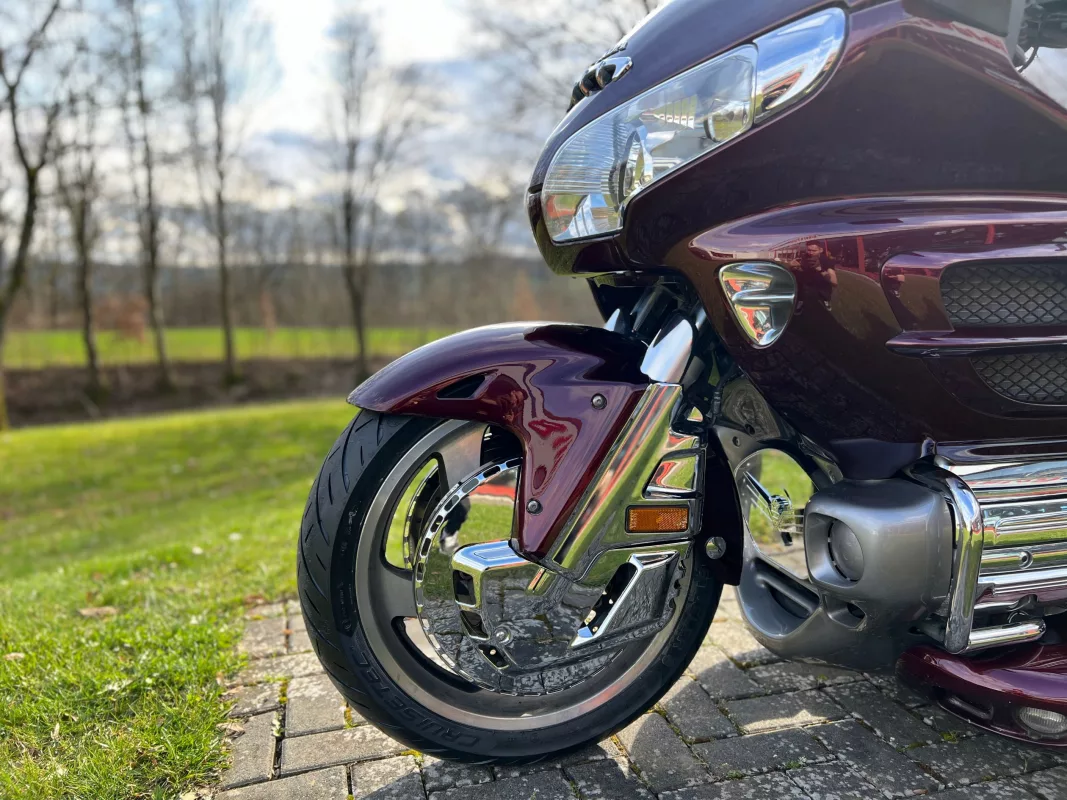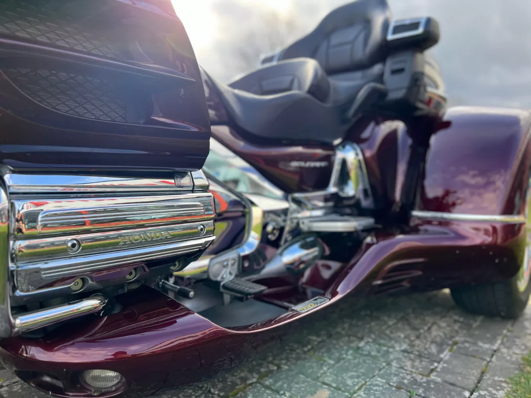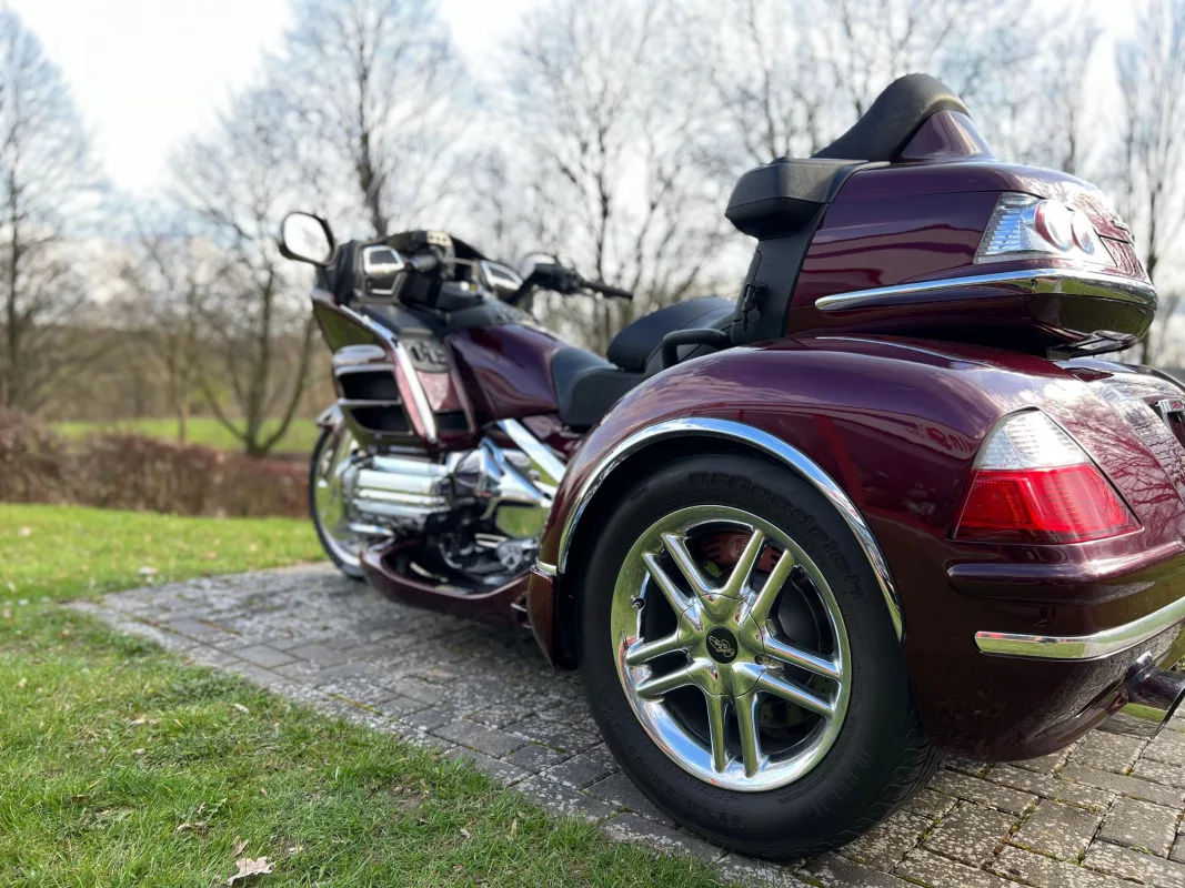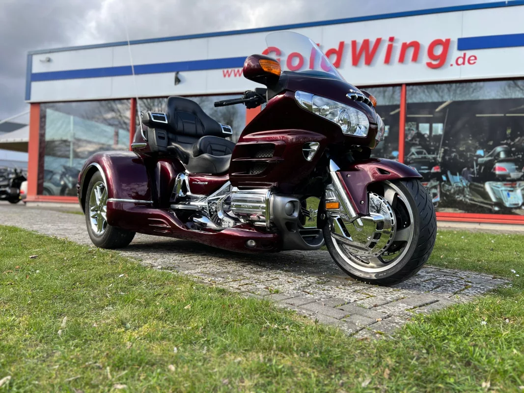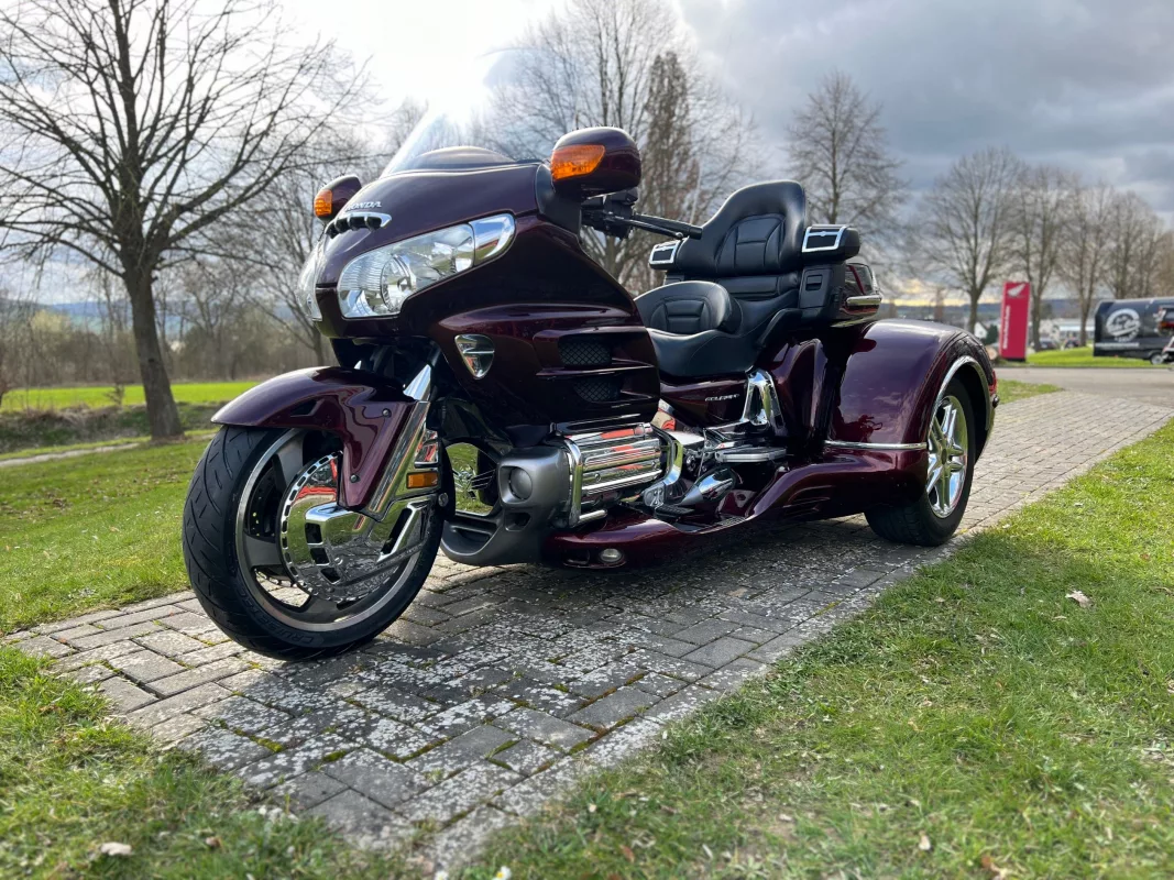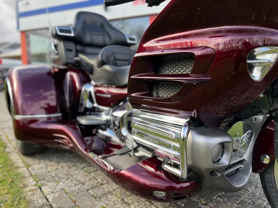 GL 1800 Cobra Trike in Dark Red. Dezent veredelt mit Bremsscheibenabdeckungen, Pig Nose Covers, komplettes Motor und Rahmen Chrom Paket, Beifahrertrittschutz, Shark Grill Fairing, TC Chromstreifen, Lautsprecher Chromrahmen and some more...