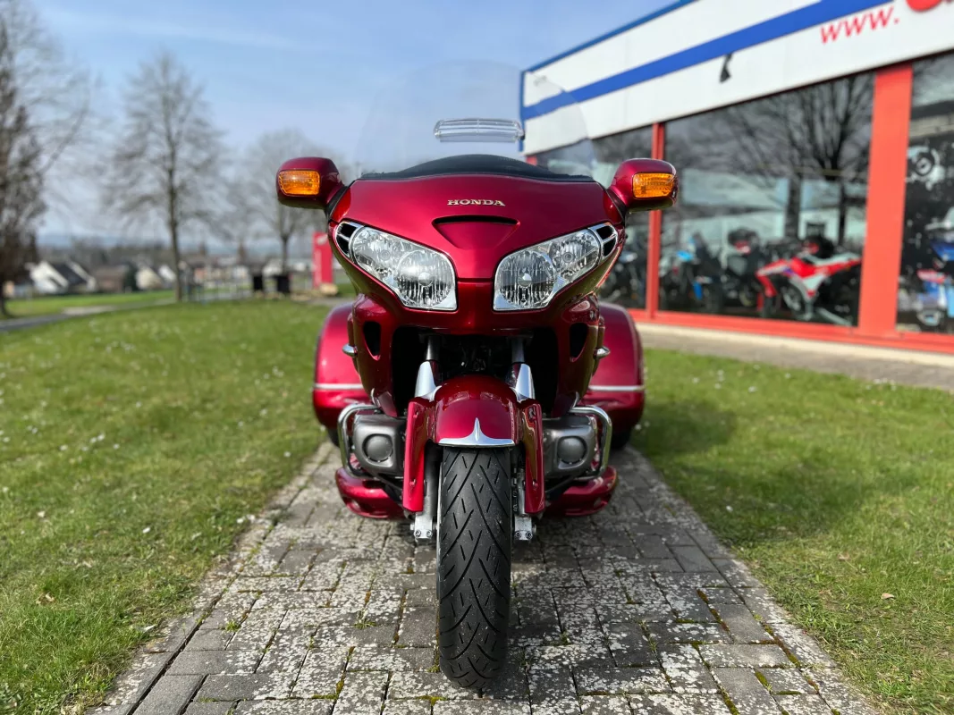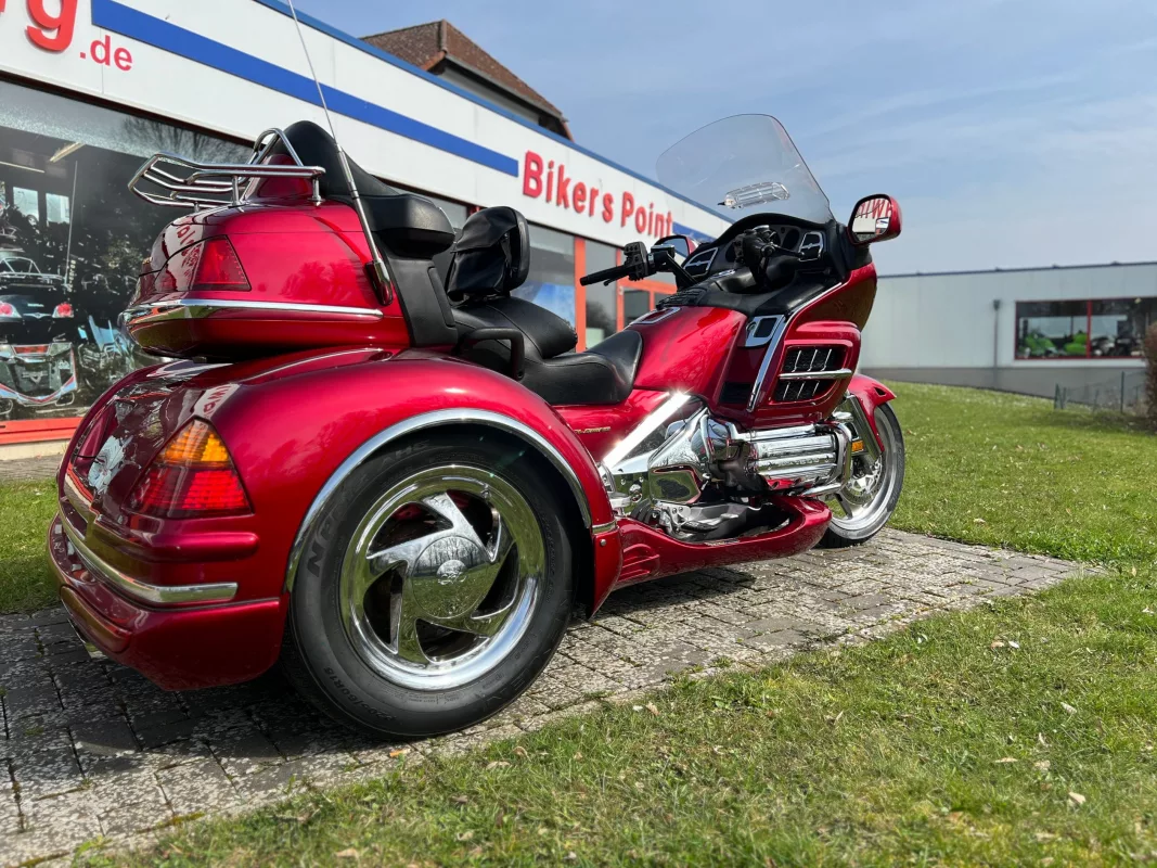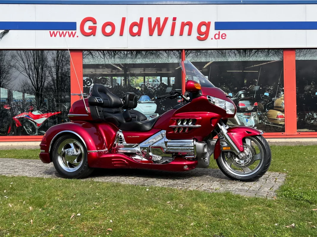 GL 1800 Cobra Trike in Candy Red mit Einzelrad Aufhängung und sehr schönem Zubehör. Komplettes Motor und Rahmen Chrom Paket, Shark Grills, Kotflügel Chrome Accent, Beifahrertrittschutz, TC Chromstreifen, Gepäckträger, Fahrerlehne and many, many more..
