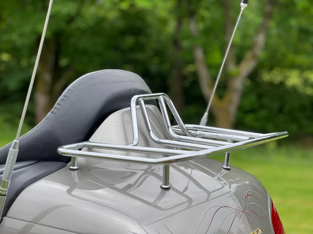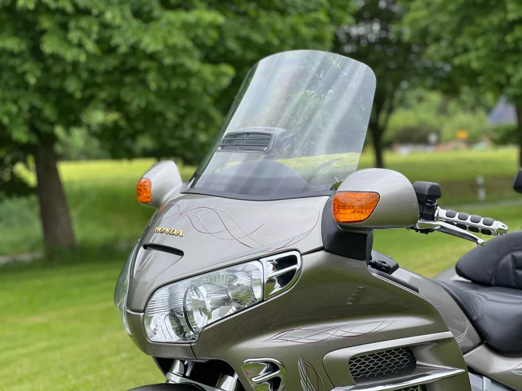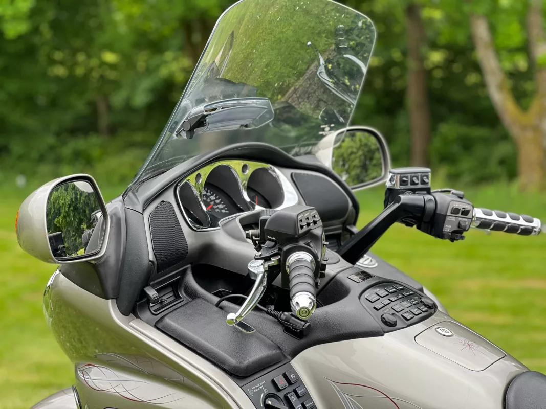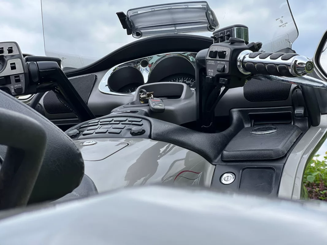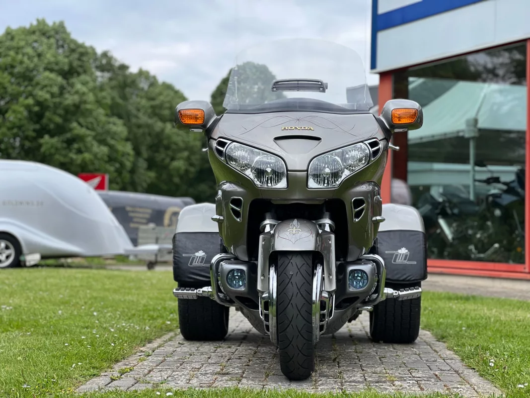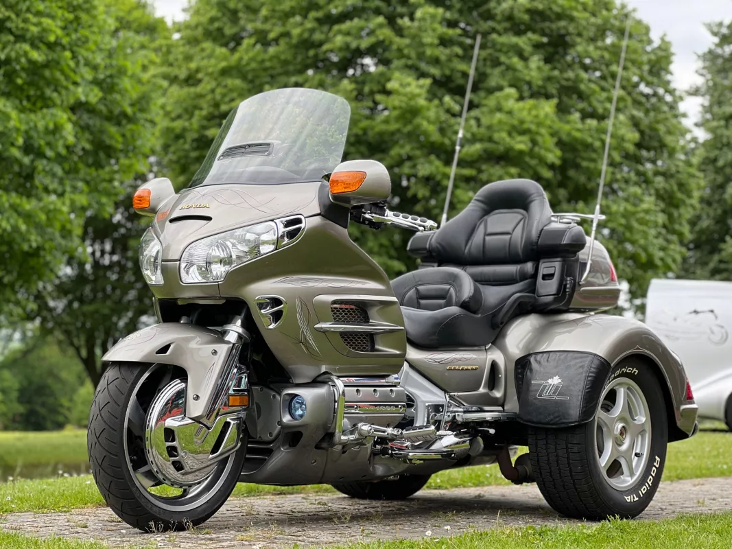 GL1800 Lehman Trike Typ Monarch 3 in Stream Silver Metallic. Mega seltener Umbau. Sehr schön veredelt mit Rotor Covers, Fog Lights, Pig Nose Covers, HW Pegs, Trittbrettanlage, Pivot Covers, tolles Pinstriping, Gepäckträger, CB Antenne, Küry Akyn Style Light Bar, Iso Grips. K+B Hebel and some more..