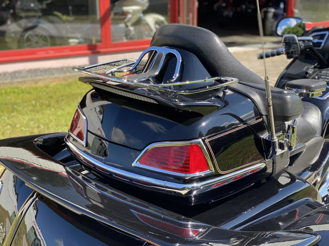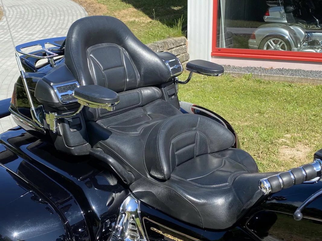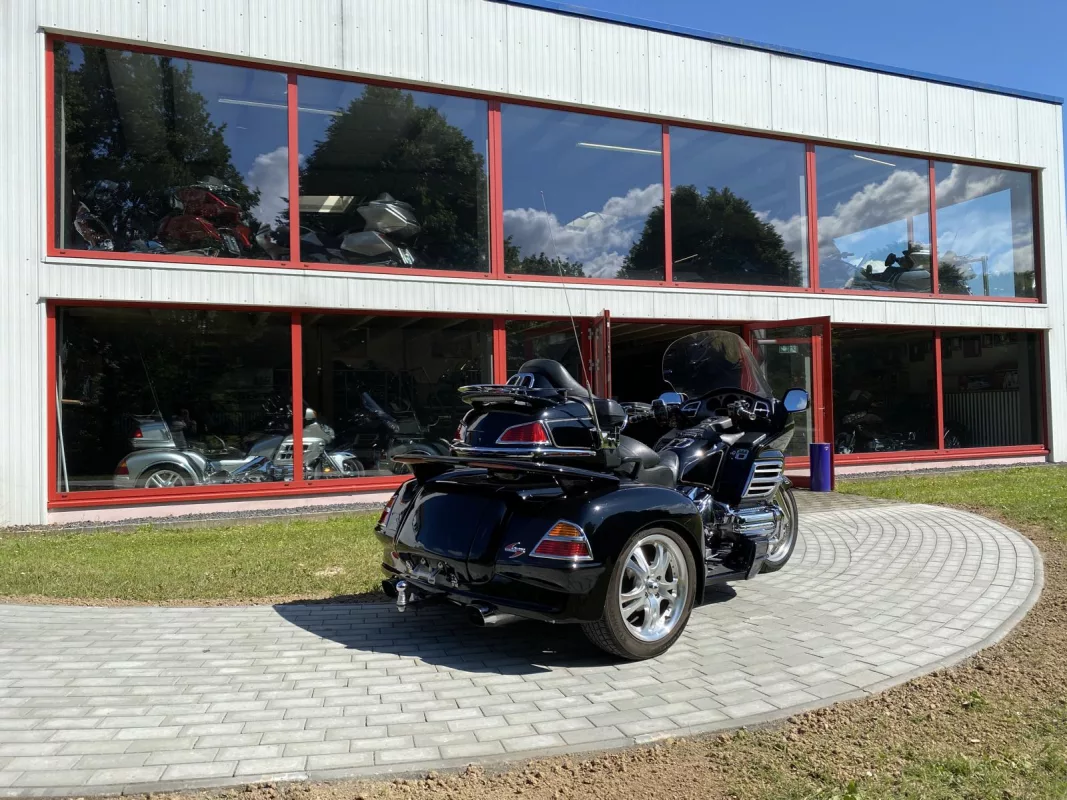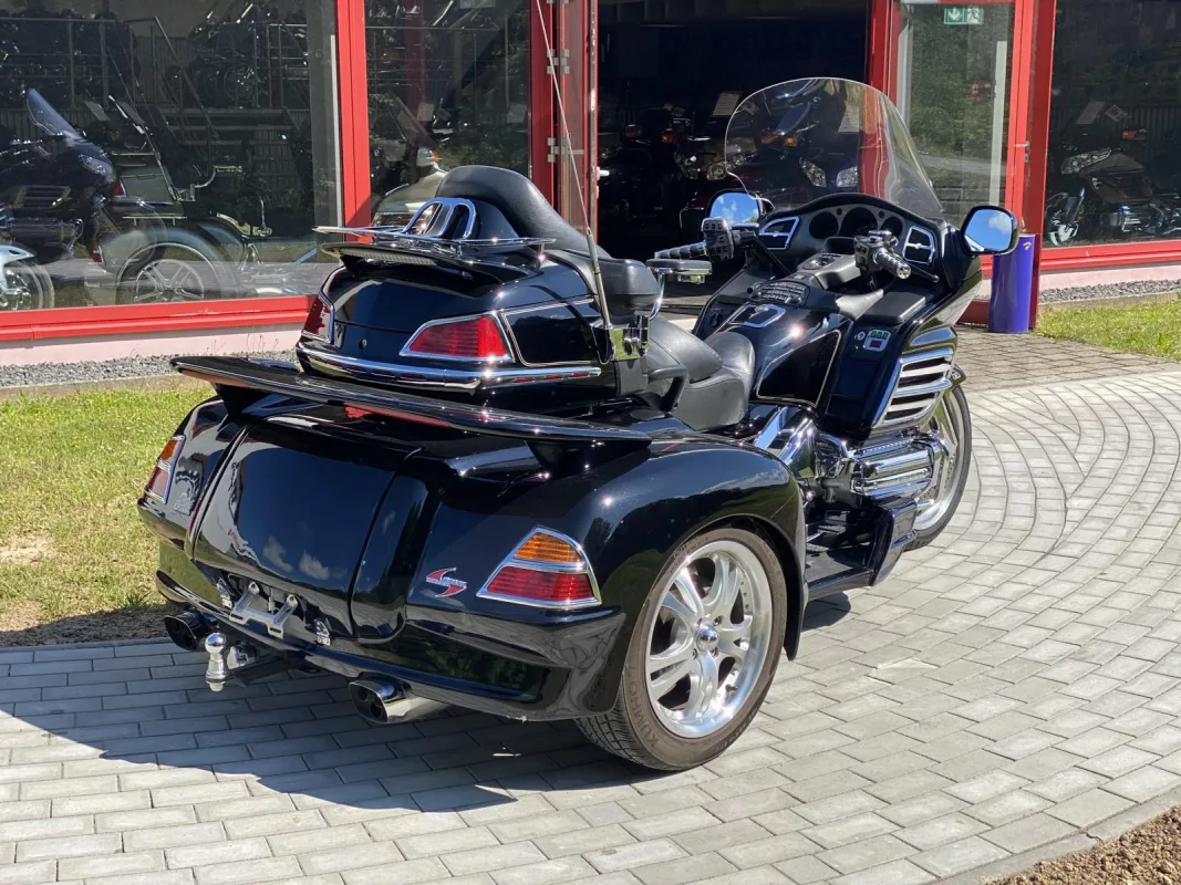 GL 1800 Trike Hannigan Trike vom allerfeinsten. Mit Einzelradaufhängung und schönem Zubehör. Pinstriping, Chrom Bug Spoiler, Fog Lights, Kühlerchromrahmen, Pig Nose Covers, komplettes Motor und Rahmen Chrom Paket, Gabelbrücke, Stealth Lights, Beifahrer Trittschutz, beide Spoiler, Gepäckträger, AHK, Iso Grips, Lautsprecher Chromrahmen and some more. *Die abgebildeten Armlehnen sind nicht mehr Bestandteil des Angebotes.