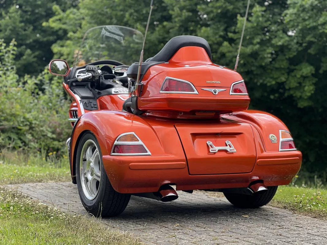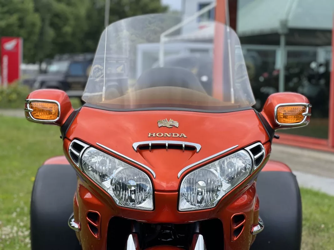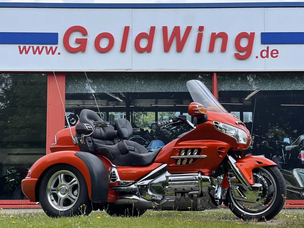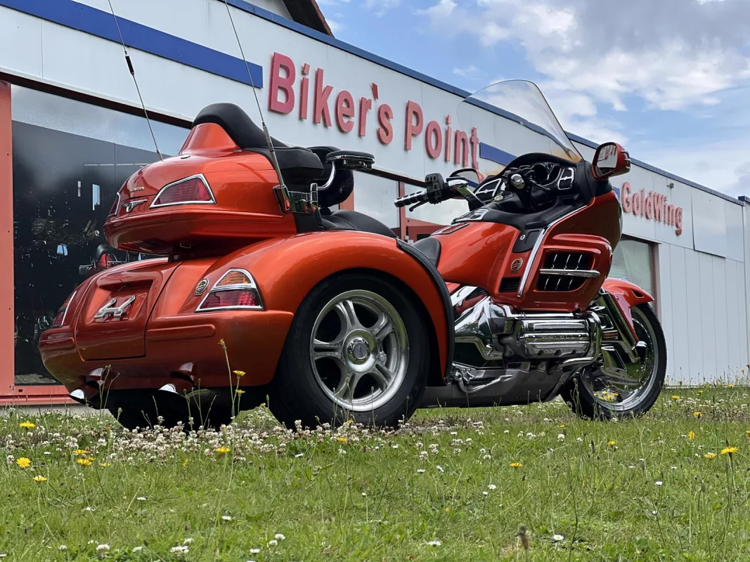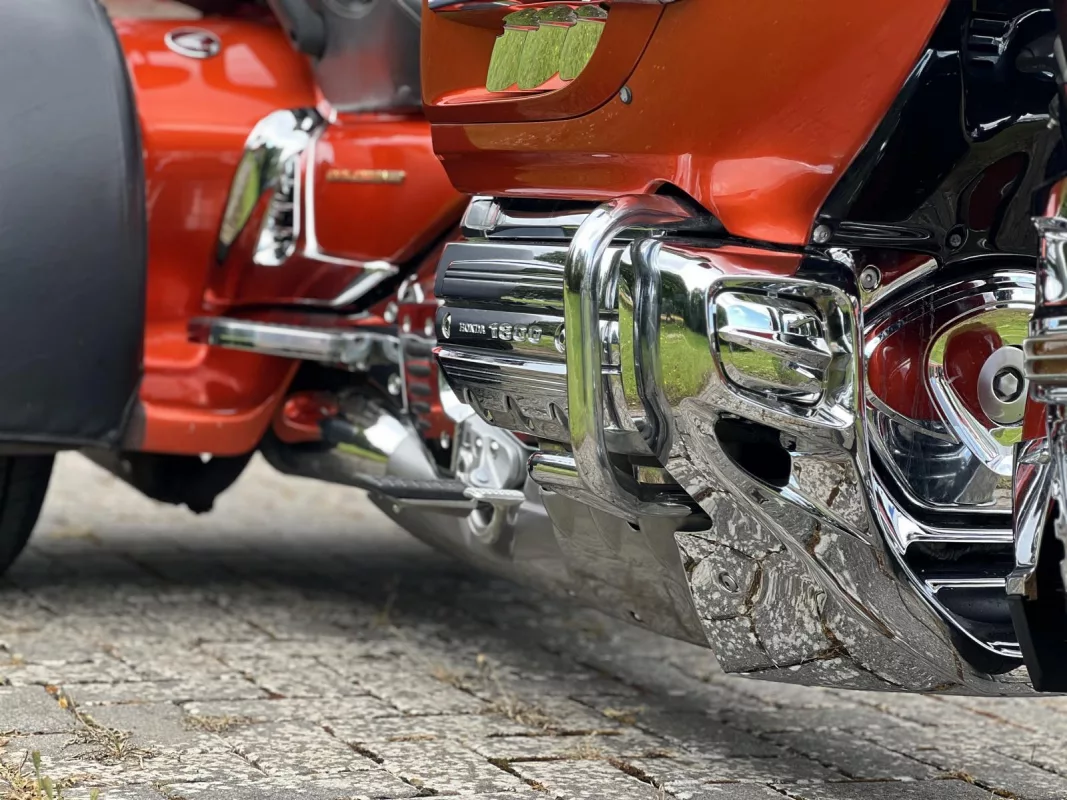 Was für eine geile Farbe ! GL 1800 Champion Trike in " Candy Orange ". Super seltene US Farbe. Klasse veredelt mit Rotor Covers, verchromter Bugspoiler 2012 Style, komplettes Motor und Rahmen Chrom Paket, Kotflügelverlängerung, Beifahrertrittschutz, Shark Grills Verkleidung und Fairing, Eye Brows, Armlehnen, Fahrerlehne, CB Antenne, Spiegelkrallen, Chromrahmen Rücklichter, Iso Grips, Chrompaket Innenverkleidung, Lenkerchrom Abdeckungen and some more...