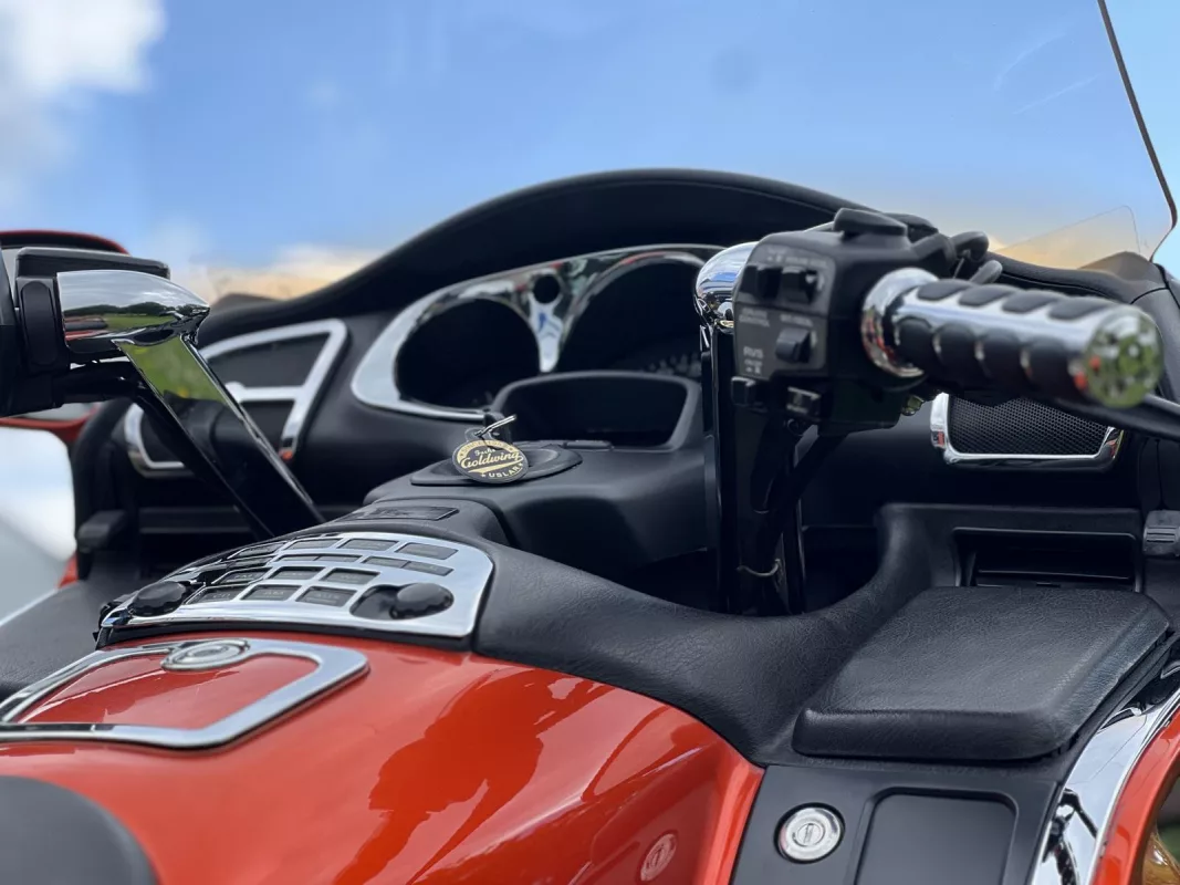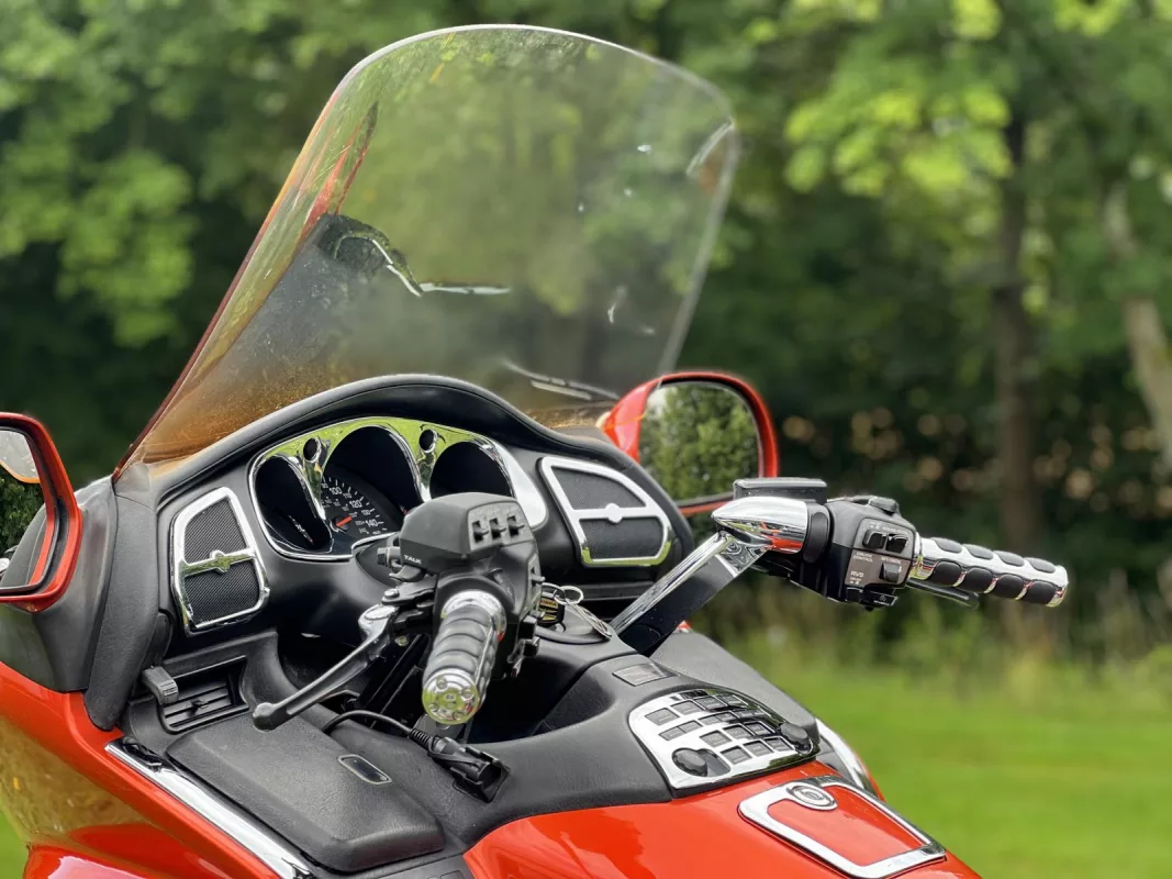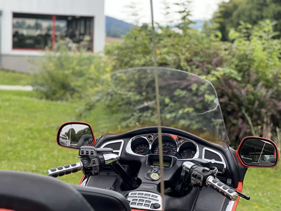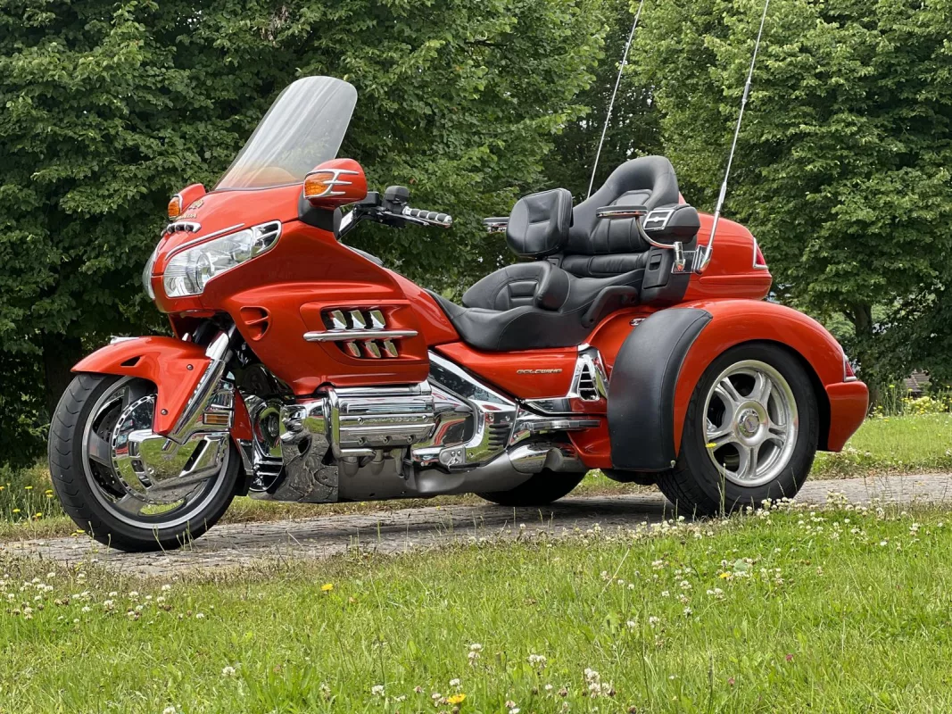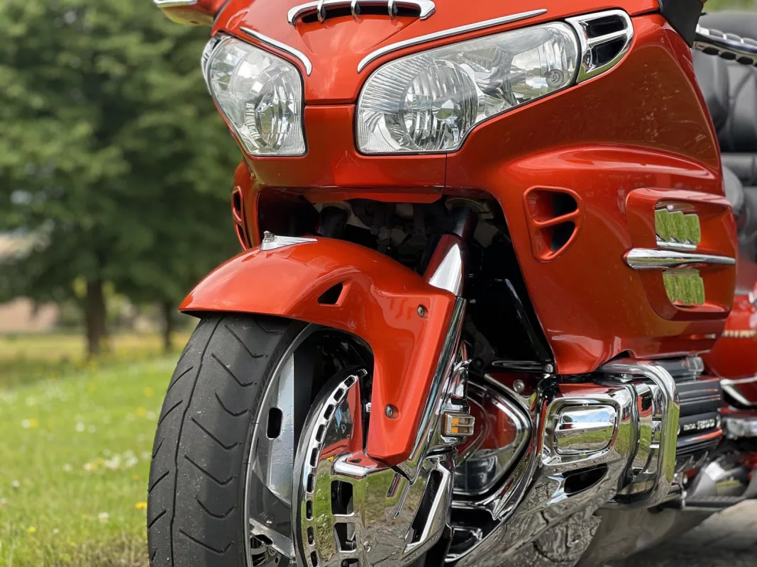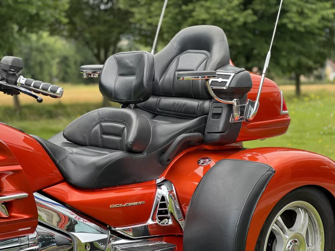 Was für eine geile Farbe ! GL 1800 Champion Trike in " Candy Orange ". Super seltene US Farbe. Klasse veredelt mit Rotor Covers, verchromter Bugspoiler 2012 Style, komplettes Motor und Rahmen Chrom Paket, Kotflügelverlängerung, Beifahrertrittschutz, Shark Grills Verkleidung und Fairing, Eye Brows, Armlehnen, Fahrerlehne, CB Antenne, Spiegelkrallen, Chromrahmen Rücklichter, Iso Grips, Chrompaket Innenverkleidung, Lenkerchrom Abdeckungen and some more...