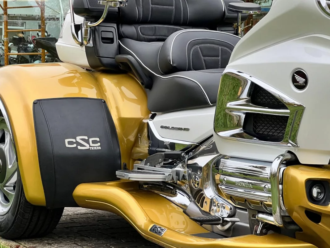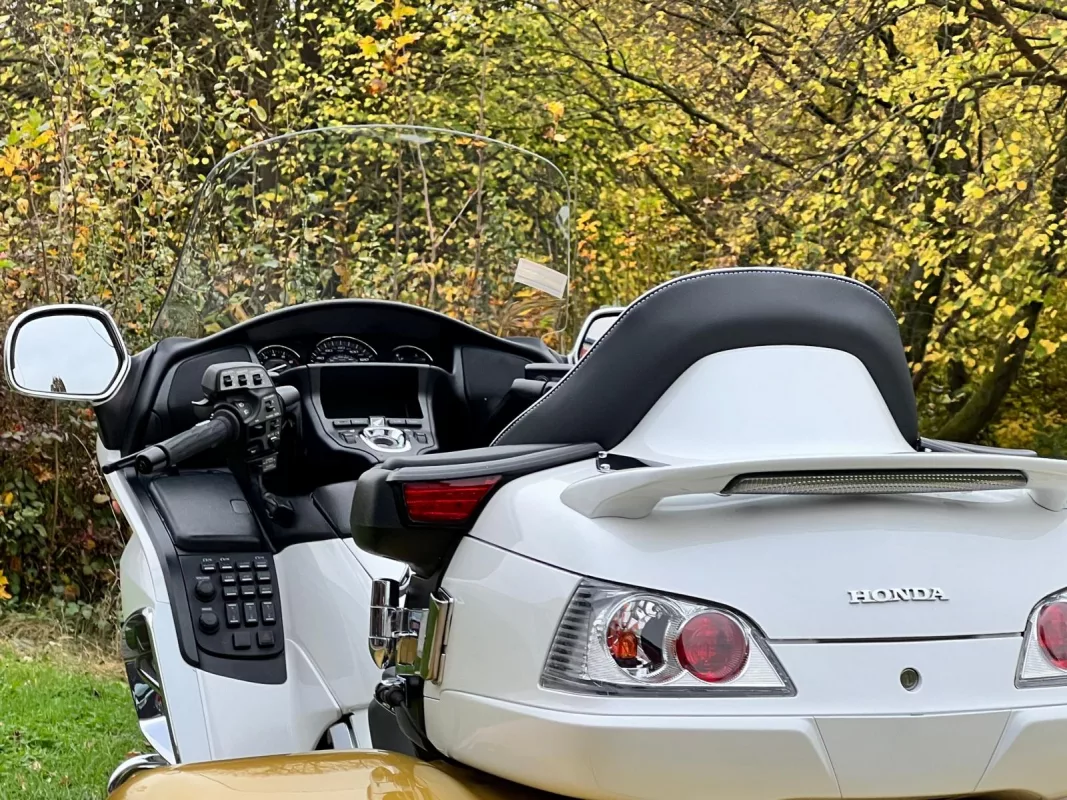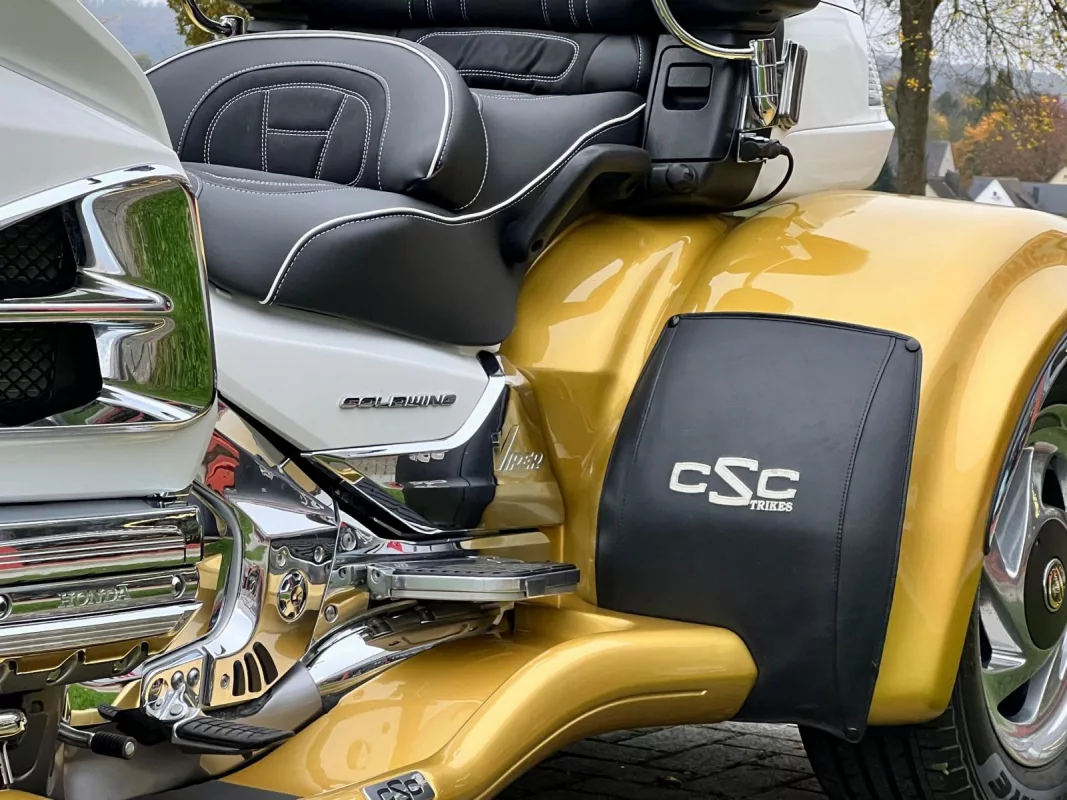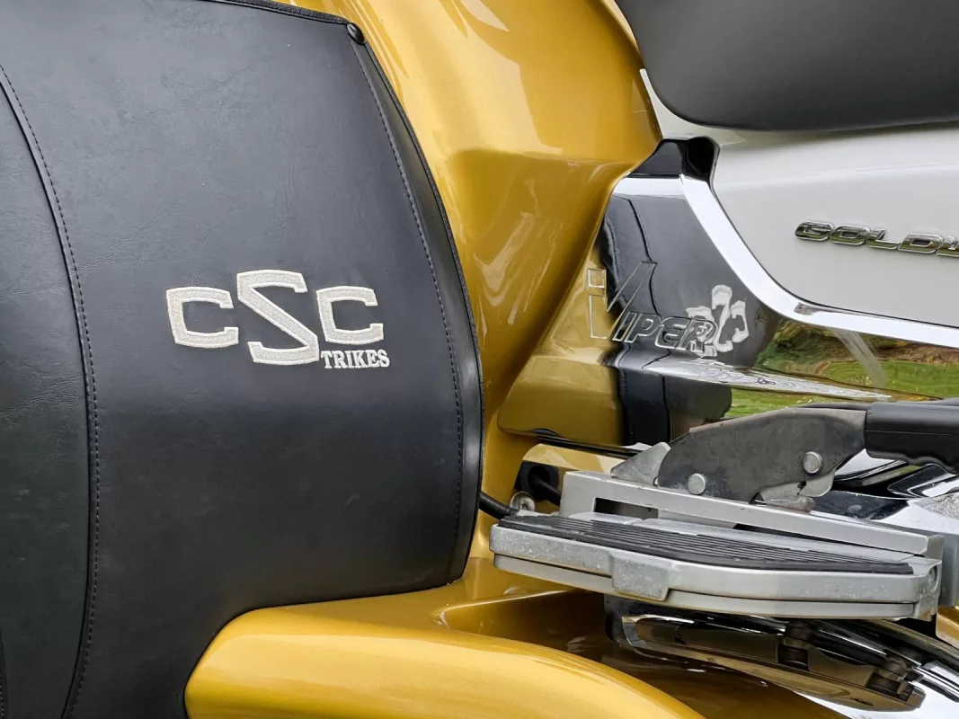 Was für ein Unikat! GL1800 Viper Trike in traumhafter 2-tone Lackierung, aufwendig umgestaltete Sitzbank und toller Auswahl an Chrom- & Zuberhörteilen. Mit komplettem Motor und Rahmen Chrompaket, Rotor Covers, Beifahrertrittschutz, Armlehnen, Kühlerchromrahmen, TC Spoiler and some more..