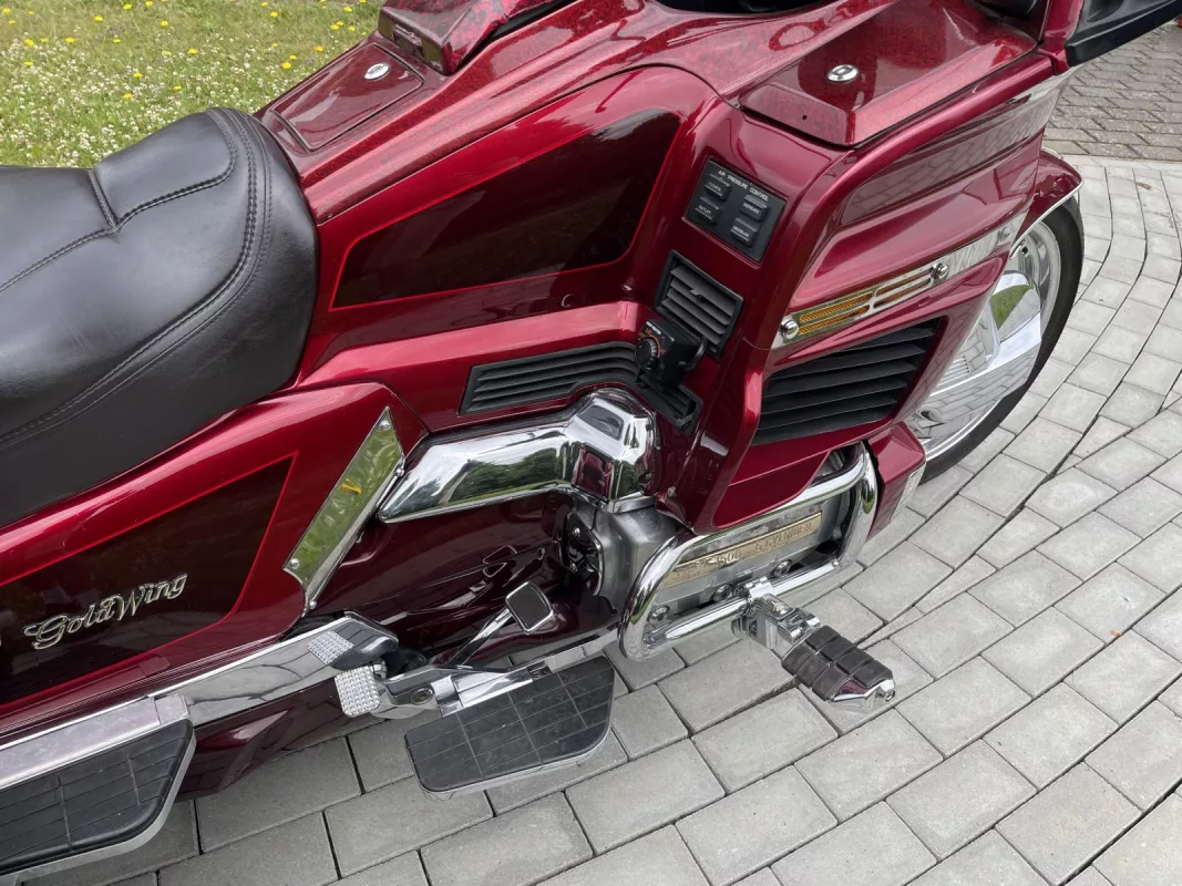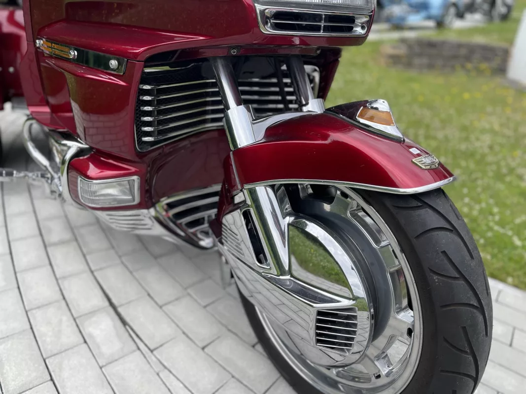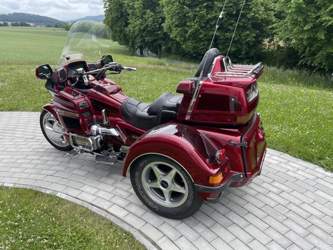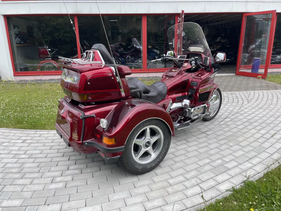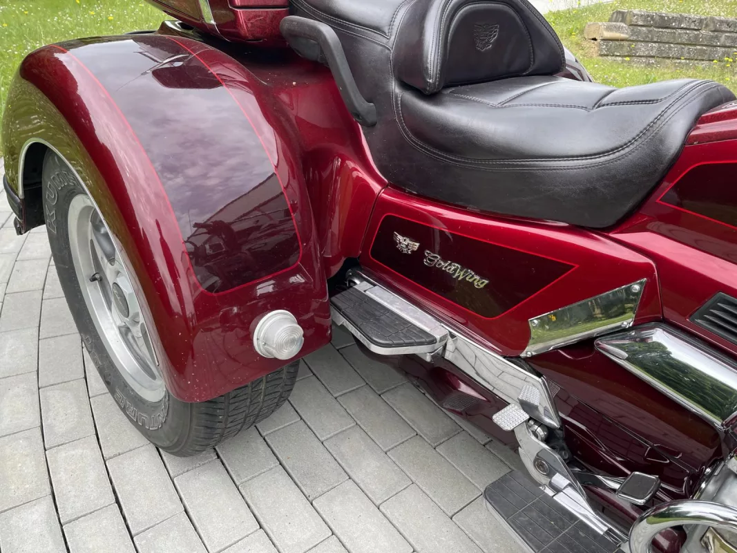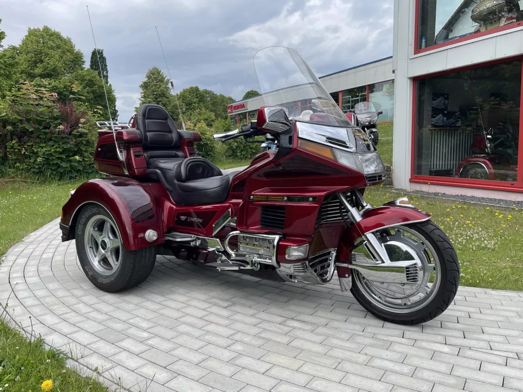 Tolles GL 1500/6 SE Trike in Candy Red. Schönes Zubehör. Kühlergrill, Front Fender Eagle, Chrom Bugspoiler, HW Boards, Kotflügelverlängerung, hohe Scheibe mit Vent, Airbrush in der Innenverkleidung und Verstaufächer hinten, Armlehnen, CB Antenne, Gepäckträger, Rail Slider Grips and some more...