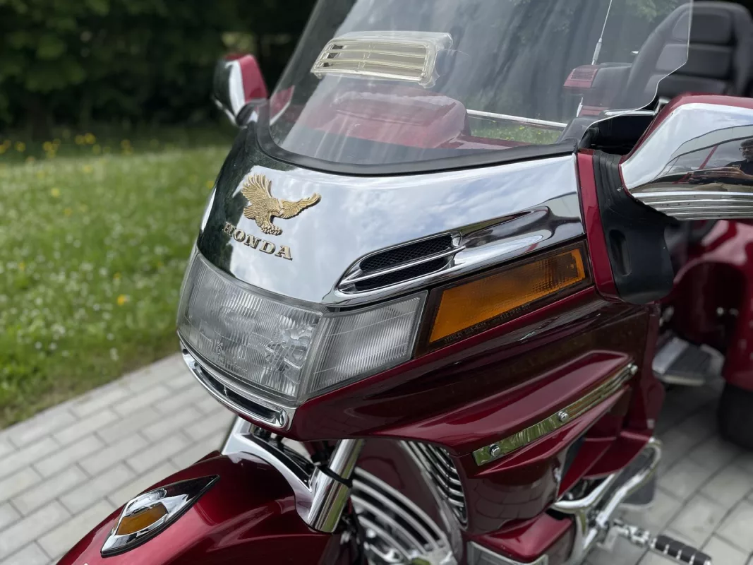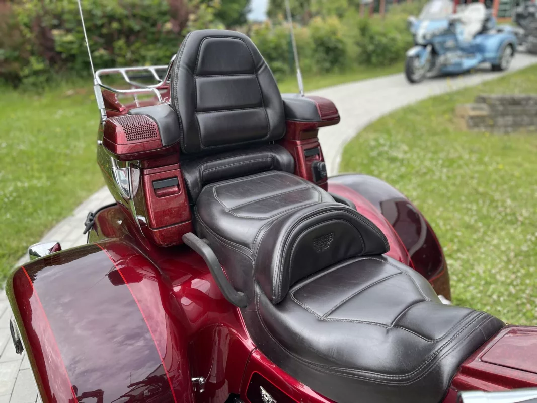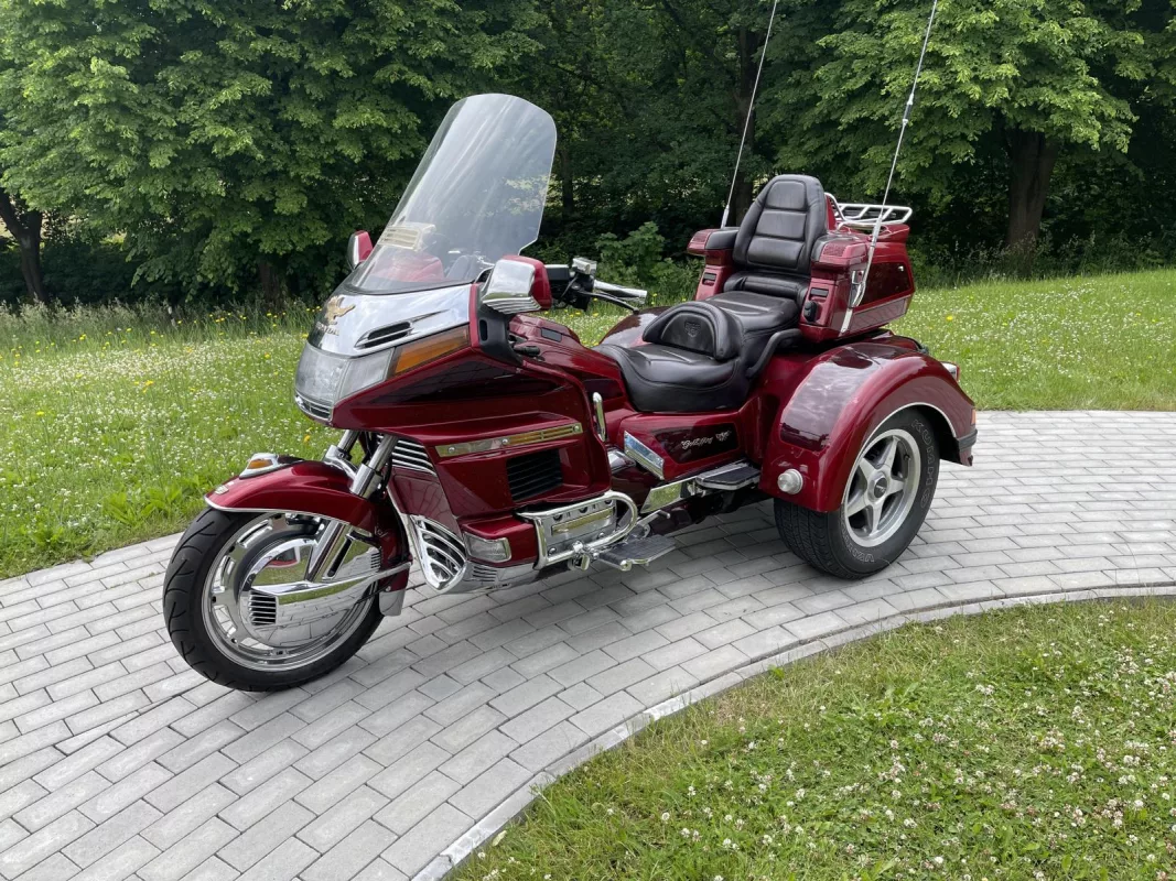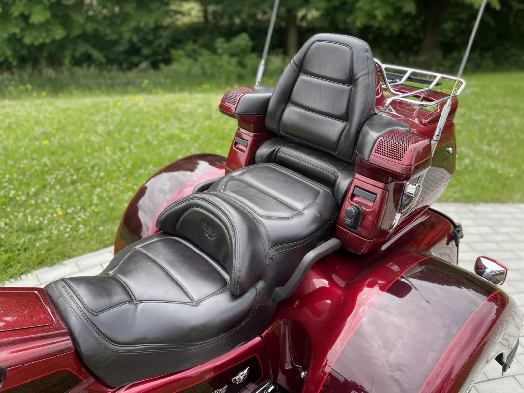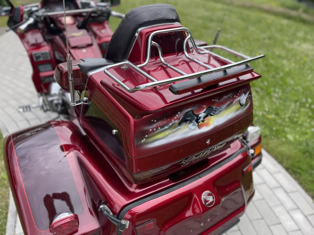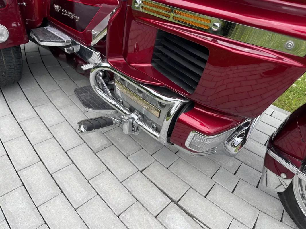 Tolles GL 1500/6 SE Trike in Candy Red. Schönes Zubehör. Kühlergrill, Front Fender Eagle, Chrom Bugspoiler, HW Boards, Kotflügelverlängerung, hohe Scheibe mit Vent, Airbrush in der Innenverkleidung und Verstaufächer hinten, Armlehnen, CB Antenne, Gepäckträger, Rail Slider Grips and some more...