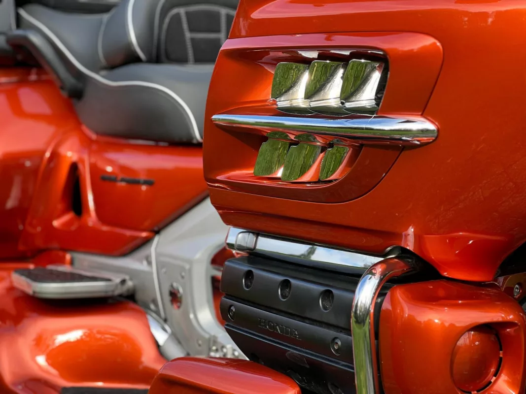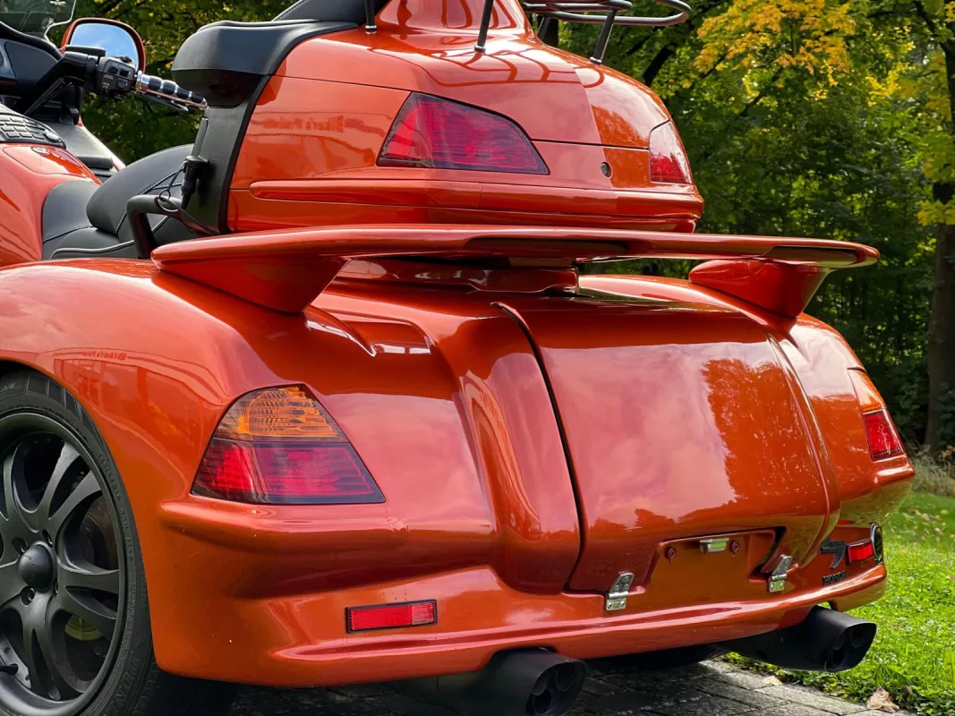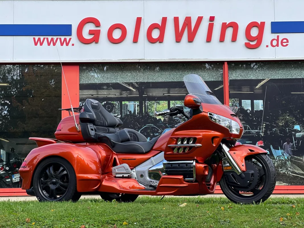 GL 1800 Hannigan Trike in Candy Orange vom feinsten. Mit Einzelradaufhängung, Rotor Covers, Shark Grills, getönte Blinker, Gepäckträger, Iso Grips, 2 tone Sitzbank and some more...