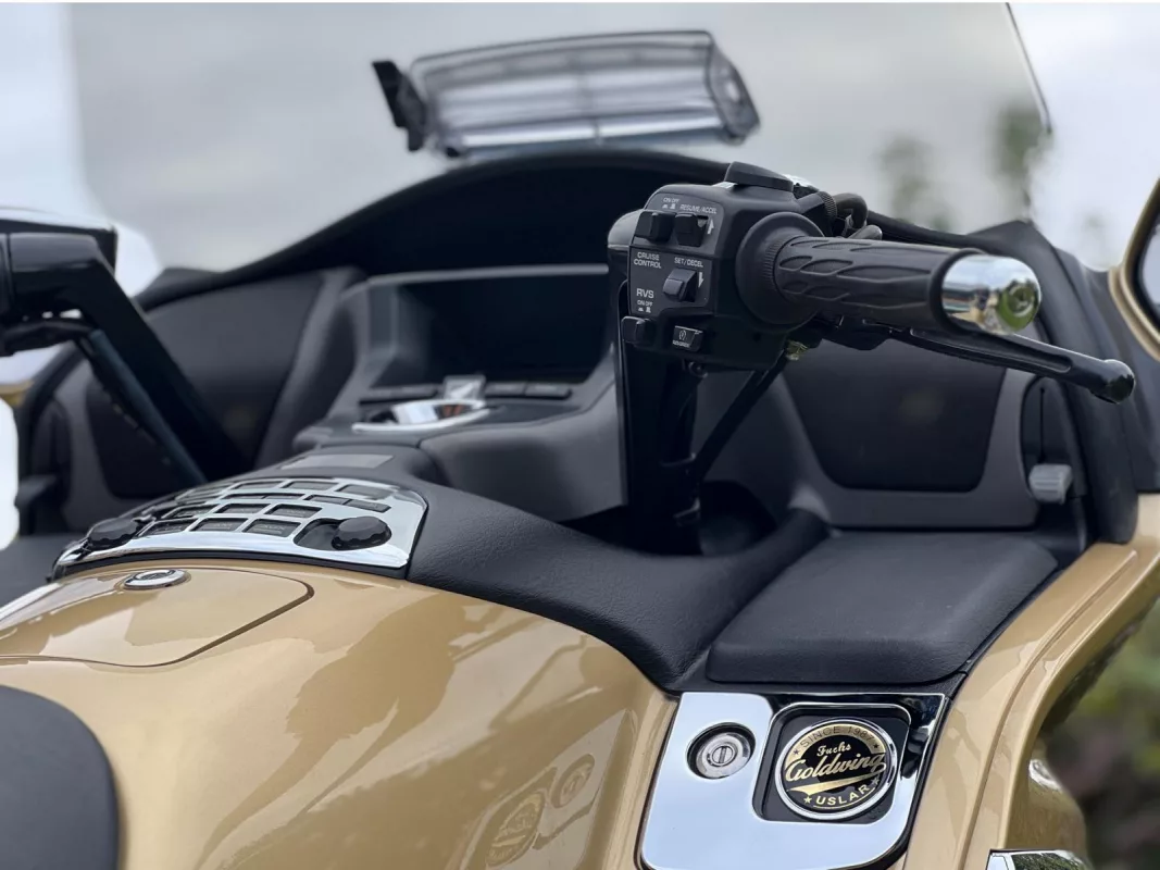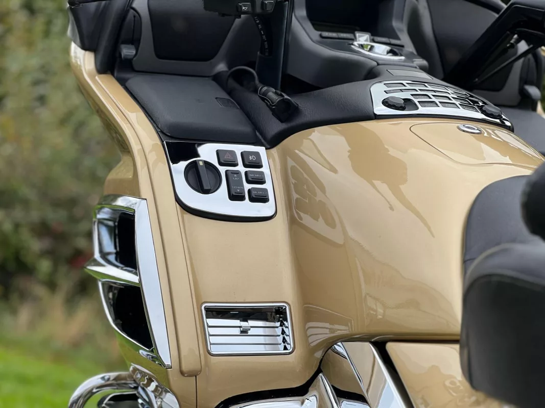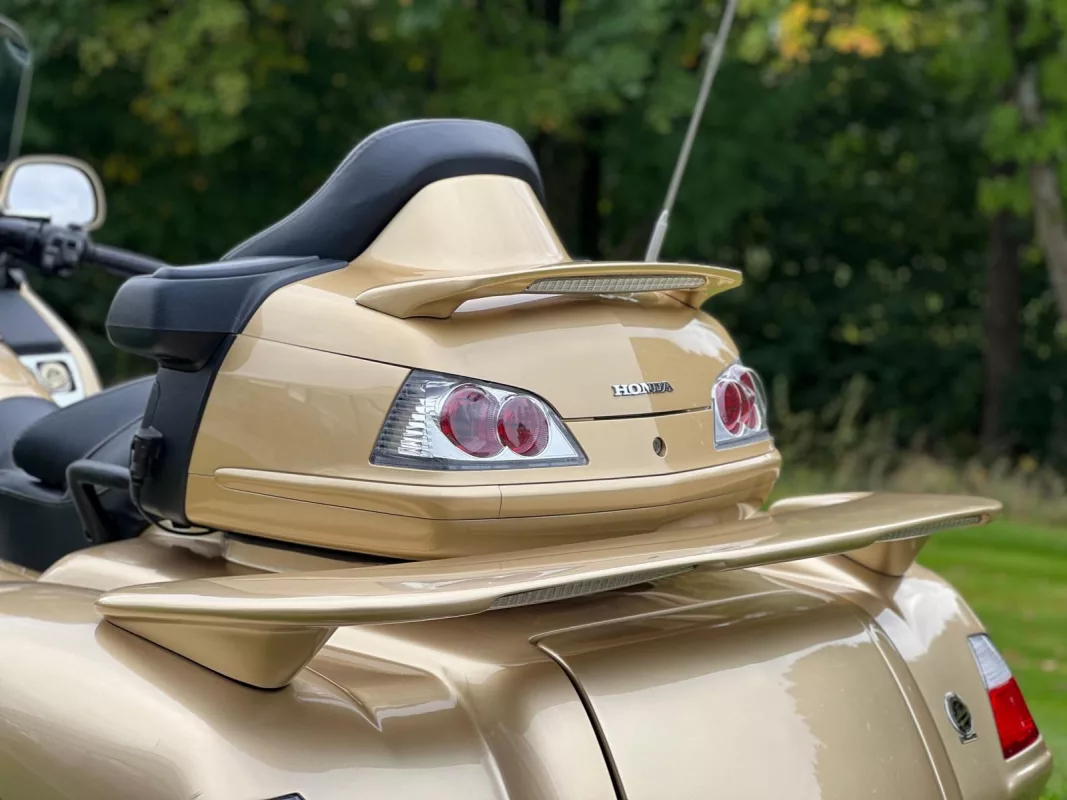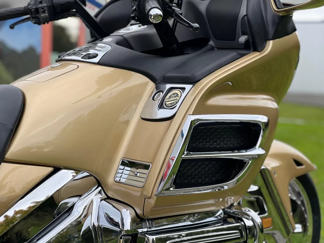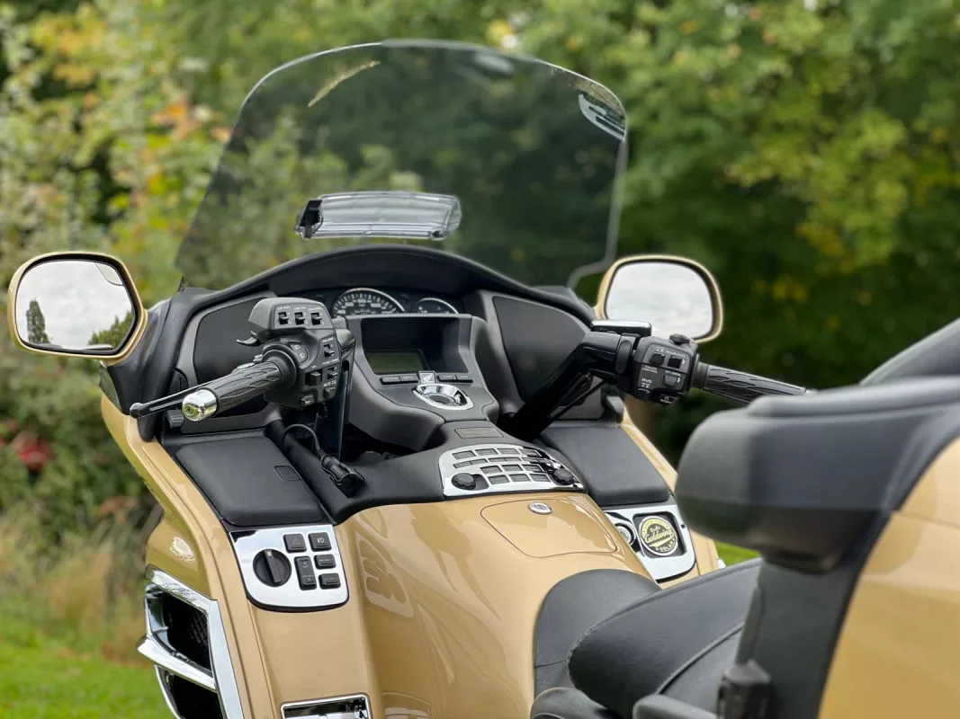 Der Hammer ! GL 1800 Hannigan Trike in Topeka Gold. Traumhafte Optik gepaart mit erstklassiger Technik und Einzelradaufhängung. Sehr stilvoll veredelt mit Eye Brows, Kühlerchromrahmen, Fog Lights, verchromter Bugspoiler, Rotor Covers, komplettes Motor und Rahmen Chrom Paket, Beifahrertrittschutz, beide Spoiler, Trittbrettanlage, Chrom Paket Innen Verkleidung and some more...
