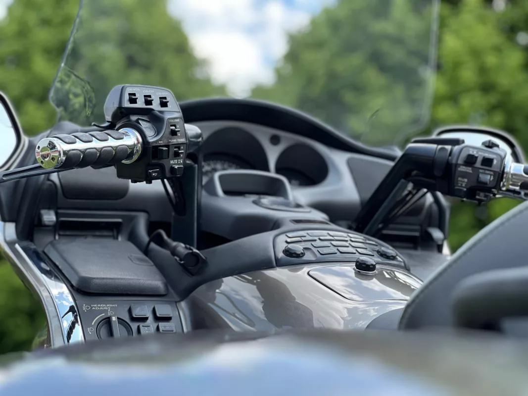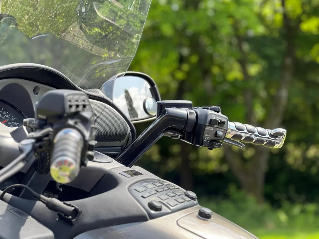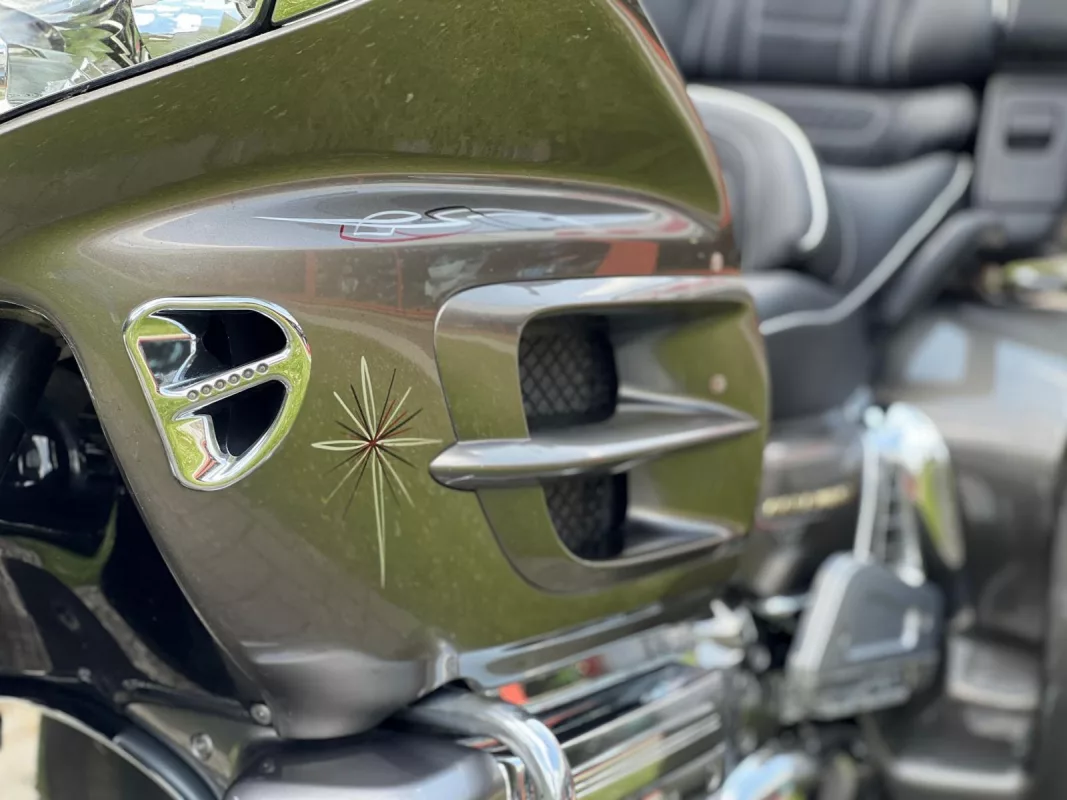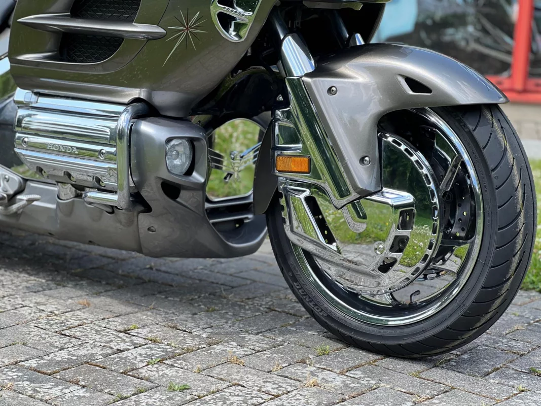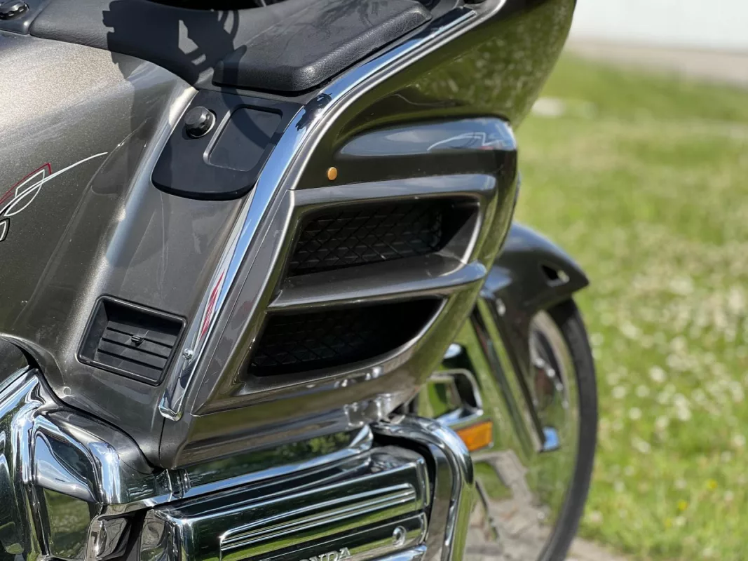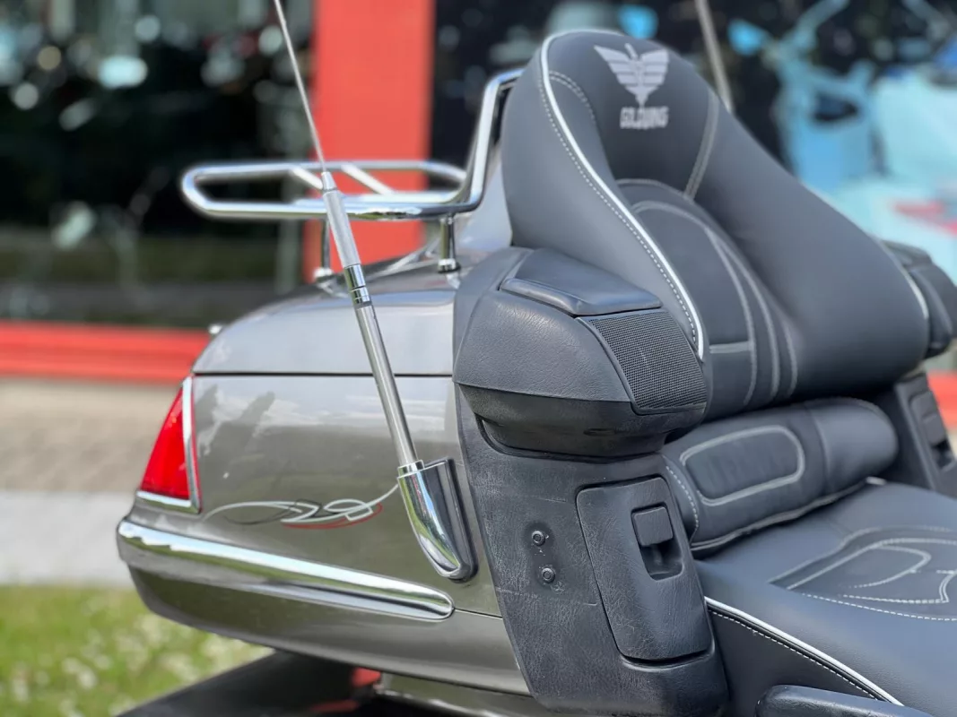 GL 1800 Trike in Titanium. Sehr schön veredelt mit Rotor Covers, komplettes Motor und Rahmen Chrom Paket, Fog Lights, Pig Nose Covers, Beifahrertrittschutz, Chrom Streifen Topcase, Gepäckträger, CB Antenne, 2 tone Sitzbank and some more..