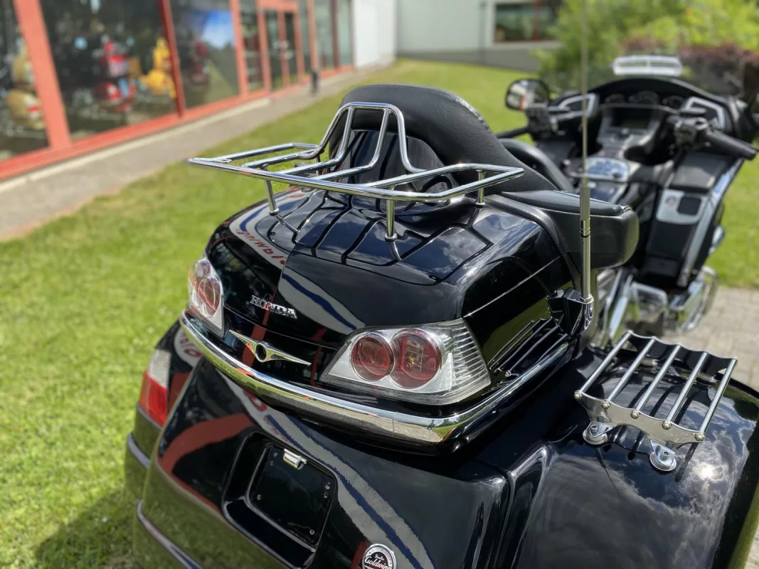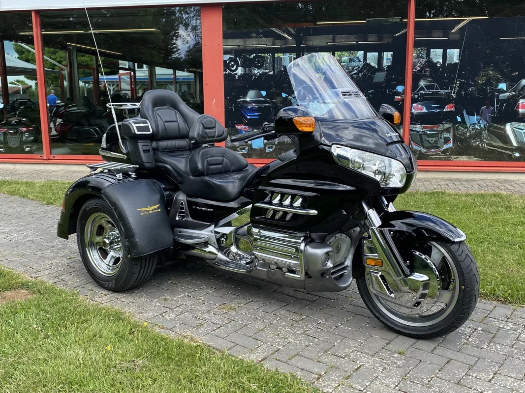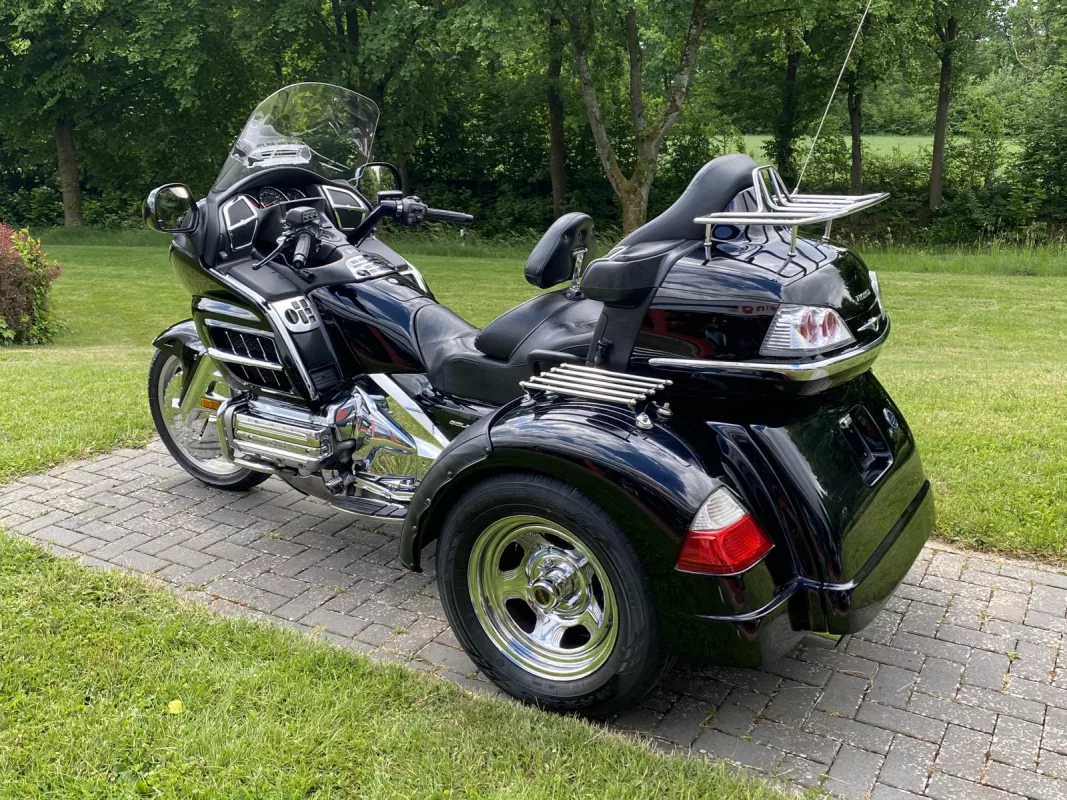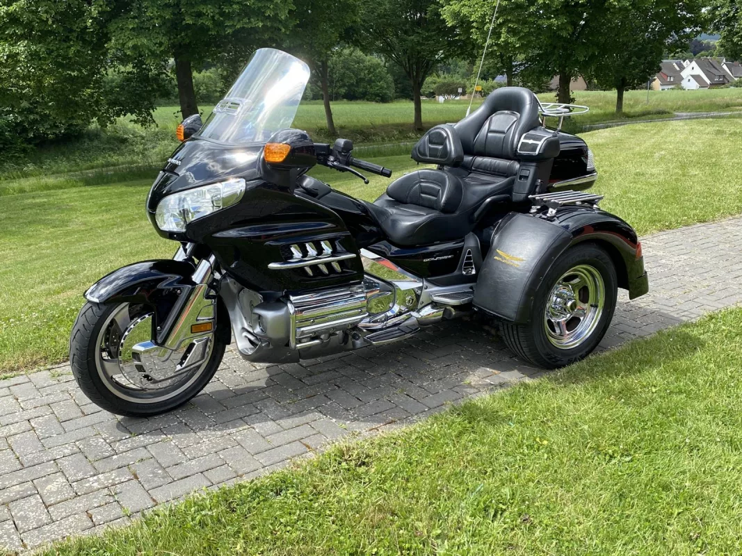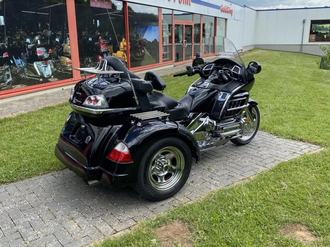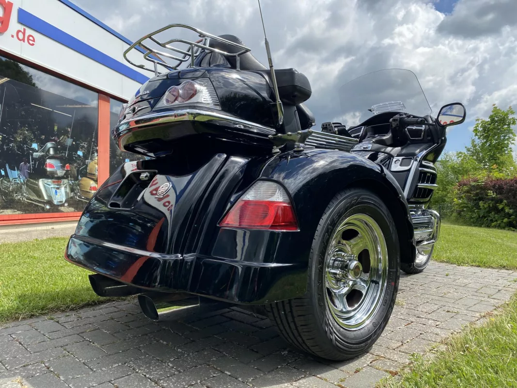 GL1800 Trike in NH-17 black.Tolles Zubehör.Rotor und Valve Covers, Shark Grills, große Rahmenabdeckungen, Steinschlagschutz auf den Kotflügeln, alle drei Gepäckträger, TC Chromstreifen, Fahrerlehne, Fahrertrittbettanlage, Chrom Paket Innenverkleidung and some more..