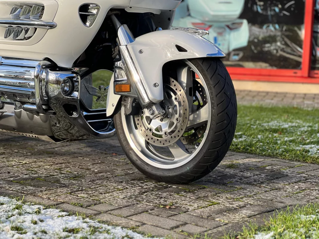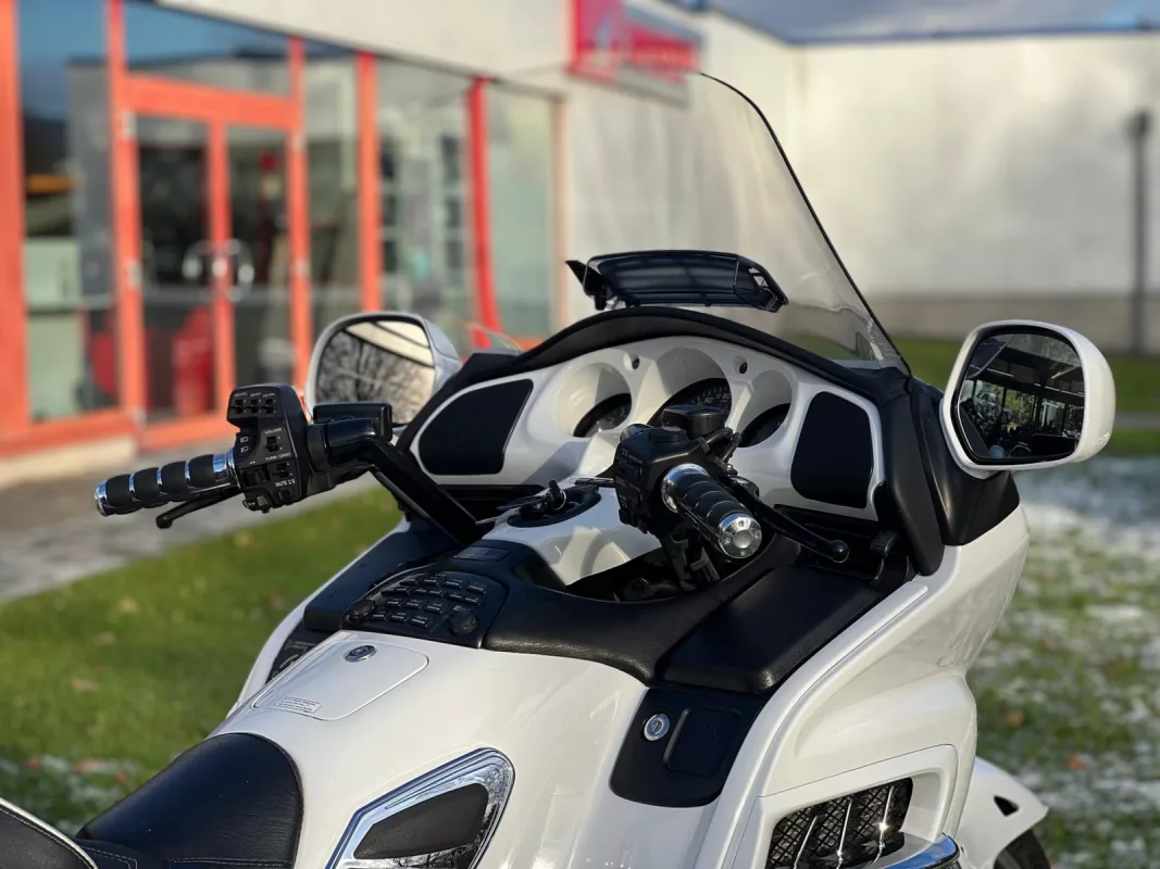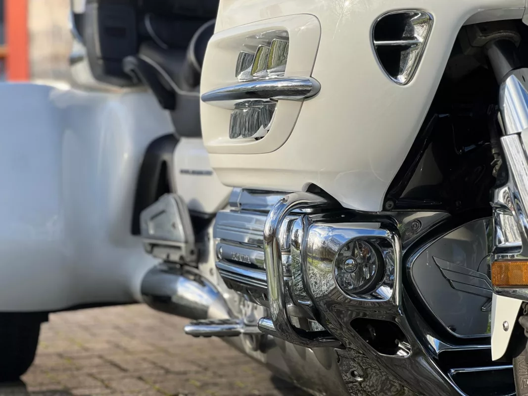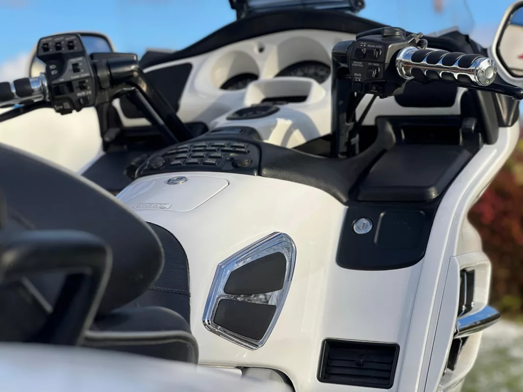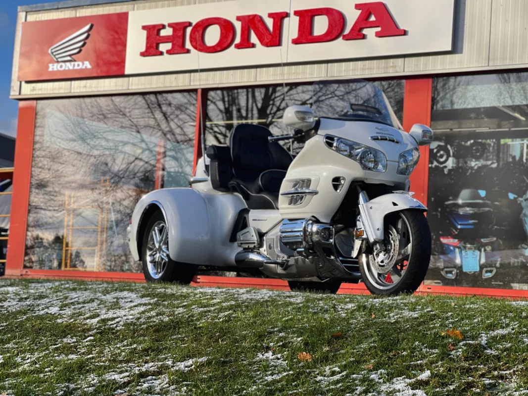 Wunderschönes GL 1800 Cobra Trike mit Einzelradaufhängung und Performance Bremsanlage in Artic White. Klasse veredelt mit Chrom Bugspoiler Fog Lights, Motor Chrom Paket, Front Fender Eagle, Pig Nose Covers, Shark Grills, weiße Blinker, Shark Grill Fairing, 2 tone Sitzbank, Gepäckträger, Chrome Wheels, 2 tone Sitzbank, Dashtop in Fahrzeugfarbe, Iso Grips and some more...