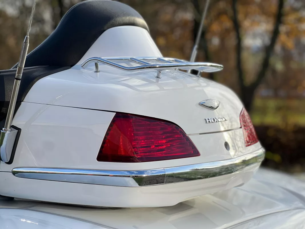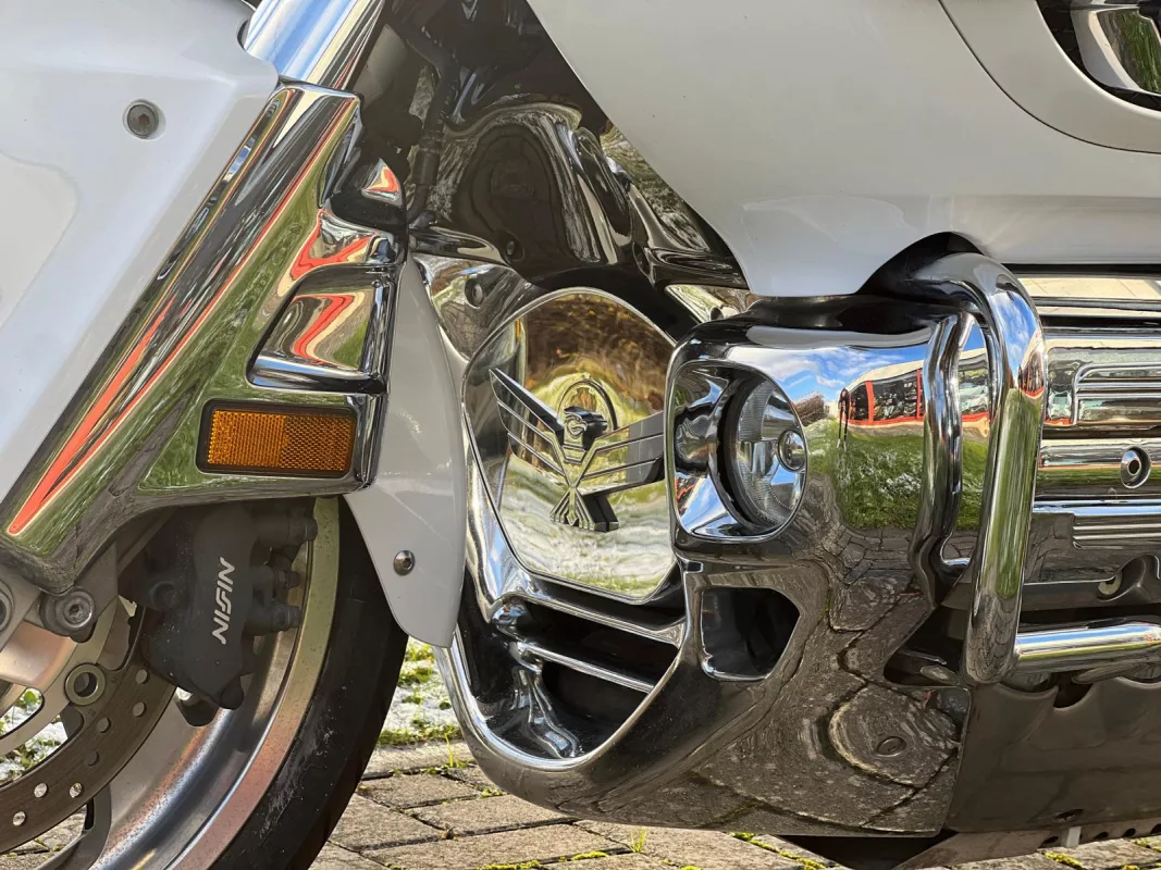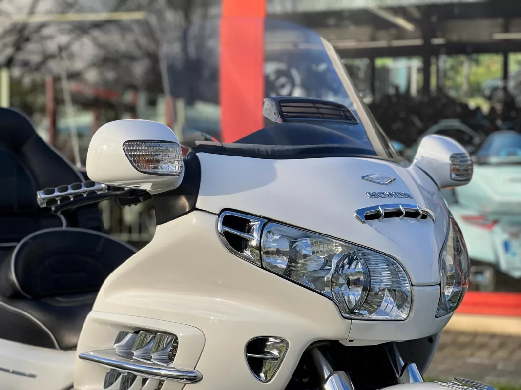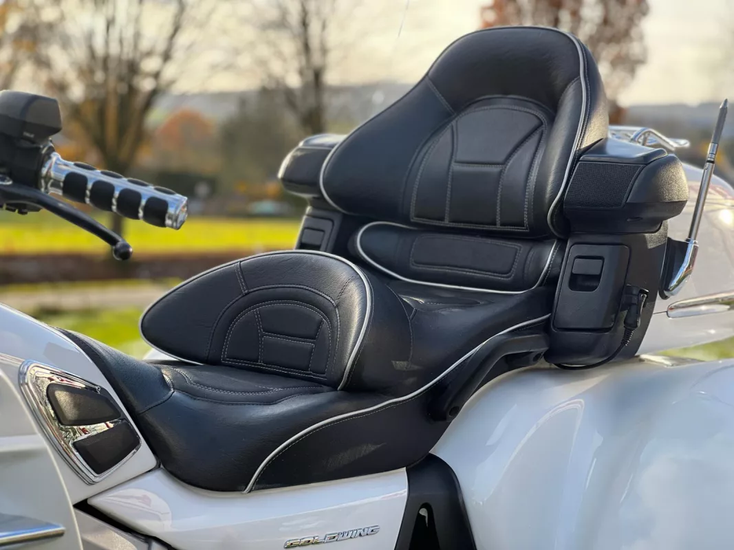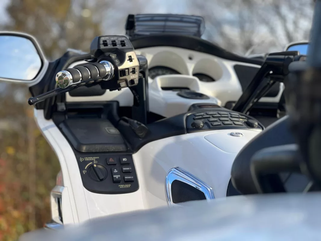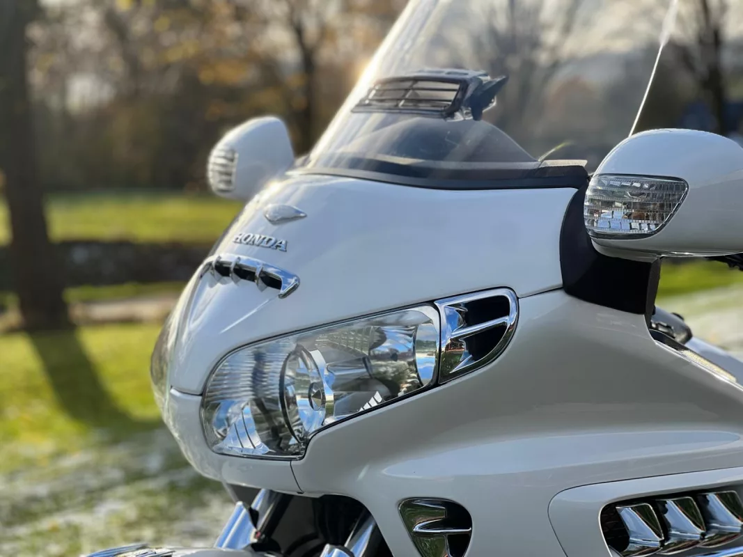 Wunderschönes GL 1800 Cobra Trike mit Einzelradaufhängung und Performance Bremsanlage in Artic White. Klasse veredelt mit Chrom Bugspoiler Fog Lights, Motor Chrom Paket, Front Fender Eagle, Pig Nose Covers, Shark Grills, weiße Blinker, Shark Grill Fairing, 2 tone Sitzbank, Gepäckträger, Chrome Wheels, 2 tone Sitzbank, Dashtop in Fahrzeugfarbe, Iso Grips and some more...