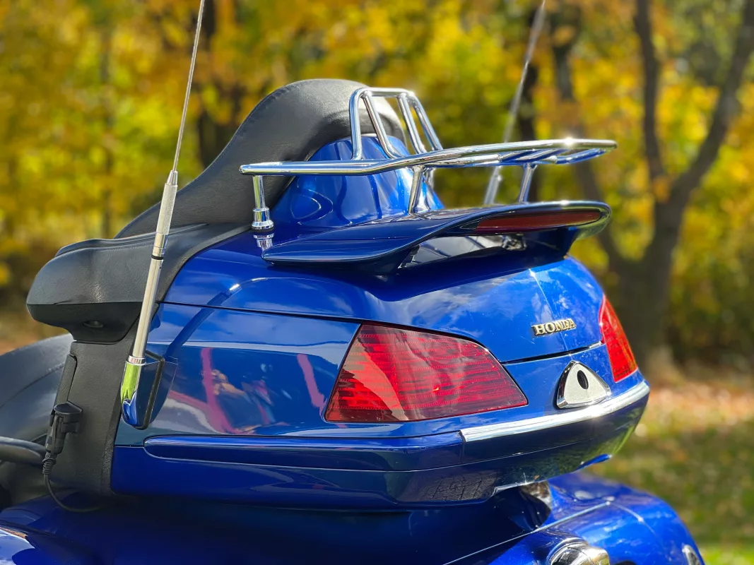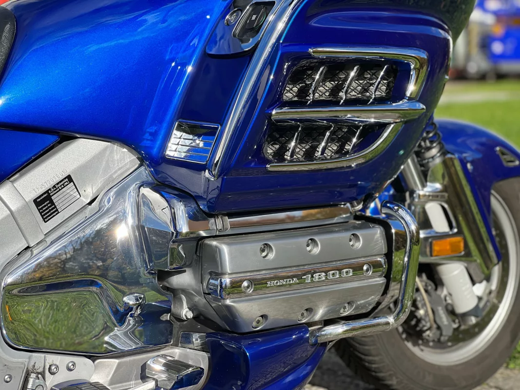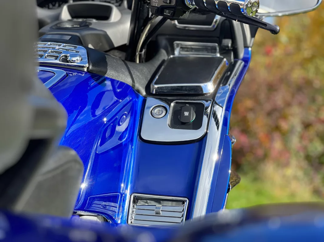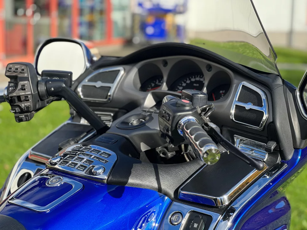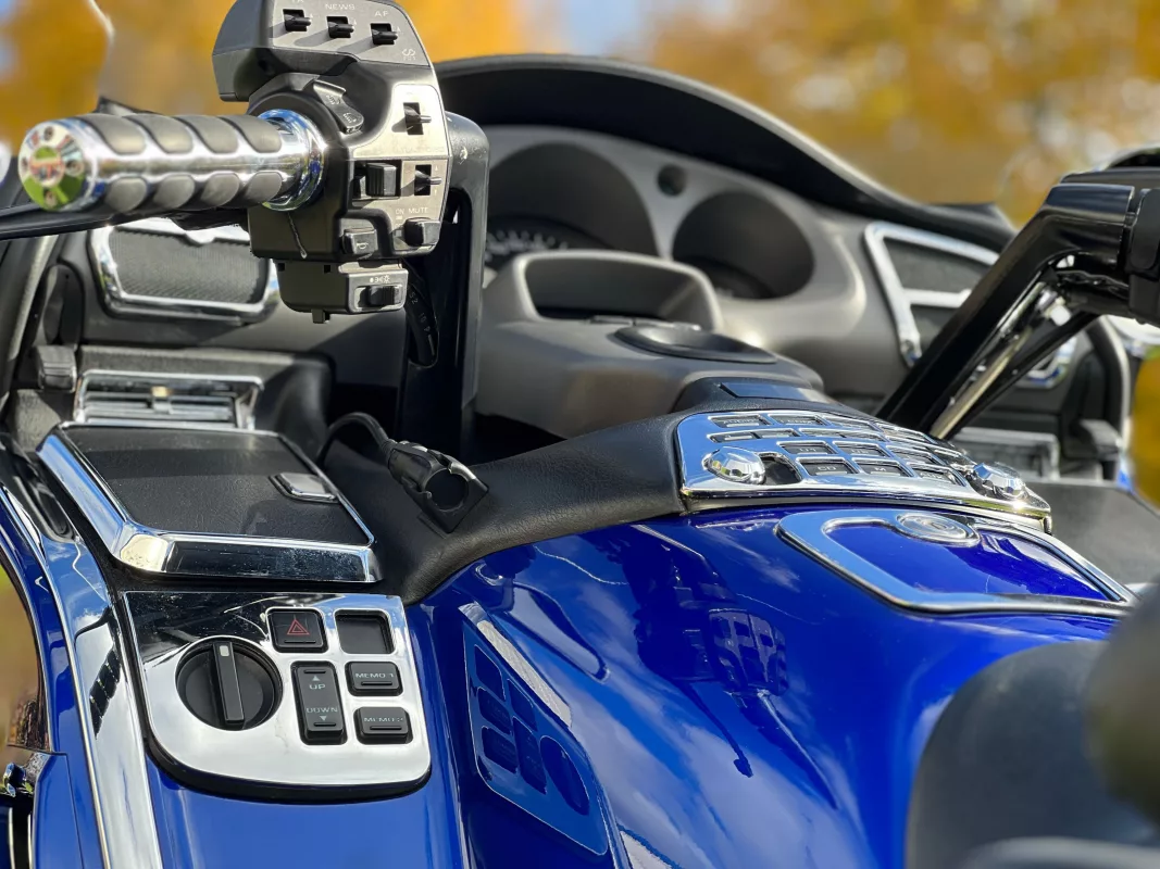 Sehr schönes GL 1800 Trike in Pearl Apollo Blue. Mit Shark Grill Fairing, Eye Brows, Spiegel Chromrahmen, Kühlerchromrahmen, verchromter Bugspoiler, TC Spoiler, Gepäckträger, CB Antenne, Iso Grips, Chrom Paket Innenverkleidung and some more...
