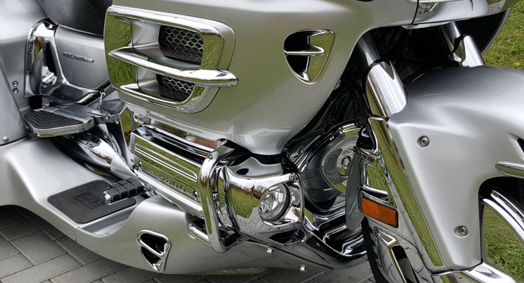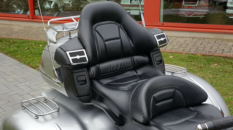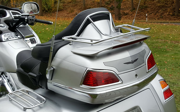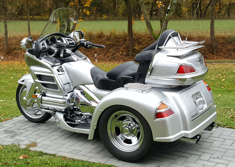 | GL 1800 Trike der SUPERLATIVE!Vom aller feinsten veredelt in 2 tone Optik an der Verkleidung und am Topcase, komplettes Innenverkleidung und Motor/Rahmen Chrompaket, weiße Blinker mit beiden Chromrahmen, Chromfairing 2012, Kühlerchromrahmen, Pignose Covers, Speere auf den Kotflügeln, alle 3 Gepäckträger, Spoiler, CB Antenne, Fog Lights, Rings of Fire, Chrome Wheels and many, many more.. |