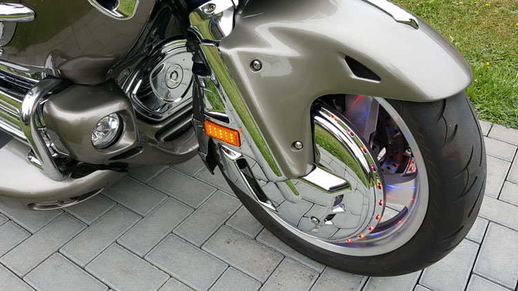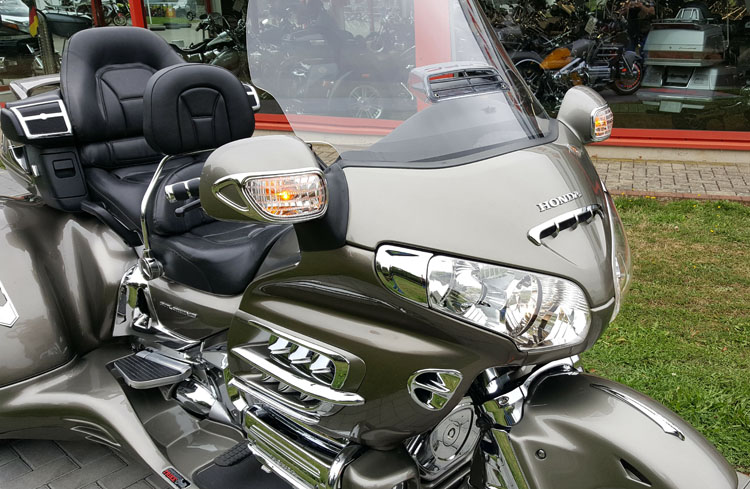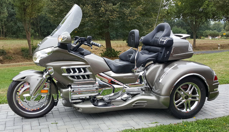 GL 1800 Cobra Trike in Titanium.Klasse veredelt mit Body Kit, Rotor Covers mit Rings of Fire, komplettes Chrompaket Motor und Rahmen, Gabelbrücke, Shark Grills, Fog Lights, Fahrerlehne, TC Spoiler oben, Klarglas Blinker, Lightbar Body and many more..SORRY RESERVIERT! |